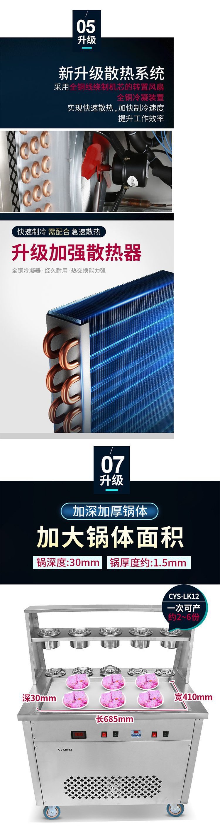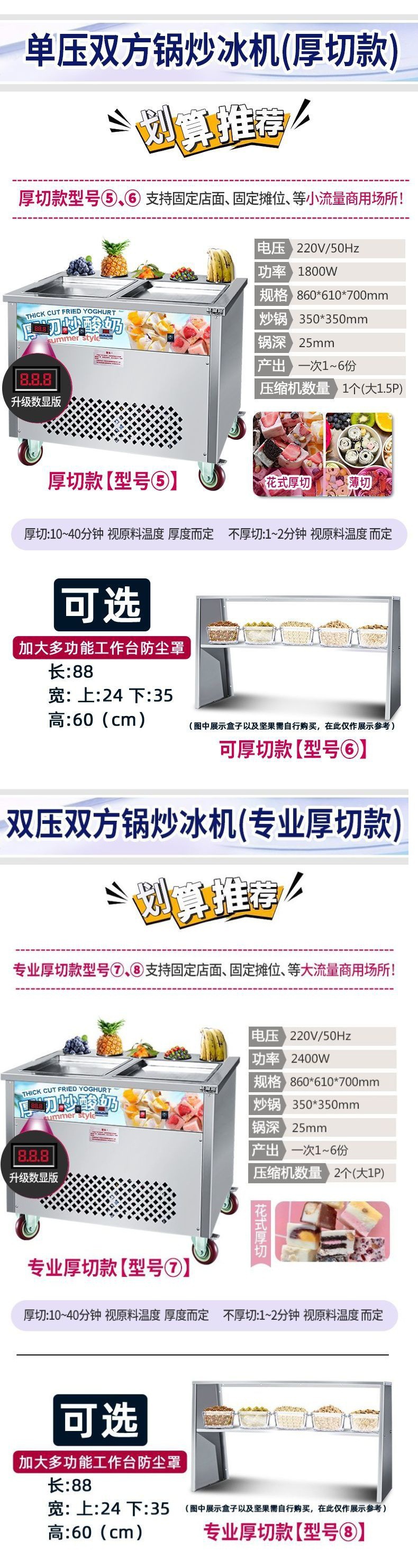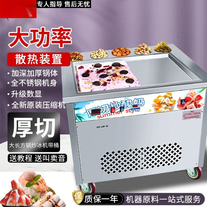 상업용 인터넷 레드 지능형 제어 따뜻하고 두꺼운 절단 및 볶음 우유 기계 큰 용량 볶음 아이스크림 롤 기계 볶음