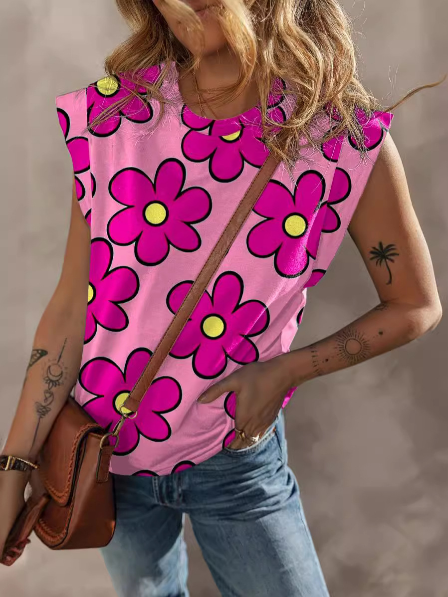 독립 역 국경 핫 판매 봄과 여름 새로운 라운드 넥 반팔 풀오버 여성 유럽과 미국 패션 올 매치 프린트 티셔츠