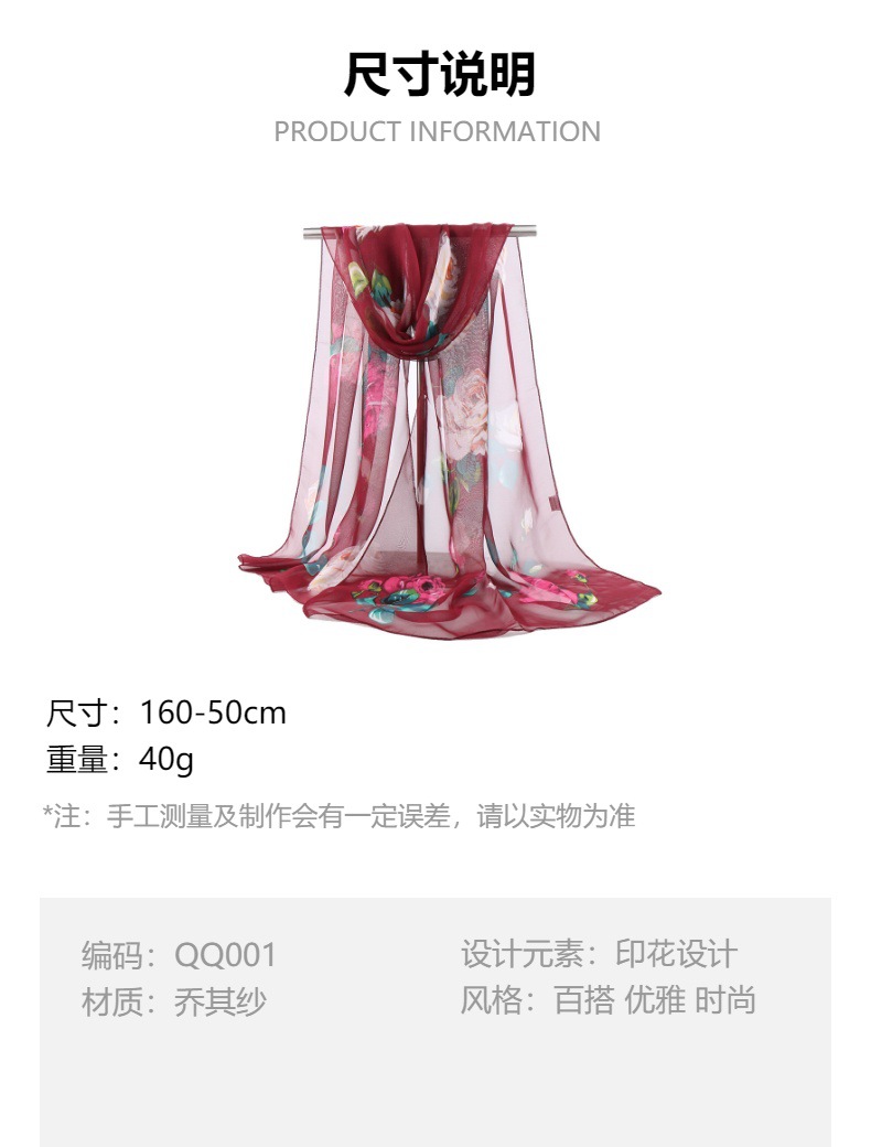 로터스 조젯 중간 긴 스카프 도매 인쇄 스카프 여름 선 스크린 목도리 어머니 선물 댄스 조커스토어 가기