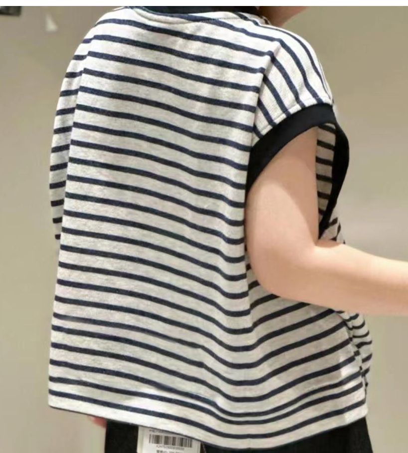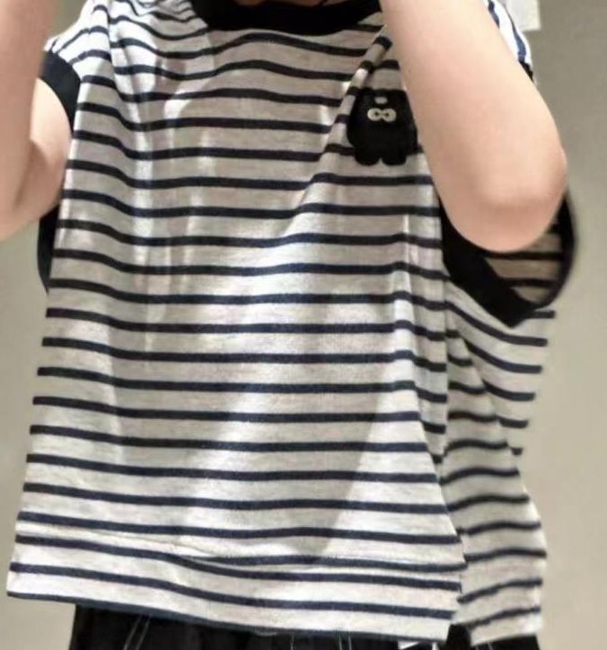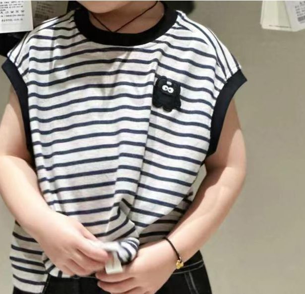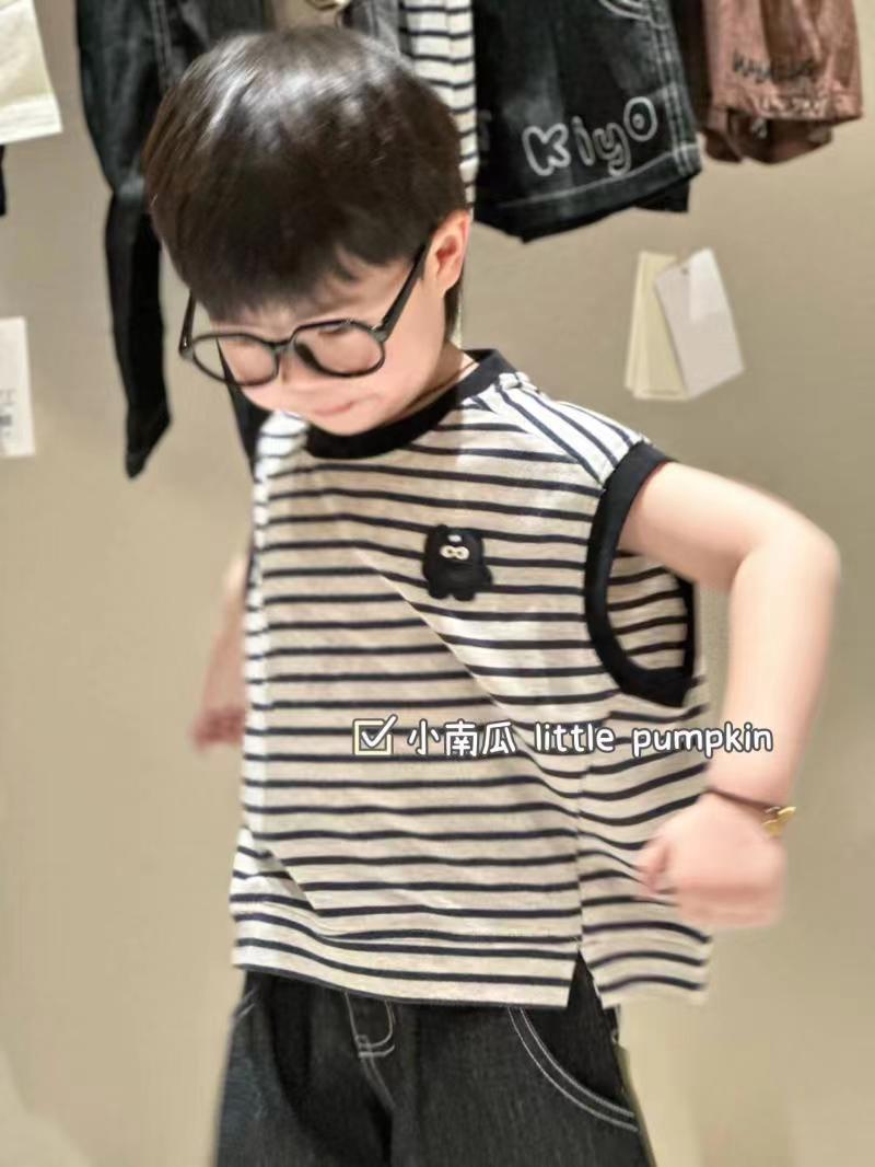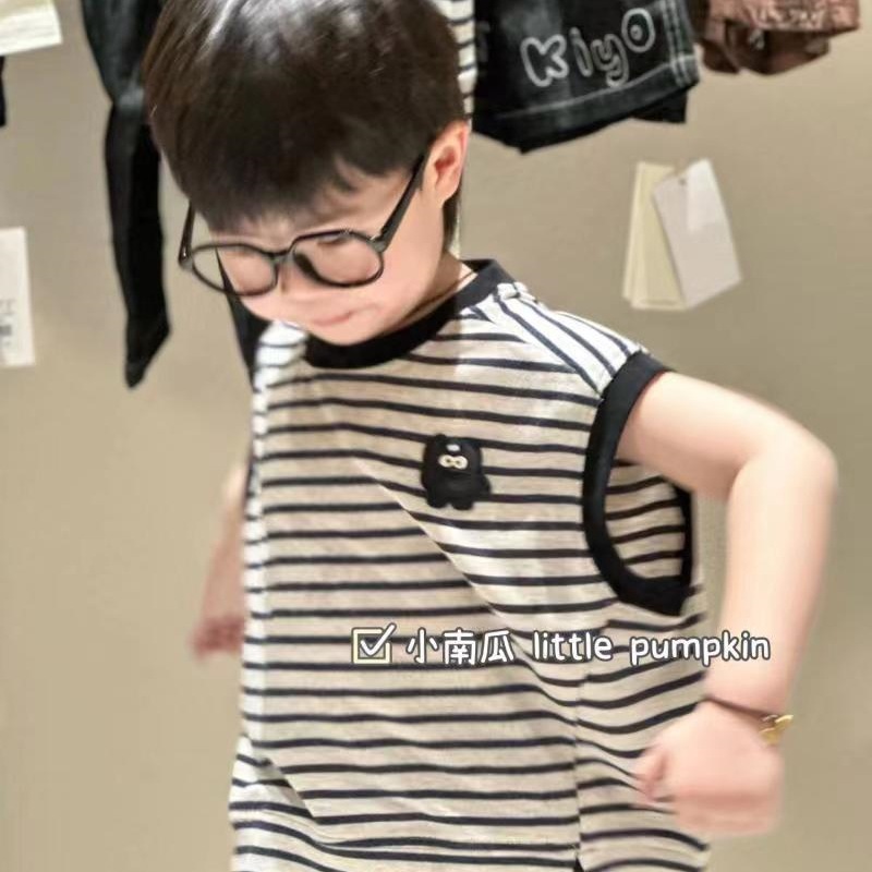 여름 새 소년 스트라이프 티셔츠 작은 괴물 조끼 2025 잘 생긴 패션 탑 어린이 여름 반팔스토어 가기