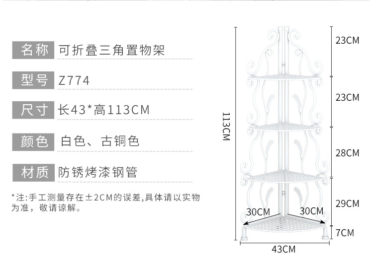 대형 금속 선반, 바닥형 욕실 침실 주방 다층 수납 삼각 선반