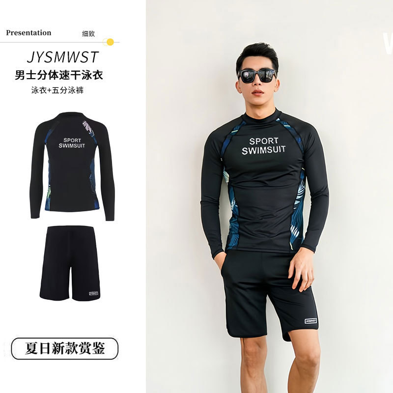 남자 긴 소매 다이빙 세트 여자 스플릿 슬리밍 가슴 패드 해파리 서퍼 세트 커플 태양 보호 온천 수영복 새로운 스타일
