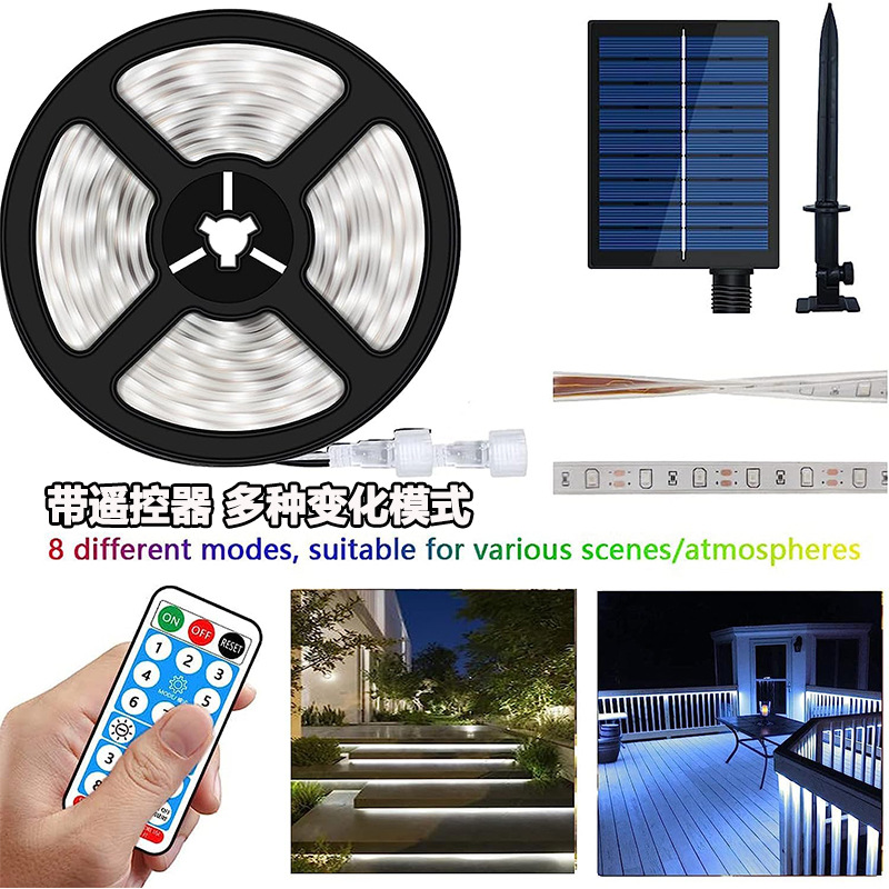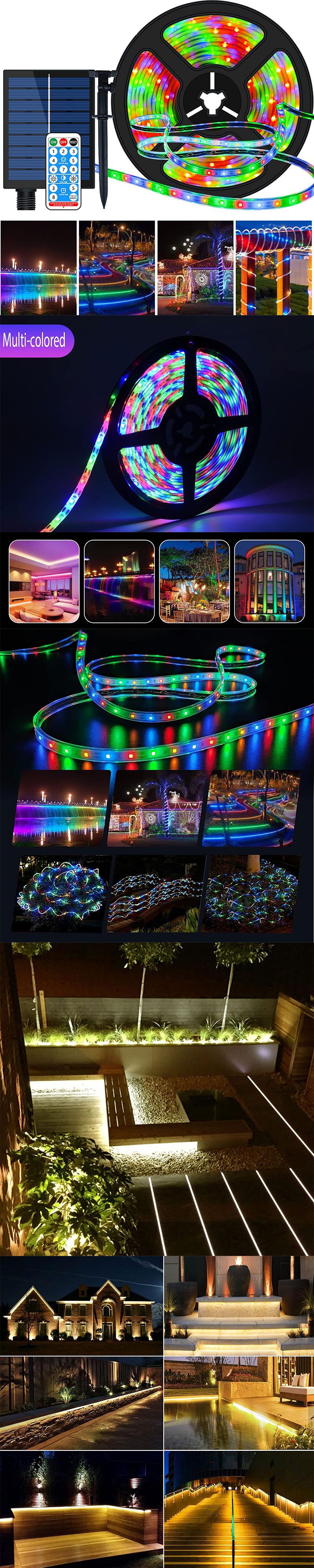 태양 LED 라이트 스트립 2835 원격 제어 야외 방수 크리스마스 트리 잔디 안뜰 꽃 상자 캠핑 광고 바
