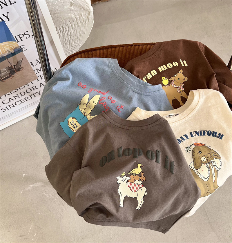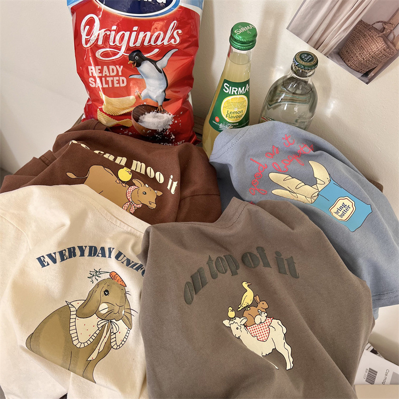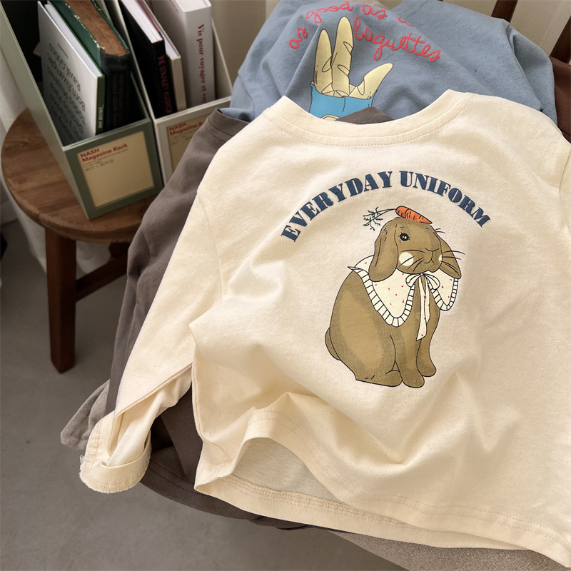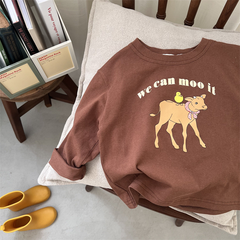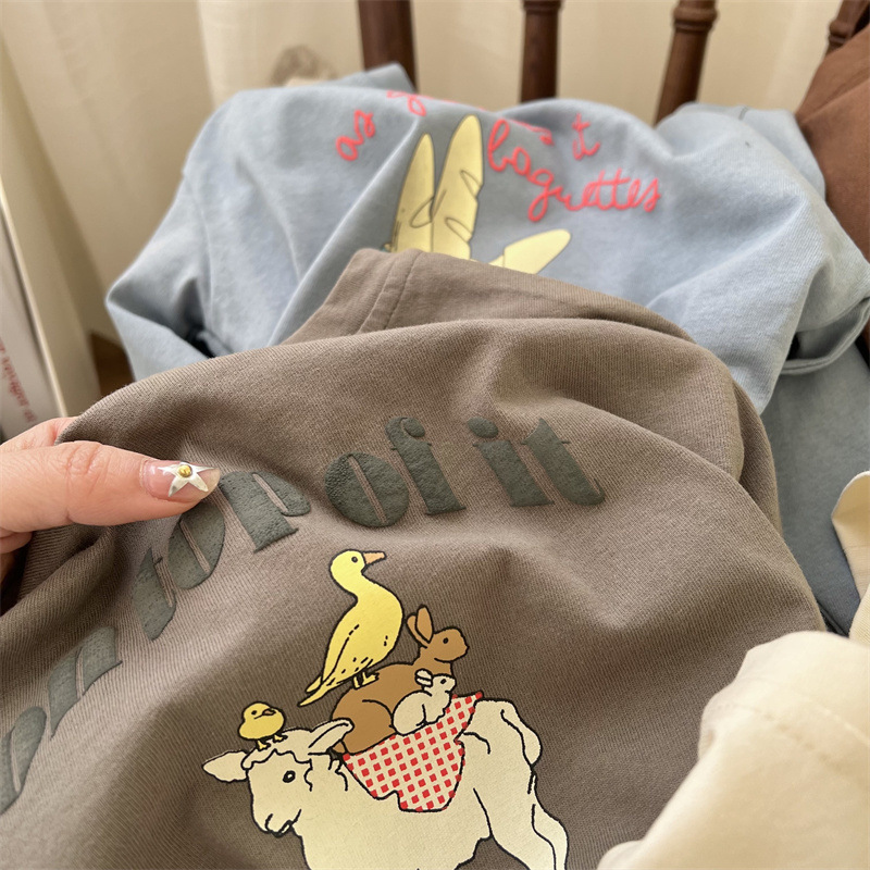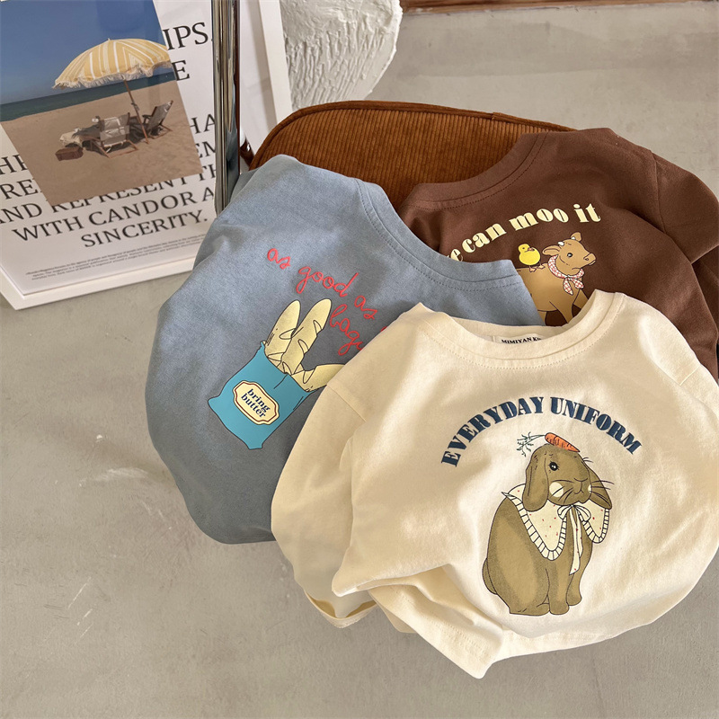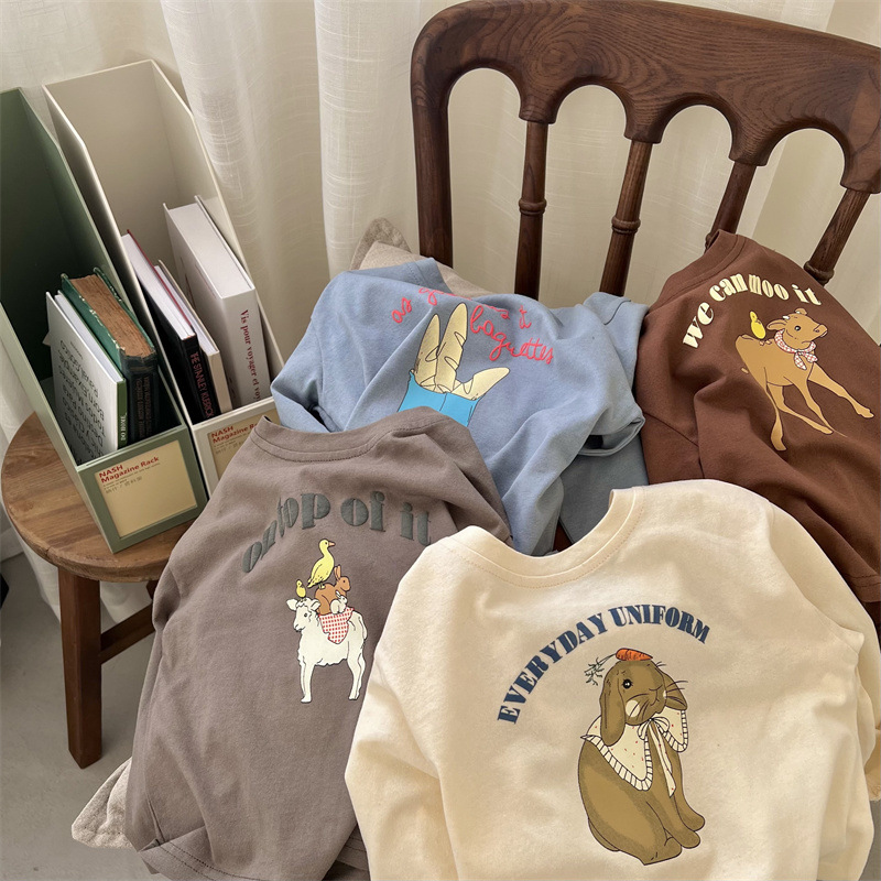 봄과 가을 어린이의 새로운 트렌디 만화 인쇄 순수 면화 긴 소매 느슨한 티셔츠 0-3 세 노인 남성과 여성의 탑베이스 셔츠스토어 가기