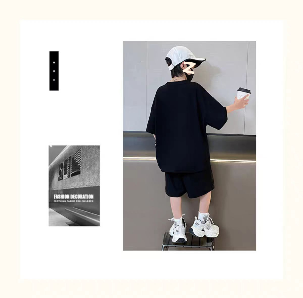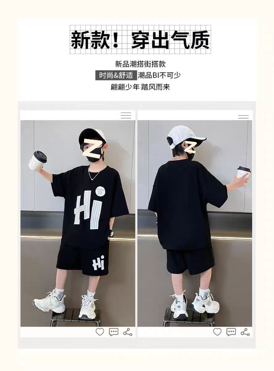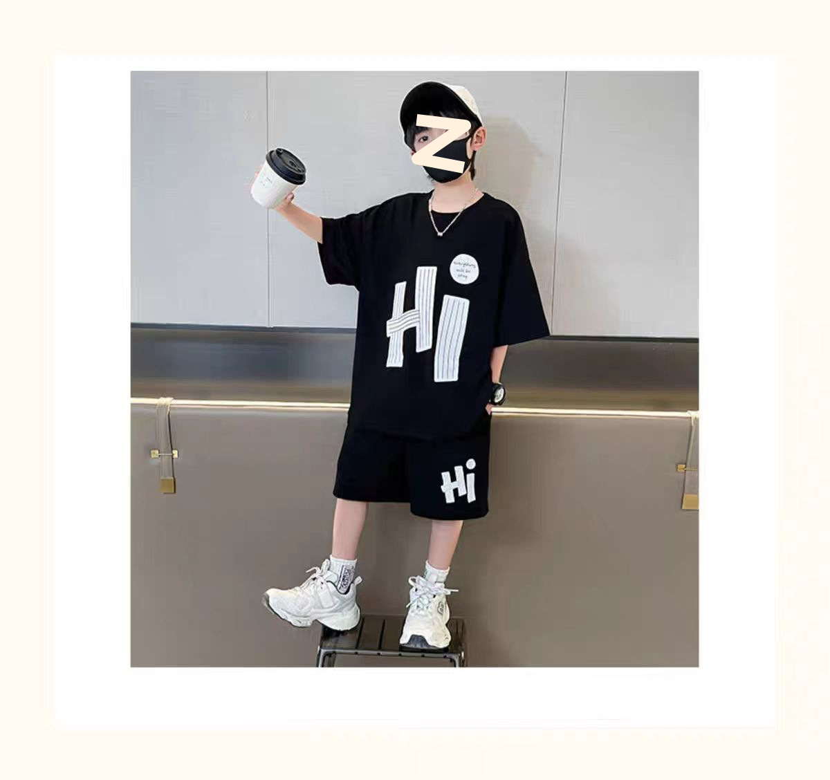 남학생 여름 반팔 티셔츠 5 점 바지 투피스 2024 뉴 빅 보이 핸섬 루즈 스포츠 세트스토어 가기