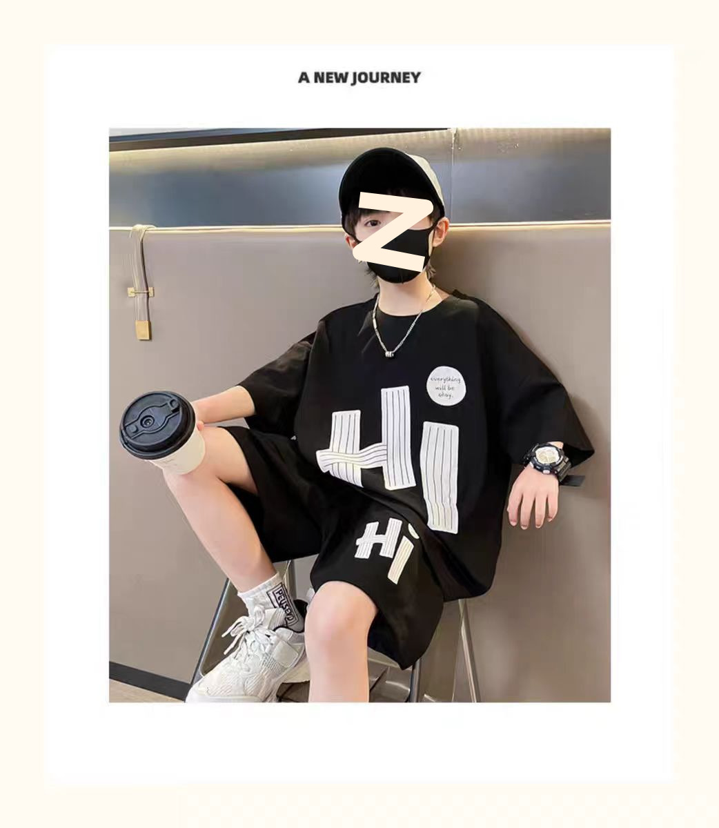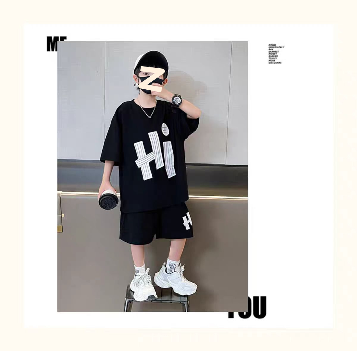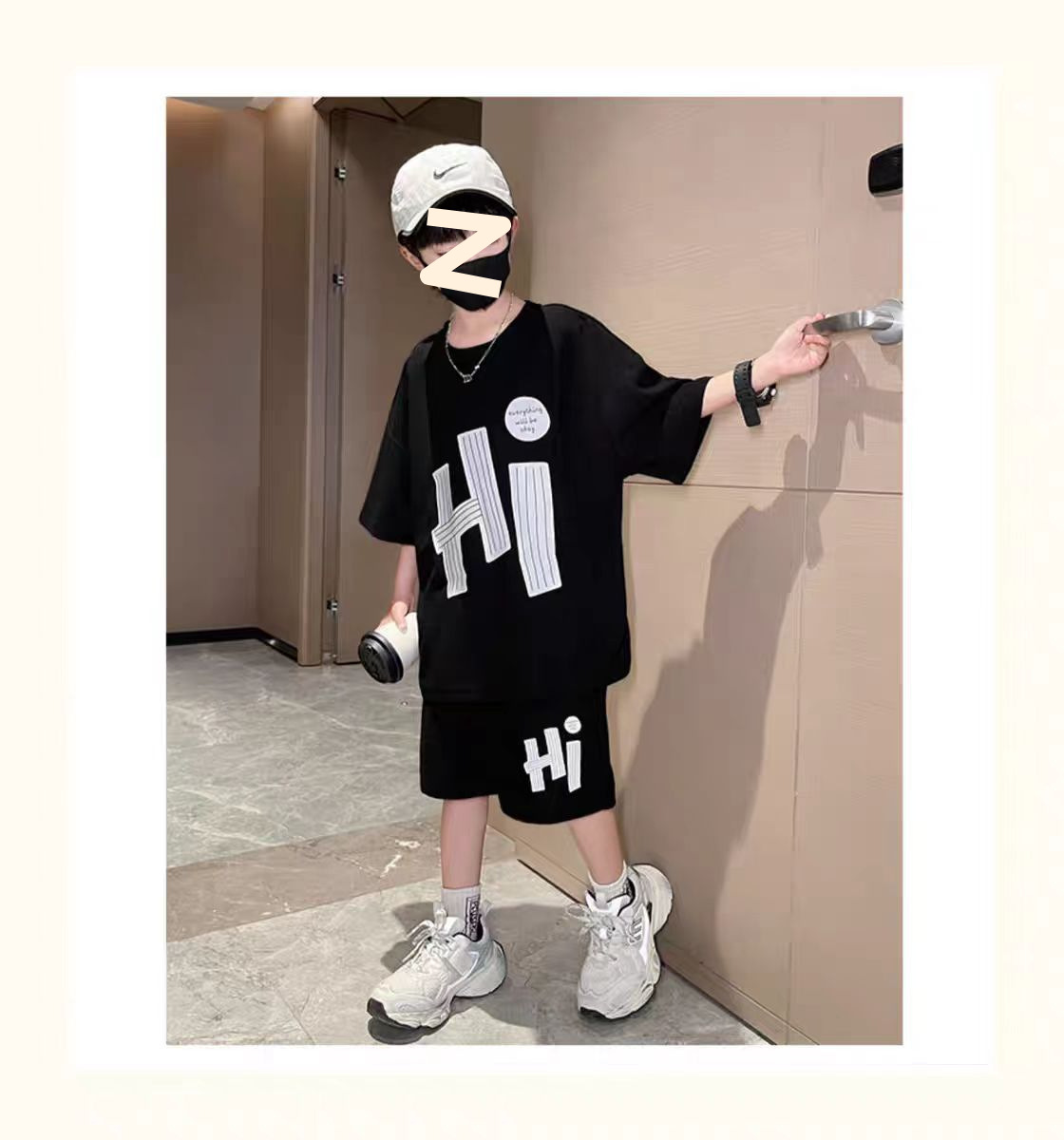 남학생 여름 반팔 티셔츠 5 점 바지 투피스 2024 뉴 빅 보이 핸섬 루즈 스포츠 세트스토어 가기