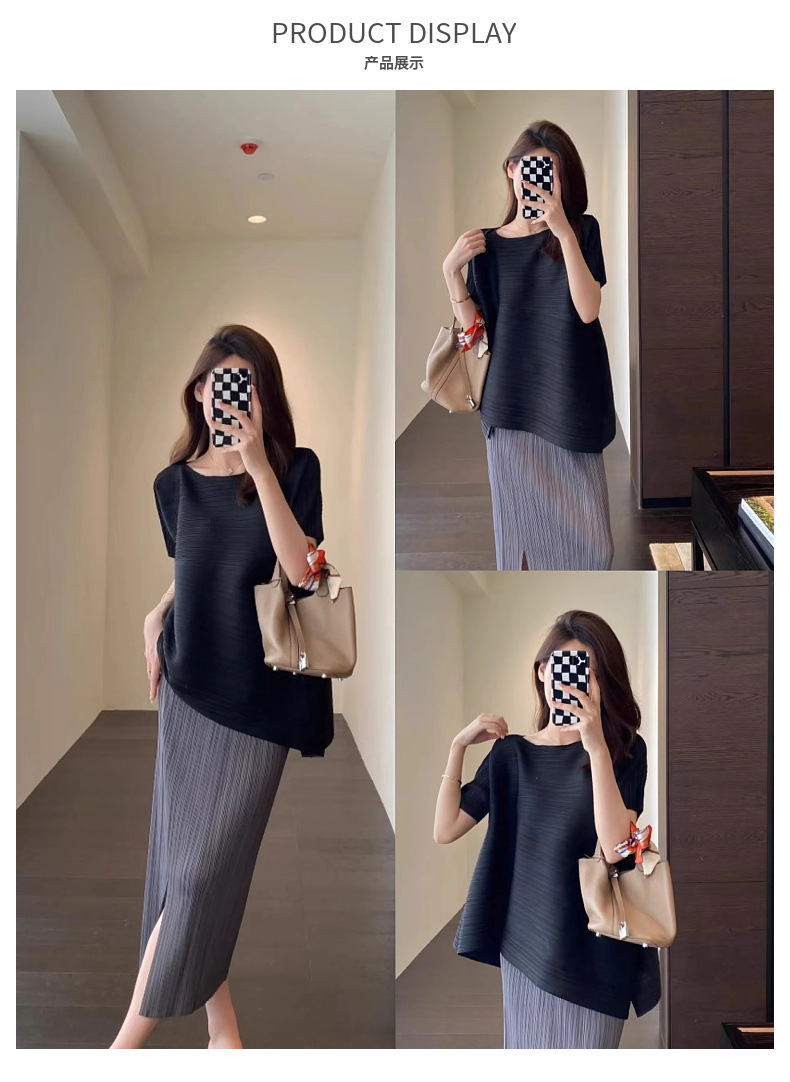 미야케 2024 새로운 스타일의 기질 사교계 솔리드 컬러 넓은 편안한 오목한 탑 엉덩이 하프 스커트 여름 착용스토어 가기