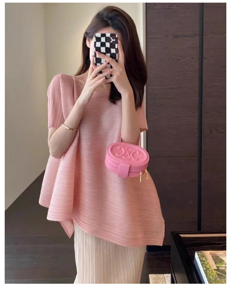 미야케 2024 새로운 스타일의 기질 사교계 솔리드 컬러 넓은 편안한 오목한 탑 엉덩이 하프 스커트 여름 착용