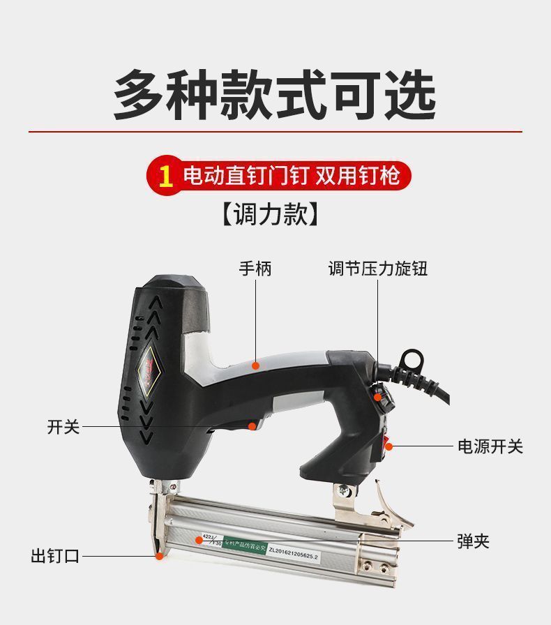 • F30-422 이중 목적 전동 네일건 [힘 조절 모델] + 표준 구성