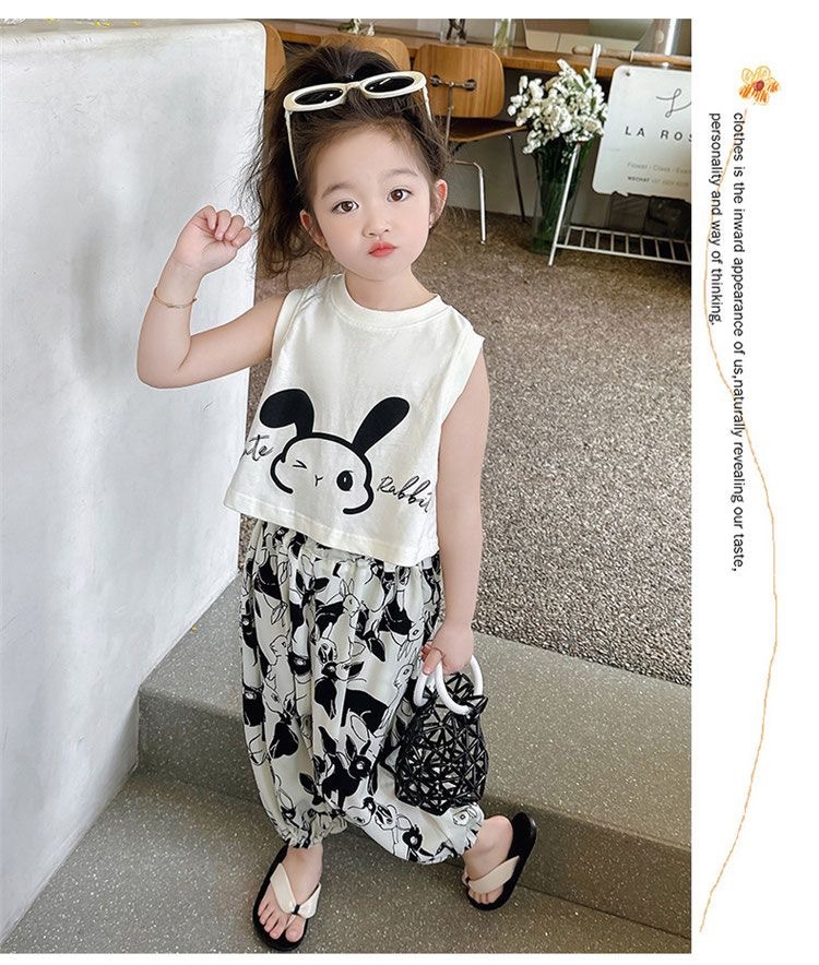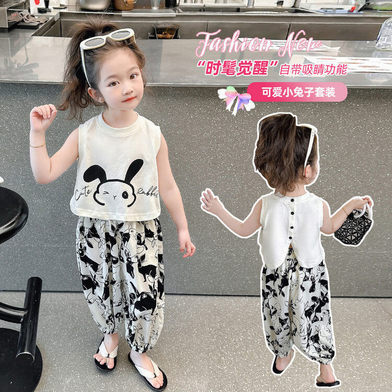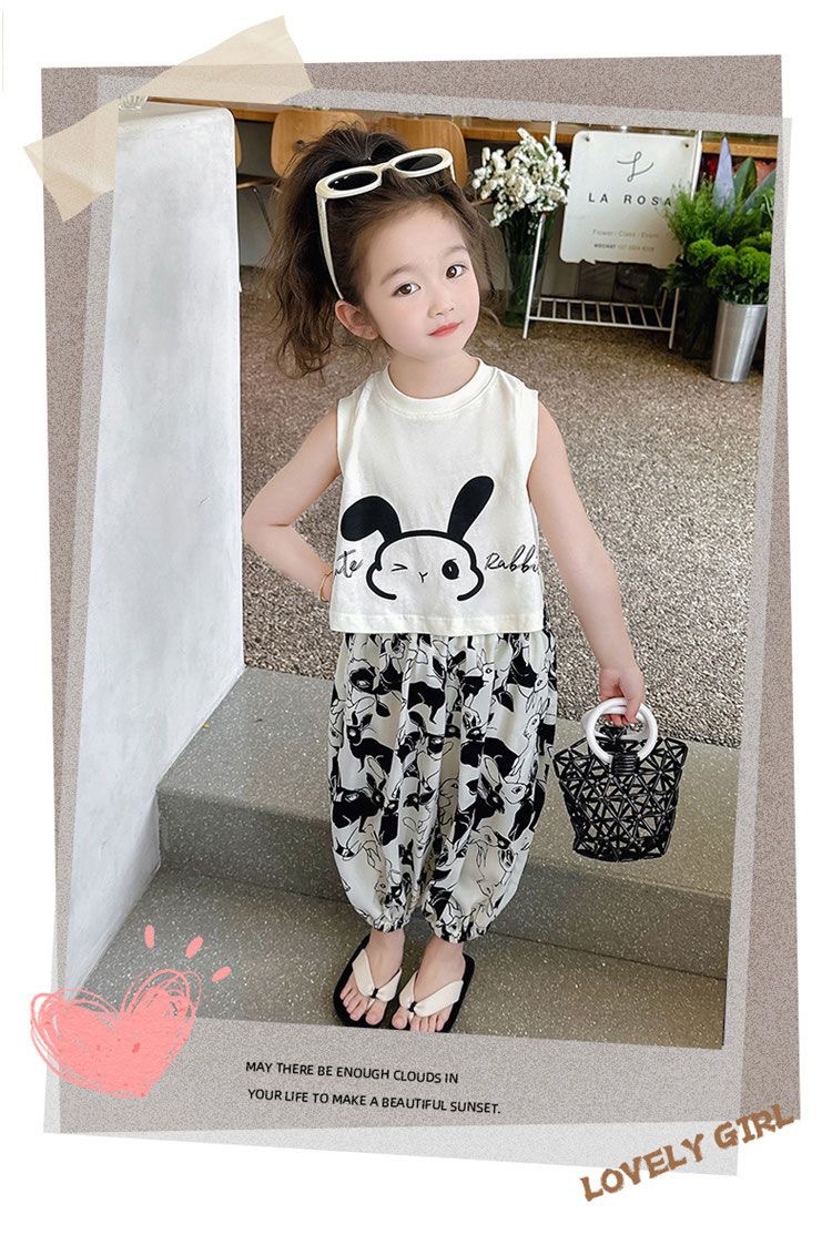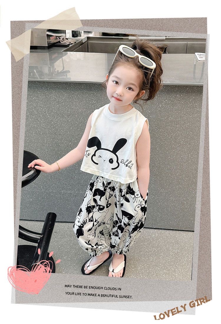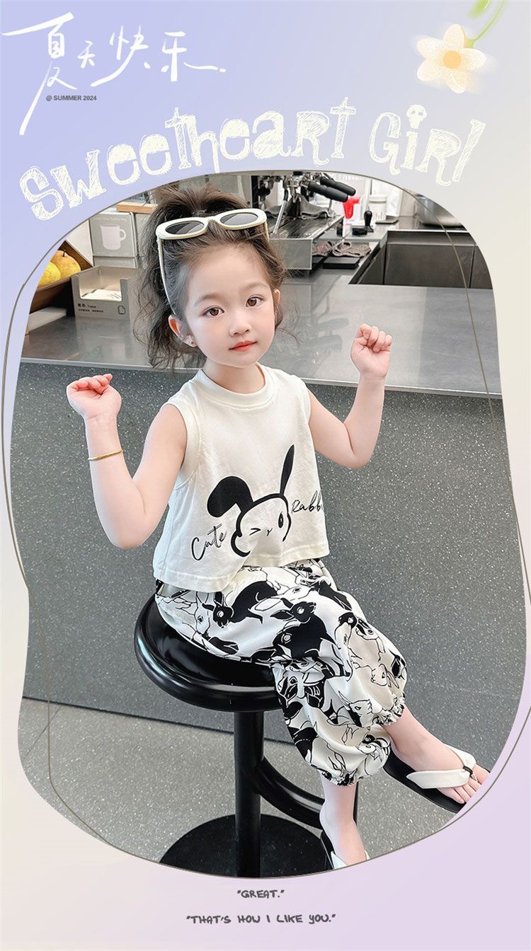 여아 여름 의류 세트 2024 신상 아기 캐주얼 모기 방지 바지 투피스 세트 인기 아동 여름옷 숲속 소녀 스타일스토어 가기
