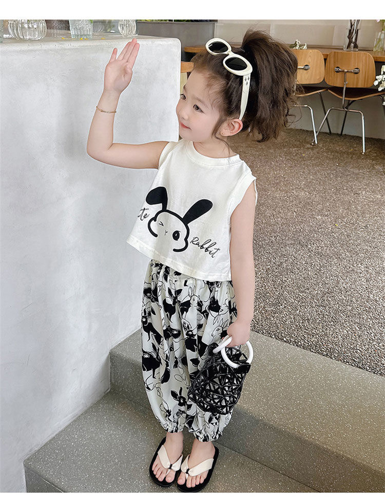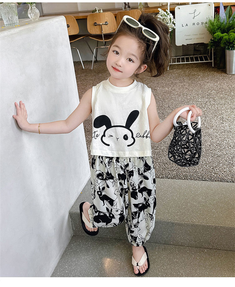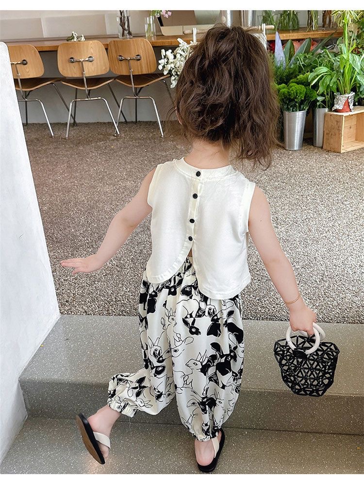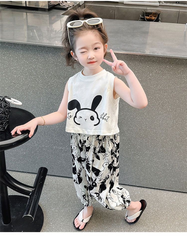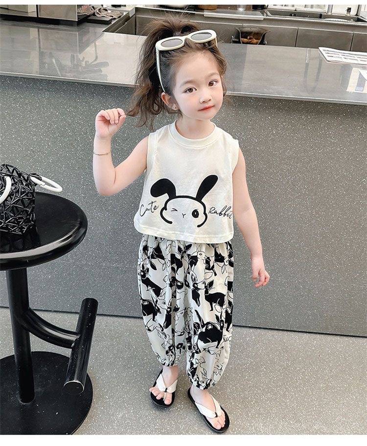여아 여름 의류 세트 2024 신상 아기 캐주얼 모기 방지 바지 투피스 세트 인기 아동 여름옷 숲속 소녀 스타일스토어 가기