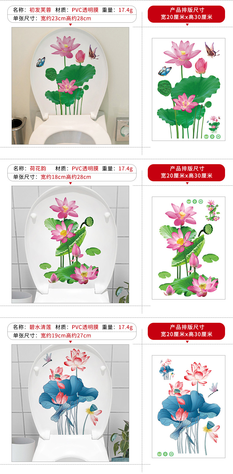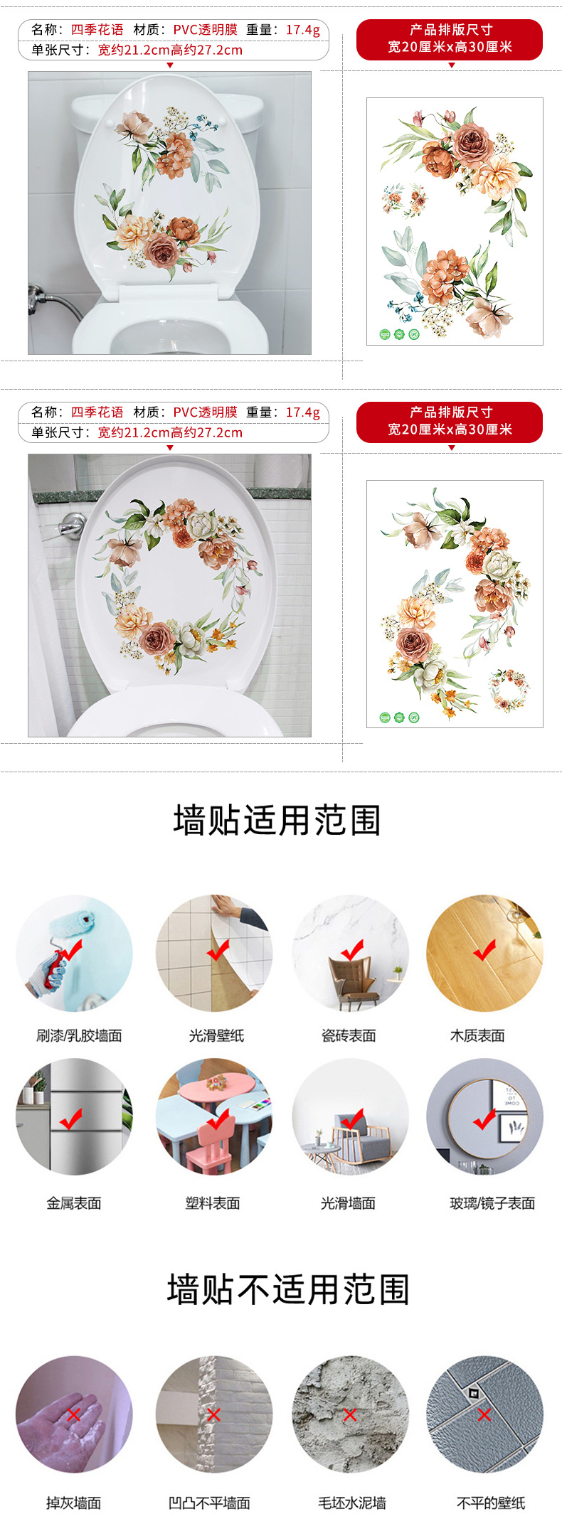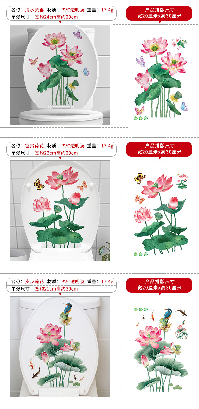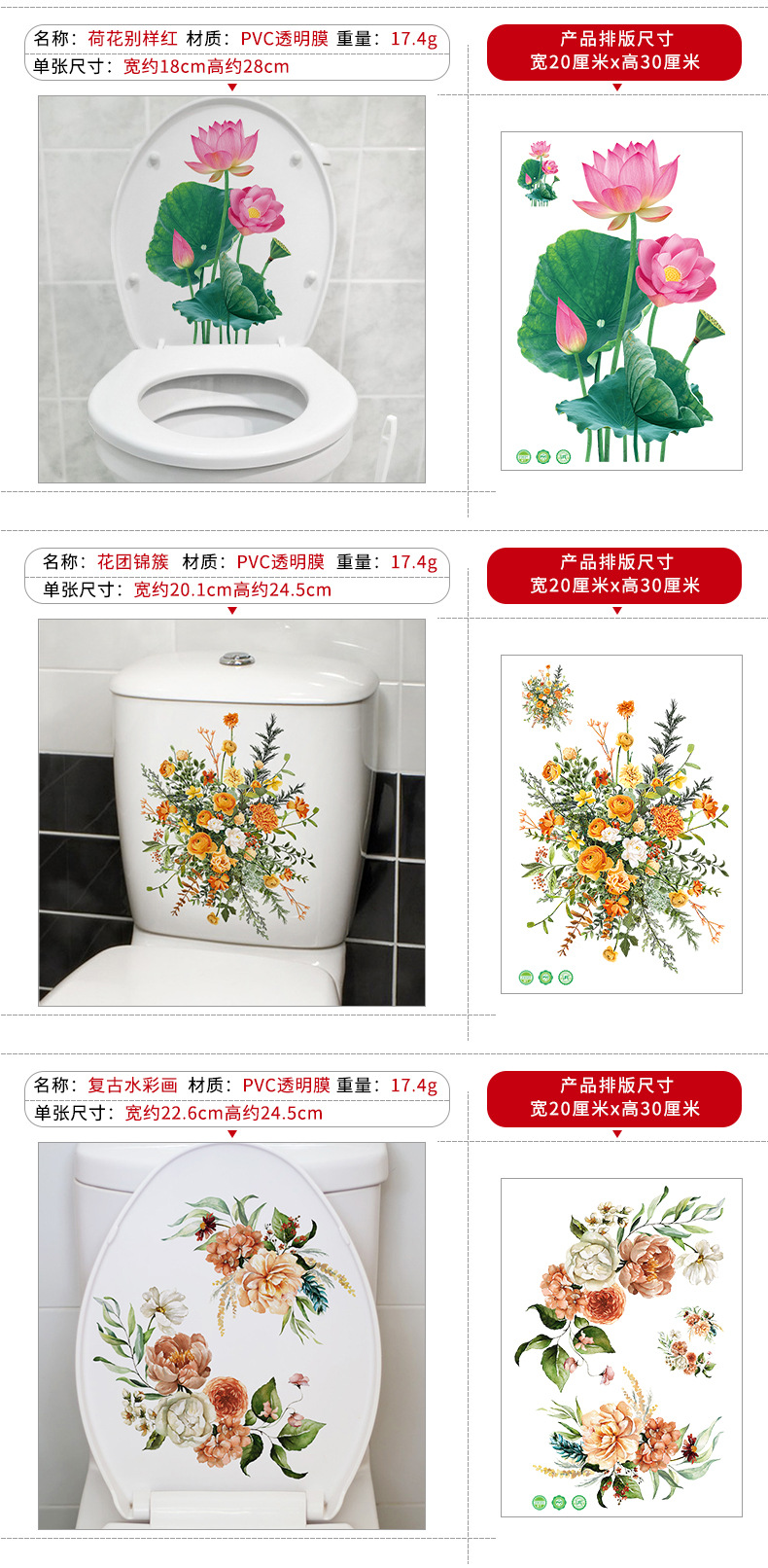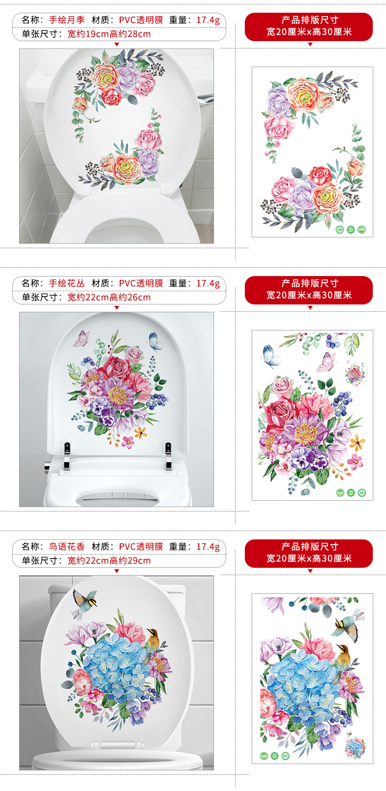 Lv 강 MT23009-23025 화장실 스티커 방수 자기 접착 꽃 미화 나비 장식 스티커 화장실스토어 가기