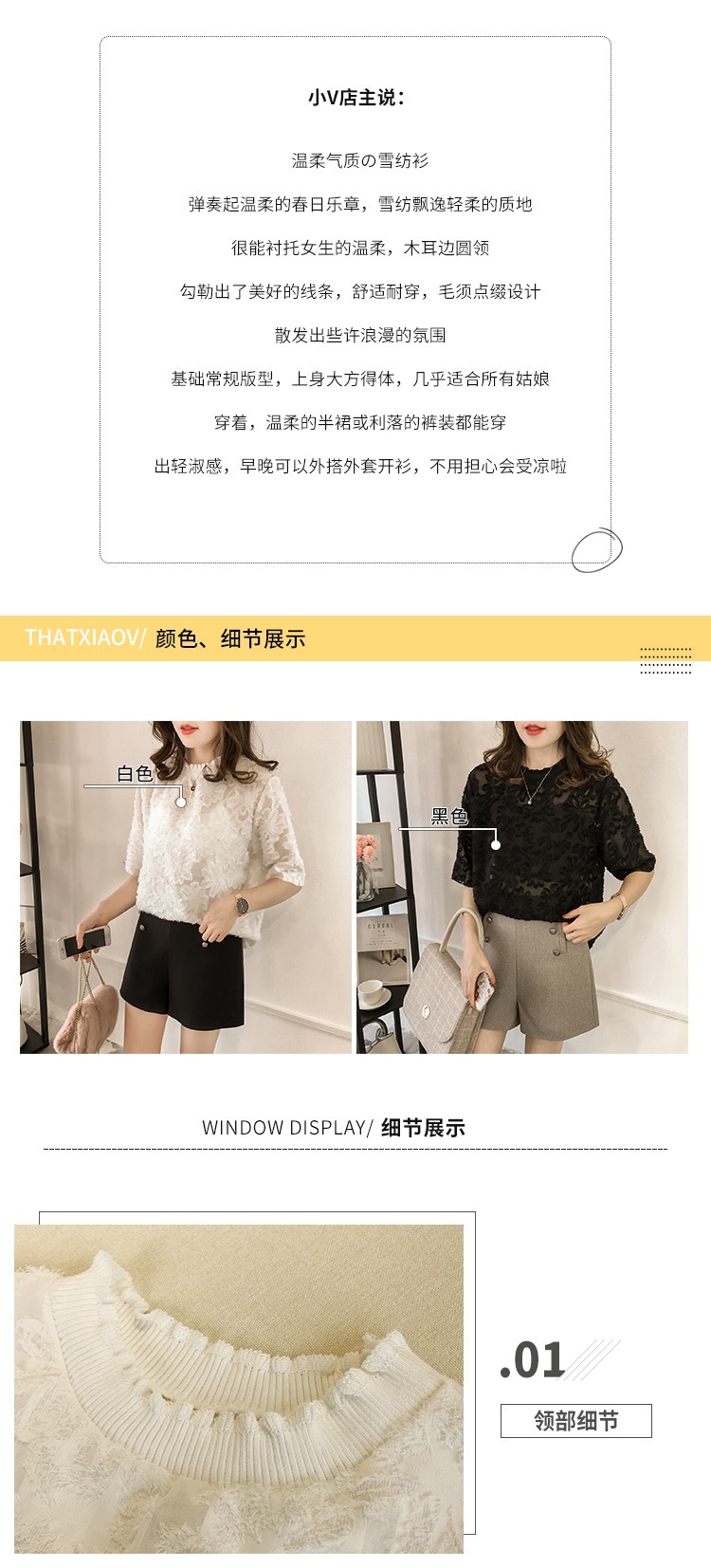 외국 무역용 단색 쉬폰 탑 2026 여름 신상 레이스 5부 소매 프린지 플라워 셔츠 여성 루즈핏 베이스 셔츠스토어 가기