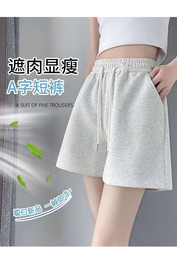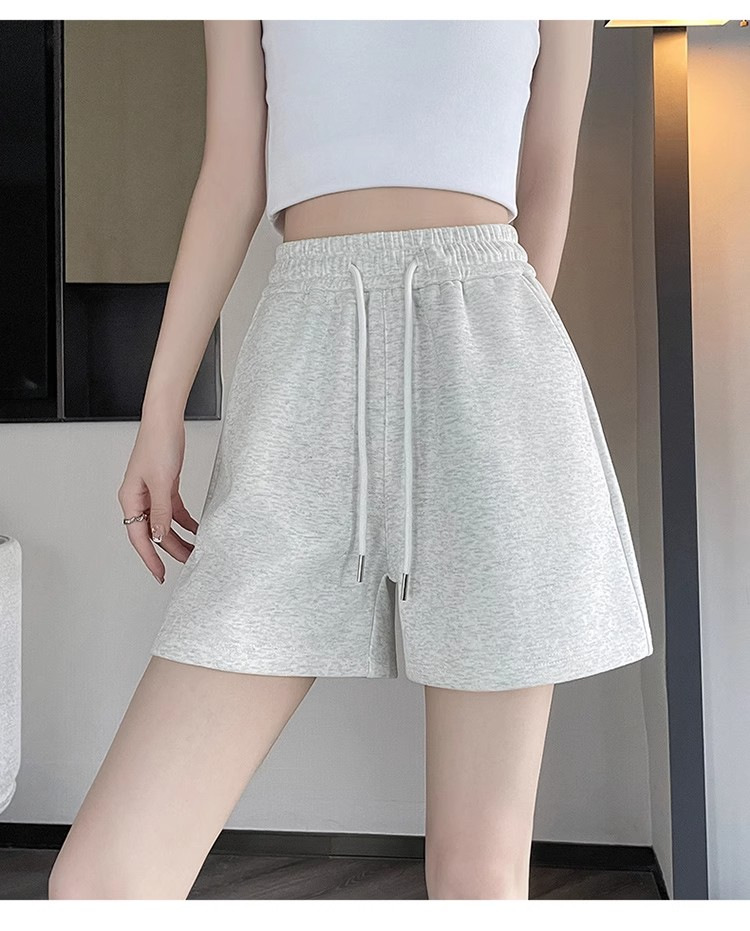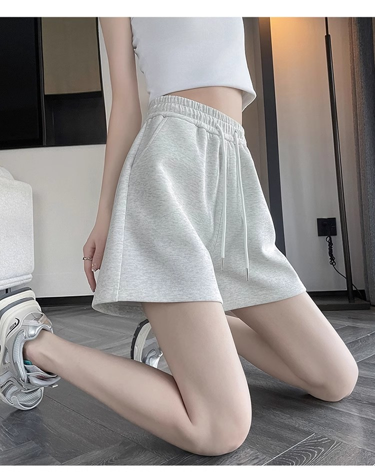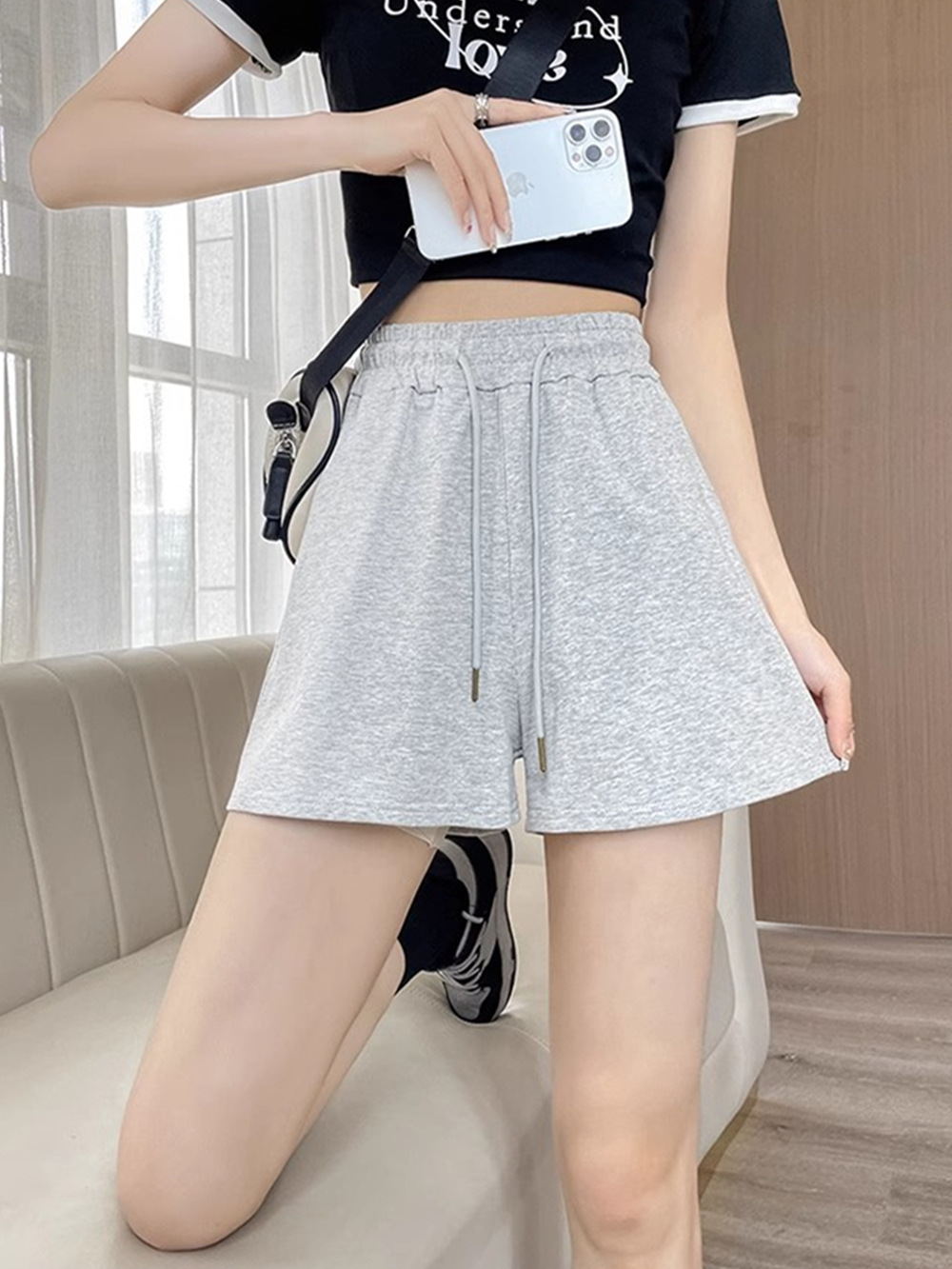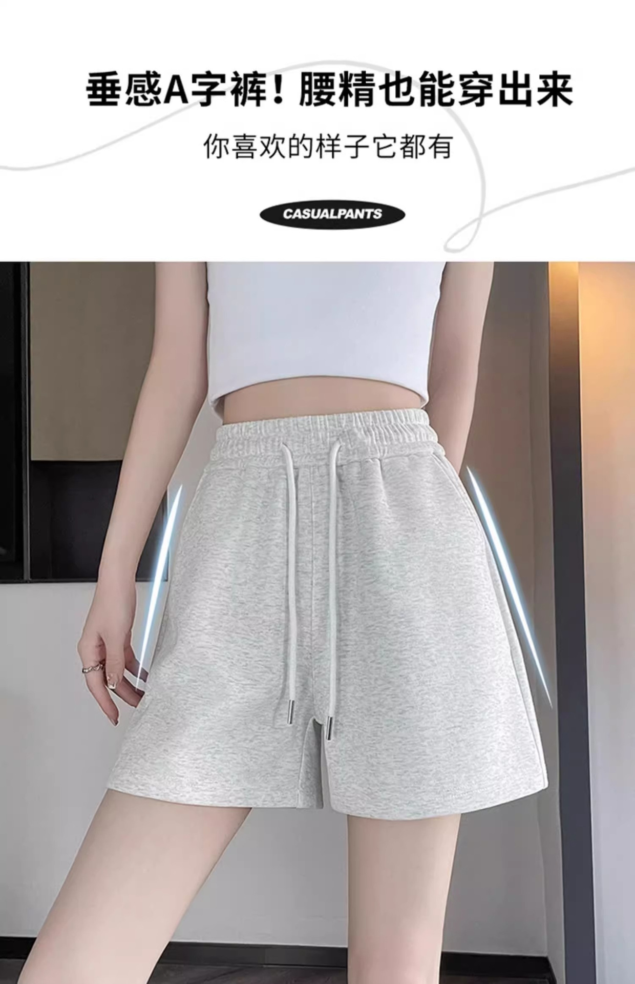 대외 무역 스포츠 반바지 여성 여름 얇은 느슨한 아우터 러닝 캐주얼 하이 허리 스트레이트 A-레그 와이드 레그 3 점 바지