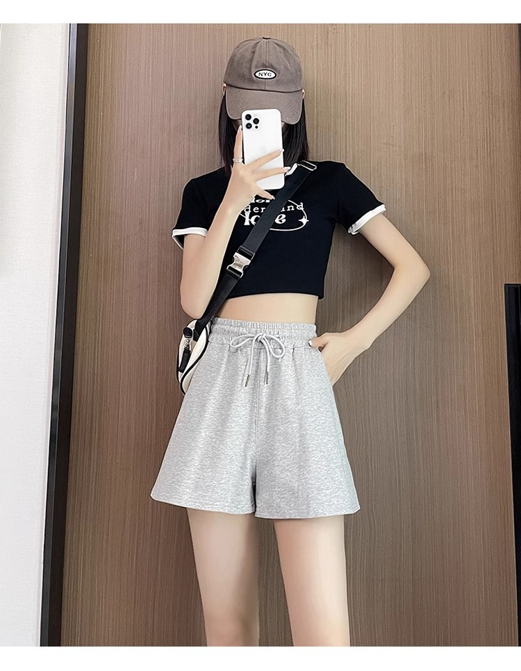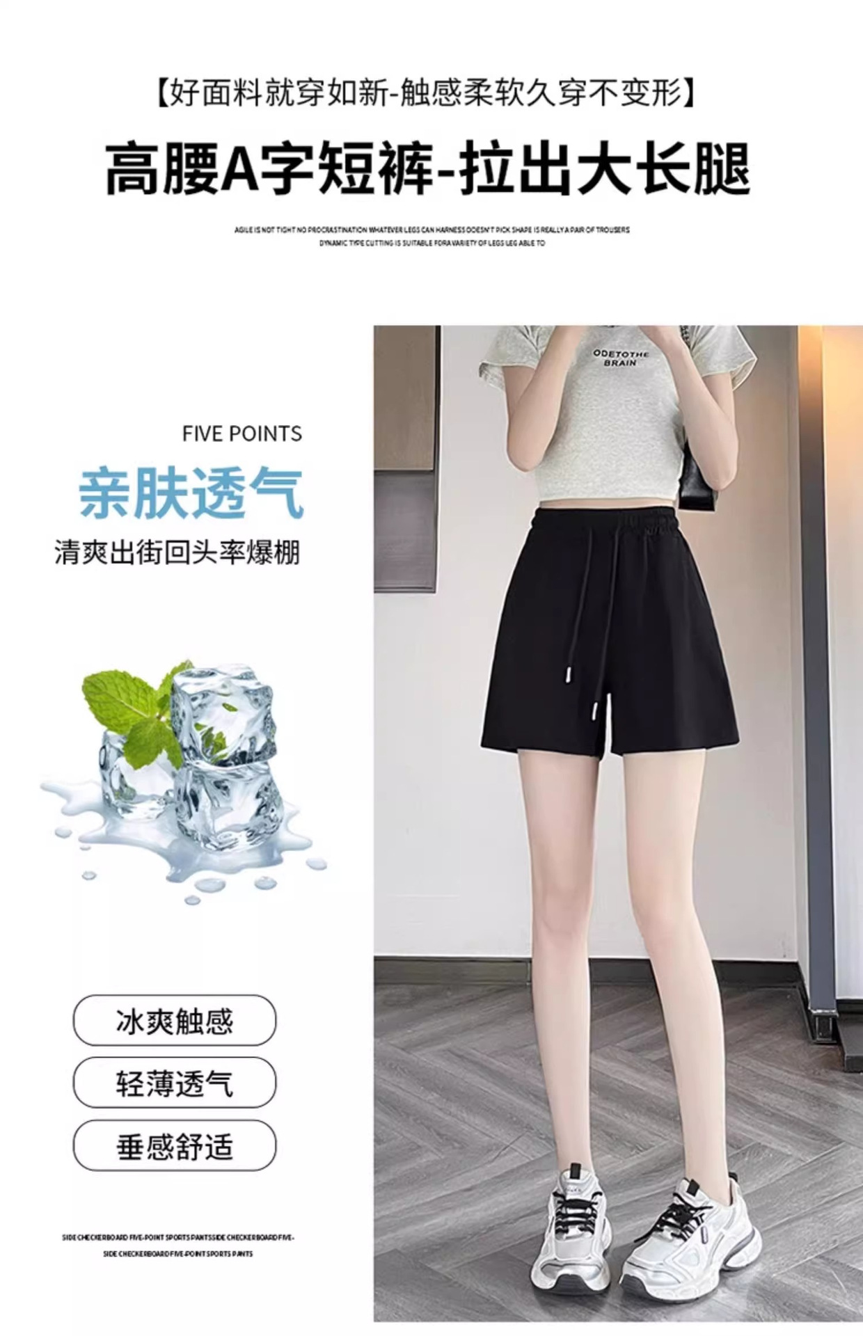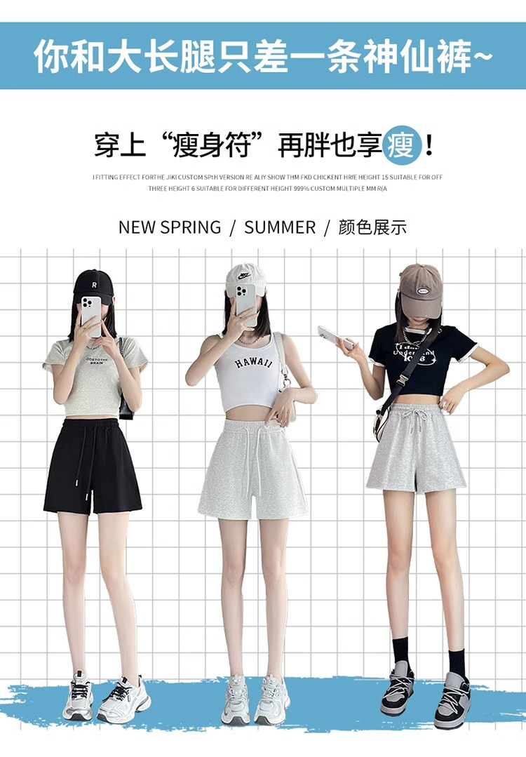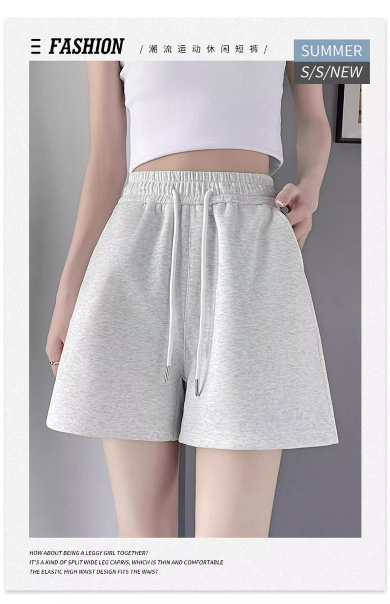대외 무역 스포츠 반바지 여성 여름 얇은 느슨한 아우터 러닝 캐주얼 하이 허리 스트레이트 A-레그 와이드 레그 3 점 바지스토어 가기