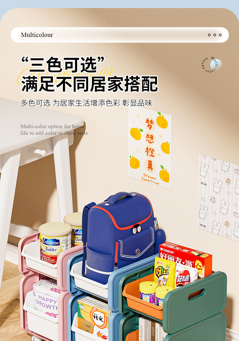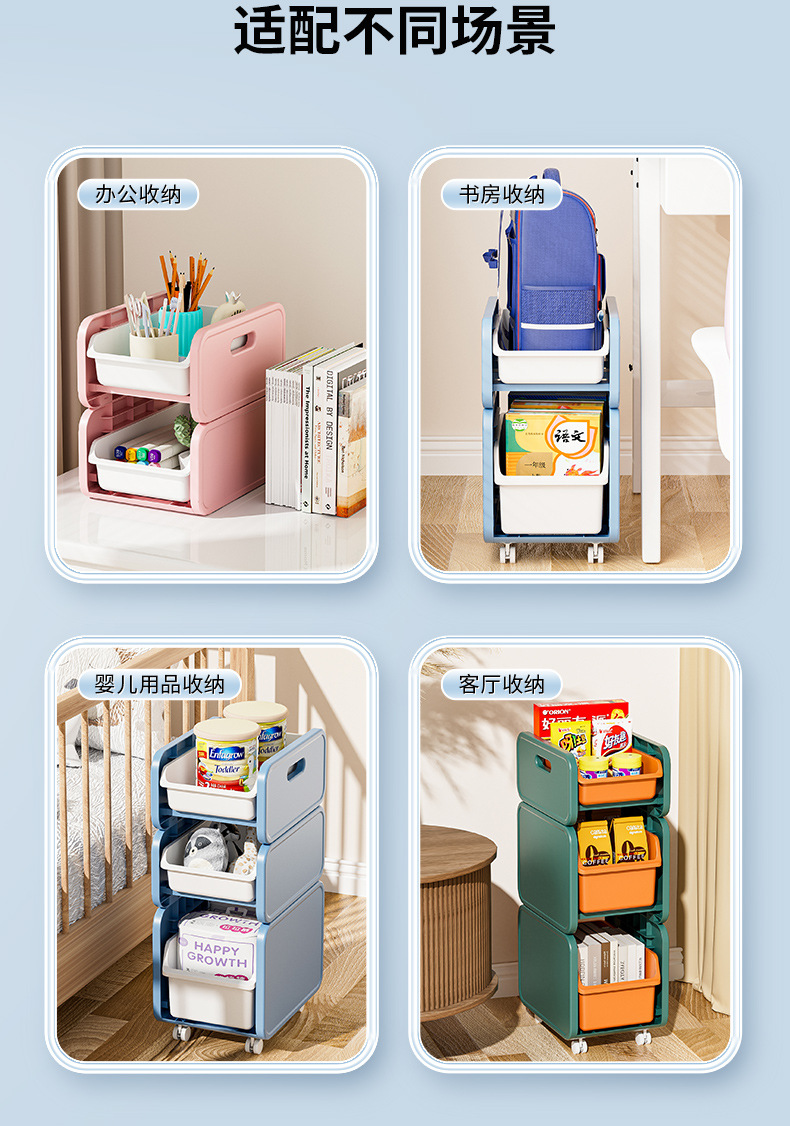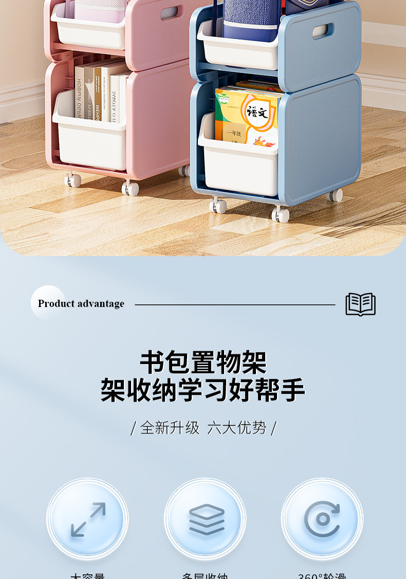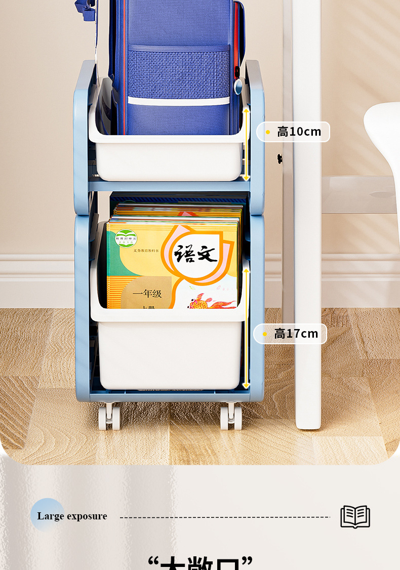 이동식 작은 카트 만화 스티커 보관 랙을위한 작은 카트 책 보관 및 배열 랙을위한 가정용 학교 가방 보관 랙