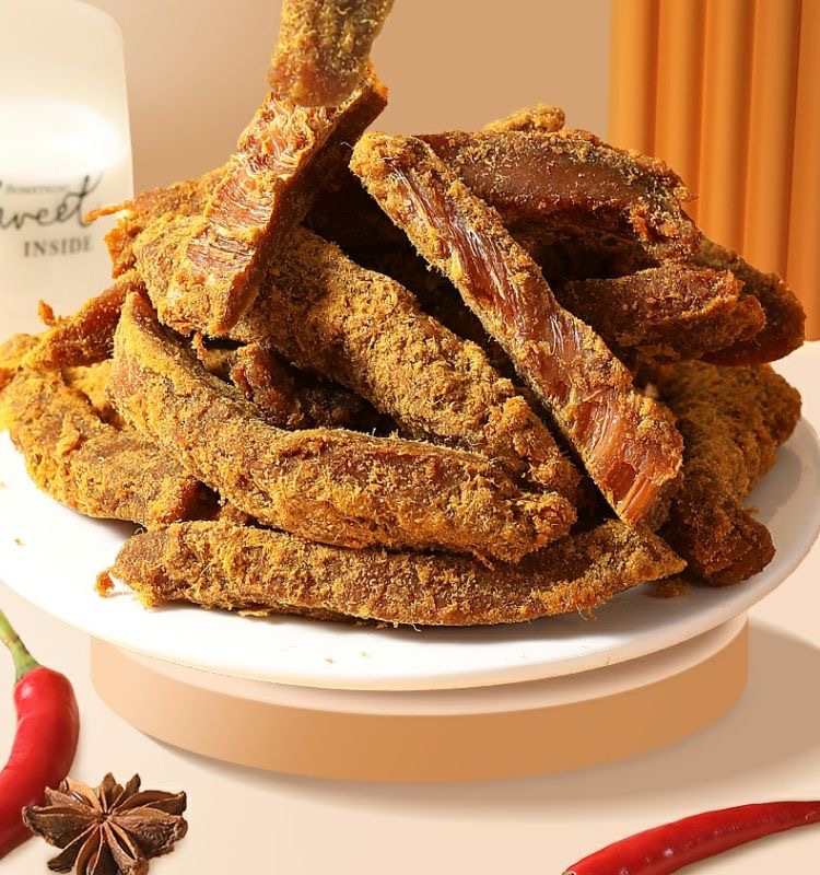 소스 공장 손으로 찢어진 치킨 스트립 매운 satay 매운 인스턴트 식품 스낵 도매 제조 업체