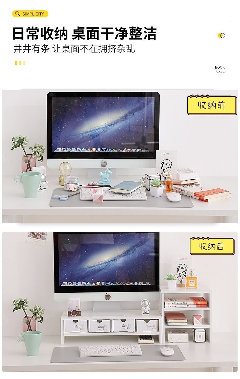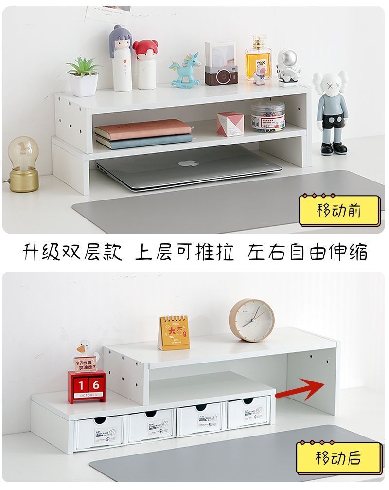 데스크탑 모니터 수납 테이블 ins 컴퓨터 높이 조절 스탠드 사무실 책상 수납 선반 가정용