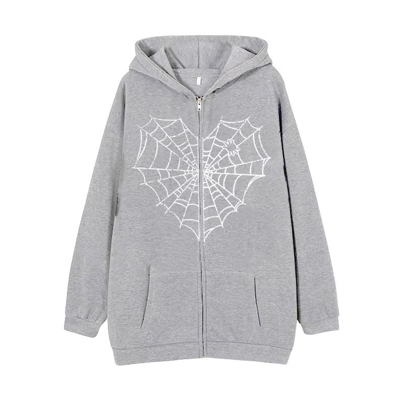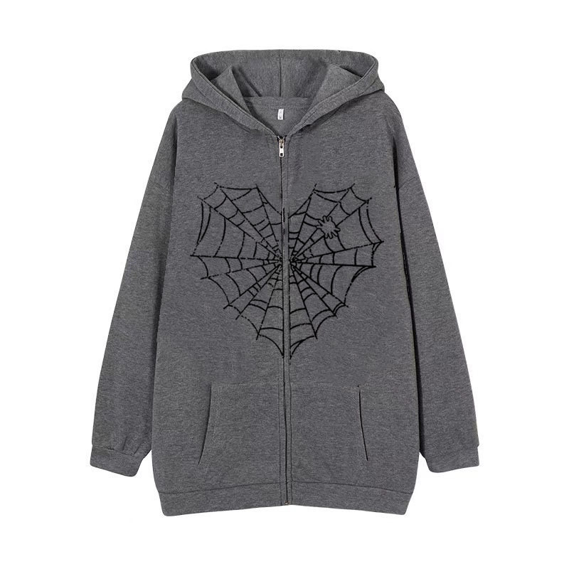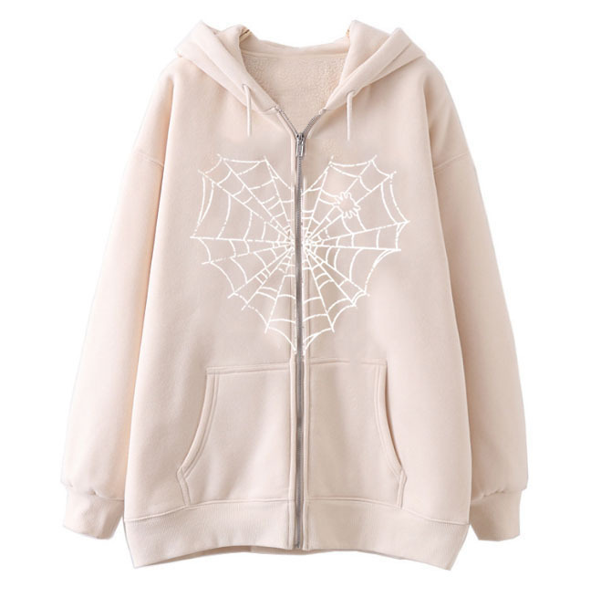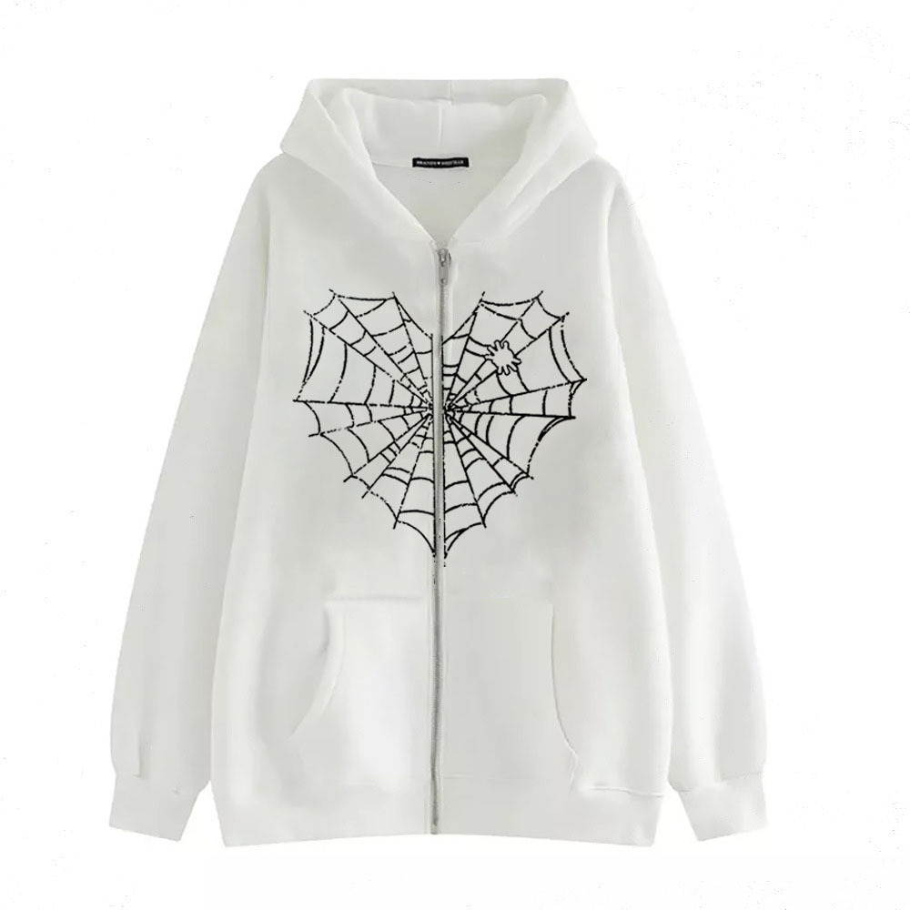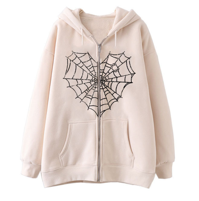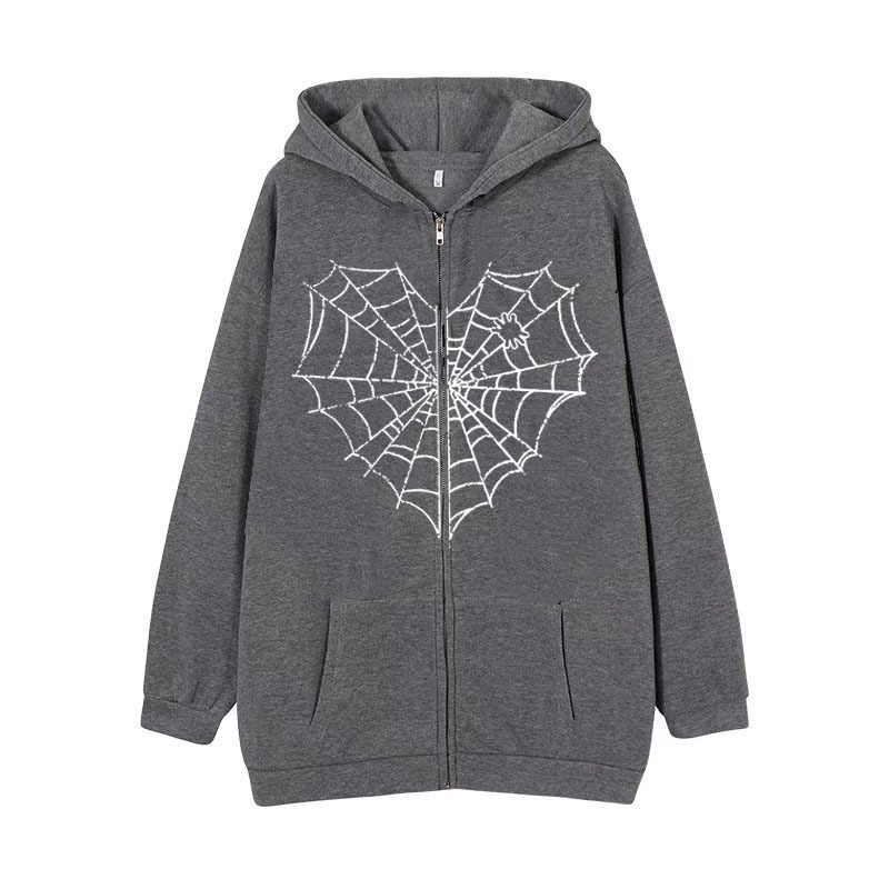 유럽과 미국의 트렌디한 브랜드 패션 스파이더 웹 프린트 지퍼 후드 가디건 남성 캐주얼 다용도 긴팔 스웨트 가디건스토어 가기