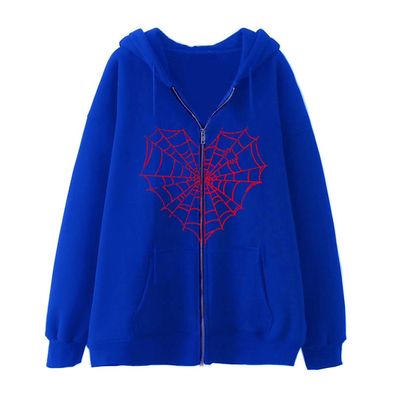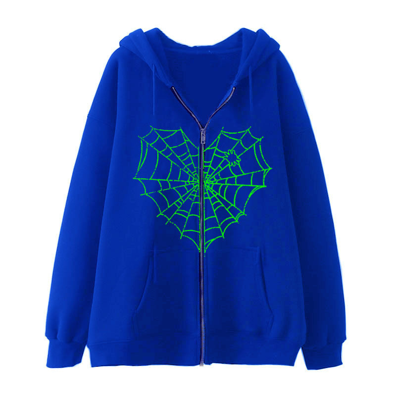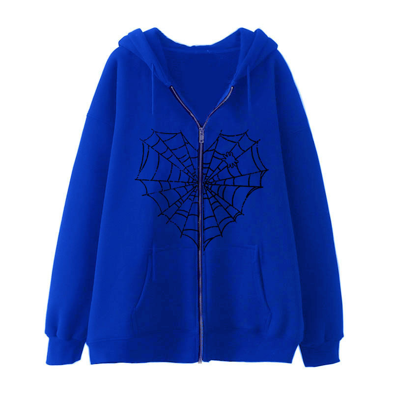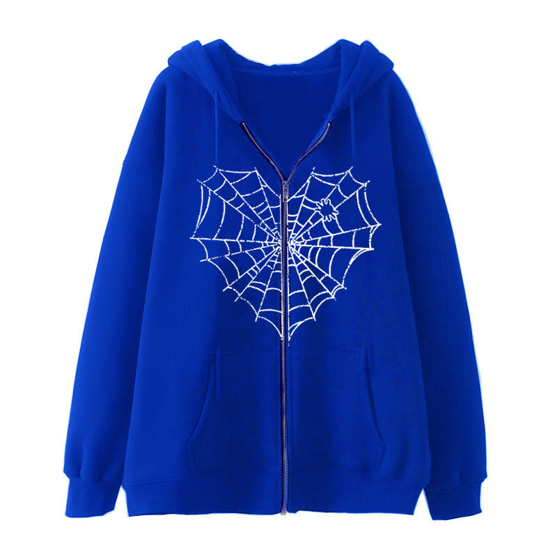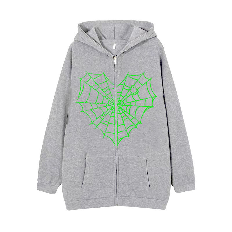 유럽과 미국의 트렌디한 브랜드 패션 스파이더 웹 프린트 지퍼 후드 가디건 남성 캐주얼 다용도 긴팔 스웨트 가디건스토어 가기
