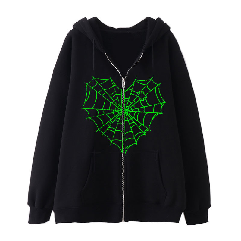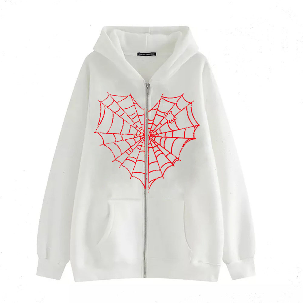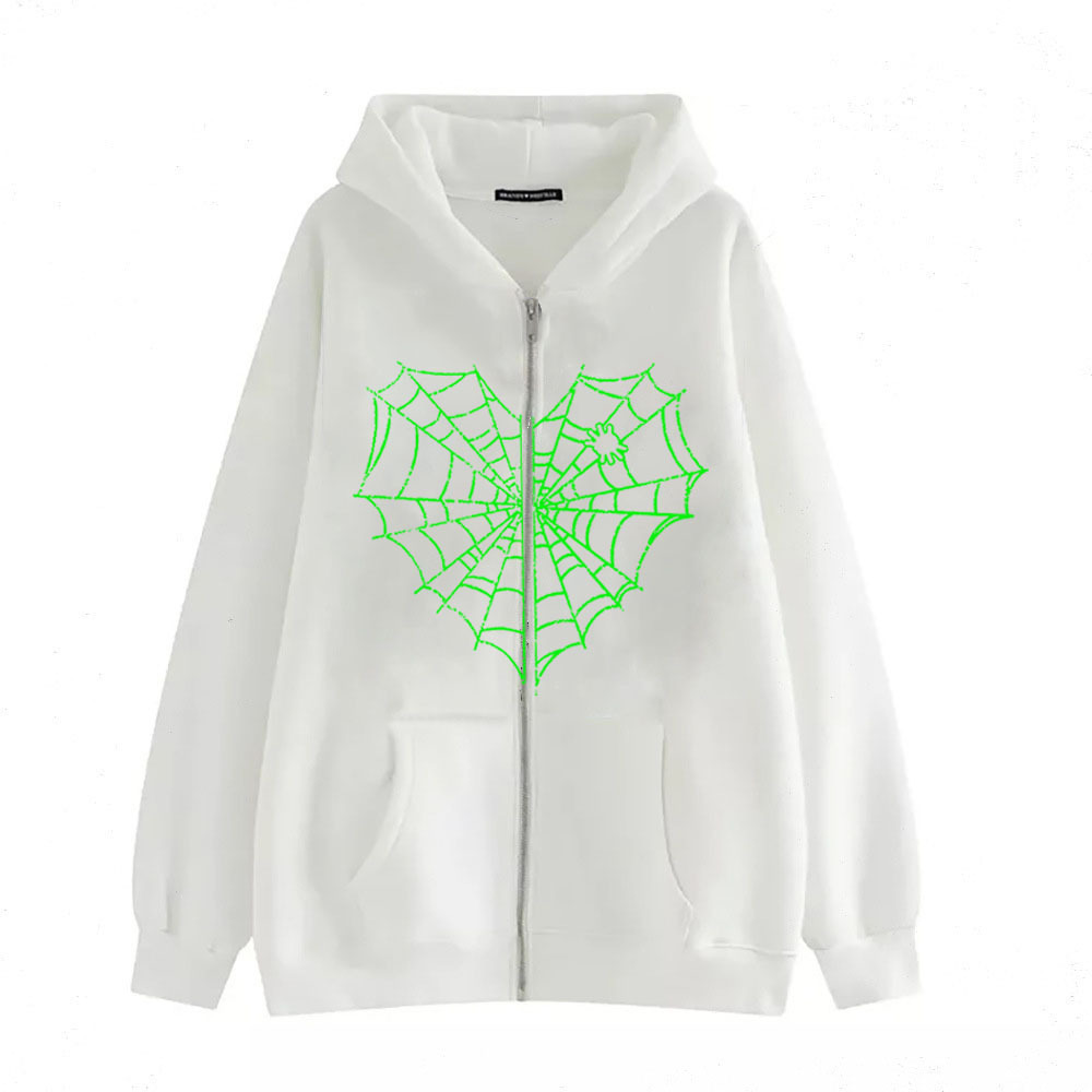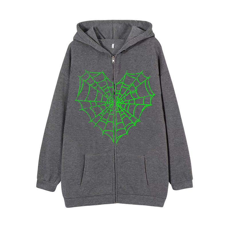 유럽과 미국의 트렌디한 브랜드 패션 스파이더 웹 프린트 지퍼 후드 가디건 남성 캐주얼 다용도 긴팔 스웨트 가디건