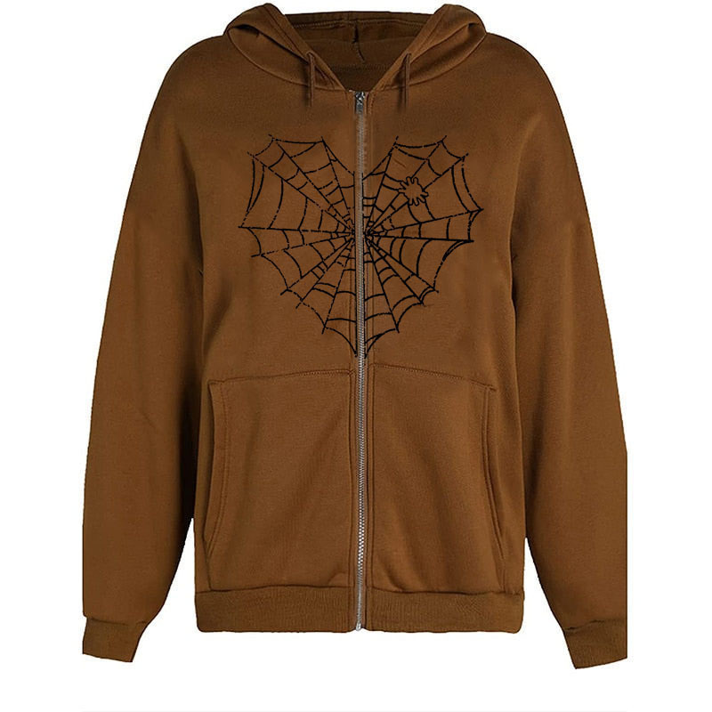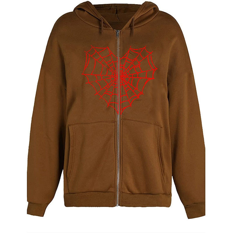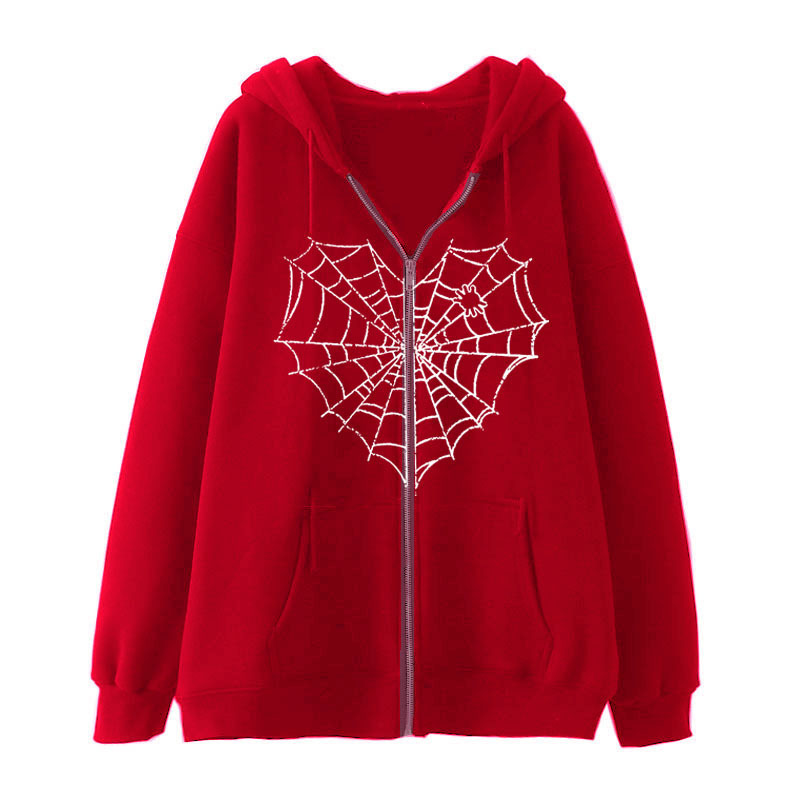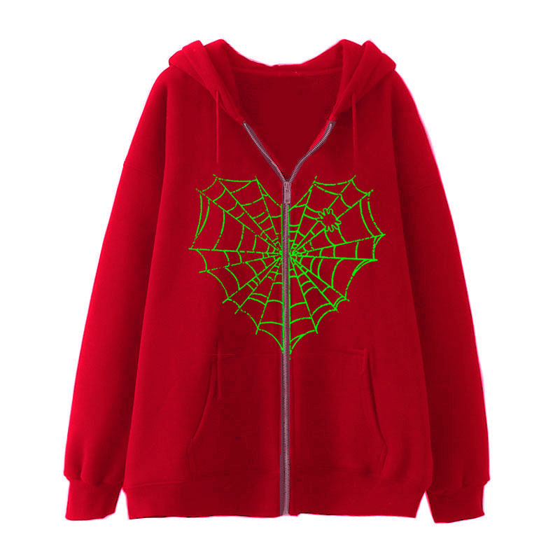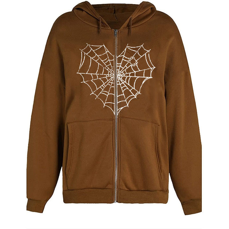 유럽과 미국의 트렌디한 브랜드 패션 스파이더 웹 프린트 지퍼 후드 가디건 남성 캐주얼 다용도 긴팔 스웨트 가디건