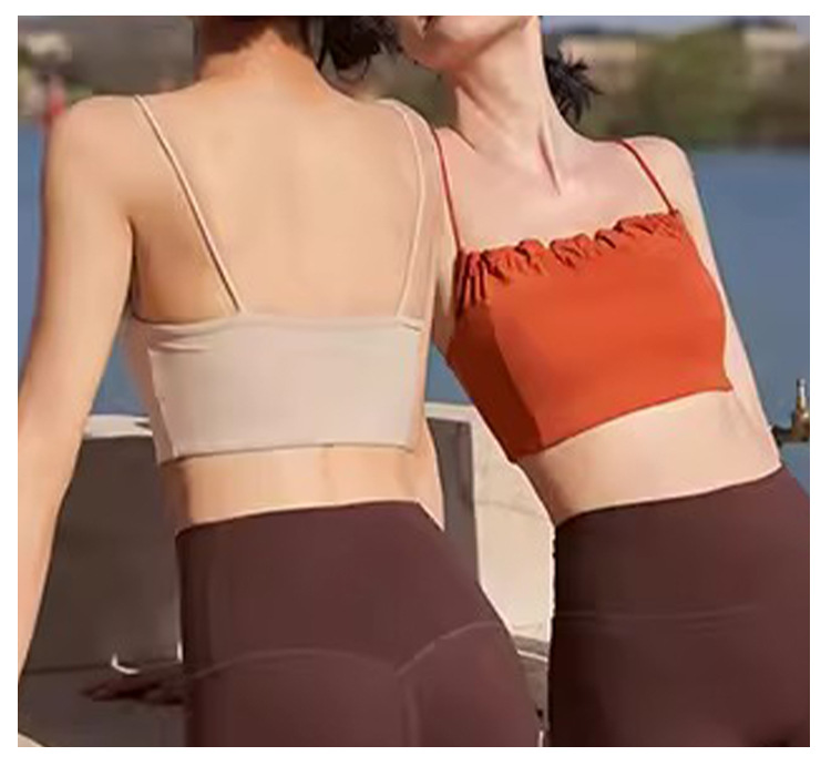 국경 간 유럽과 미국의 Amazon 뜨거운 소녀 섹시한 서스펜더 스파게티 스트랩 요가 속옷 여성용 외부 착용 가슴 패드가있는 올인원 브래지어스토어 가기