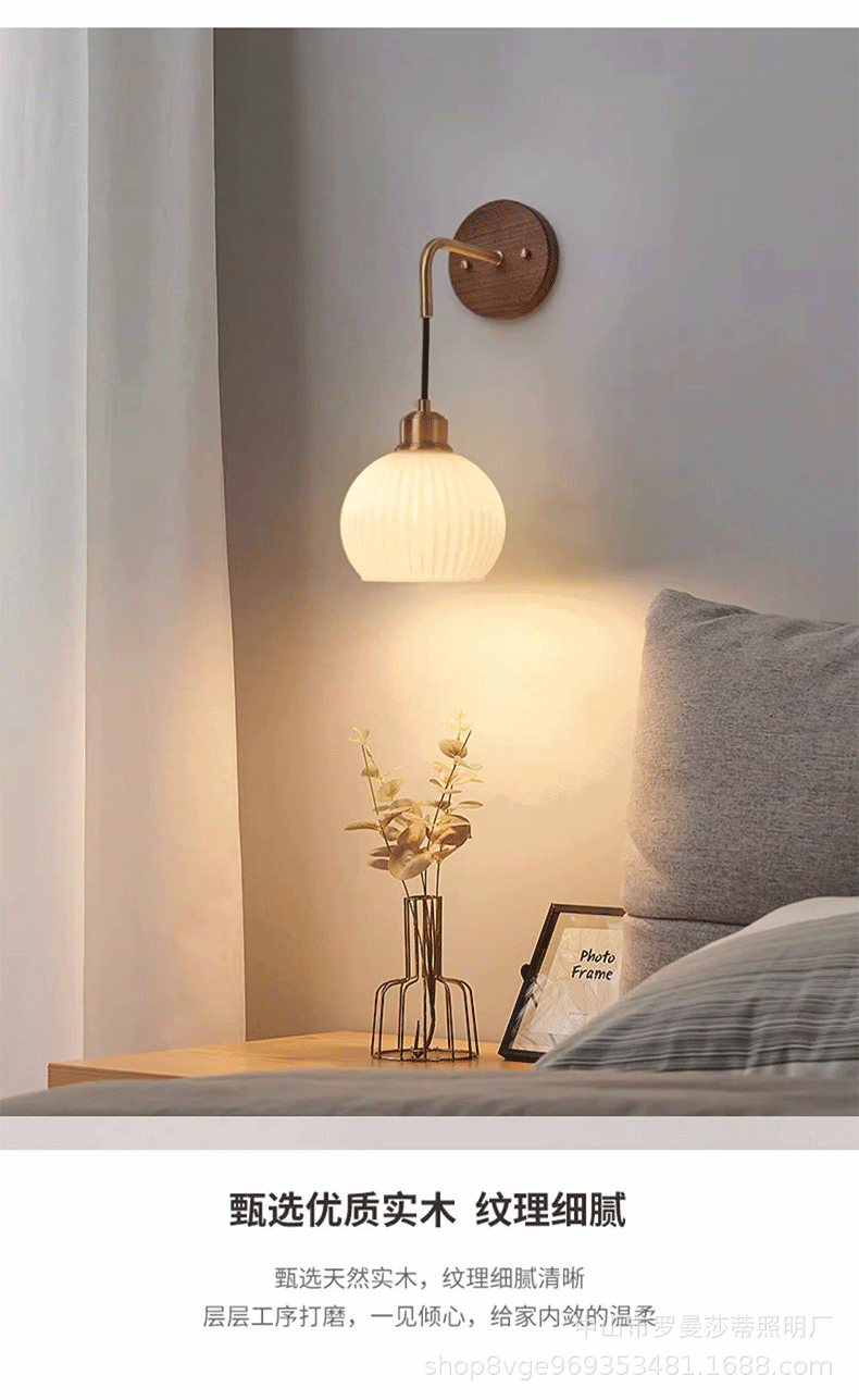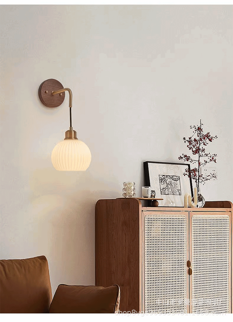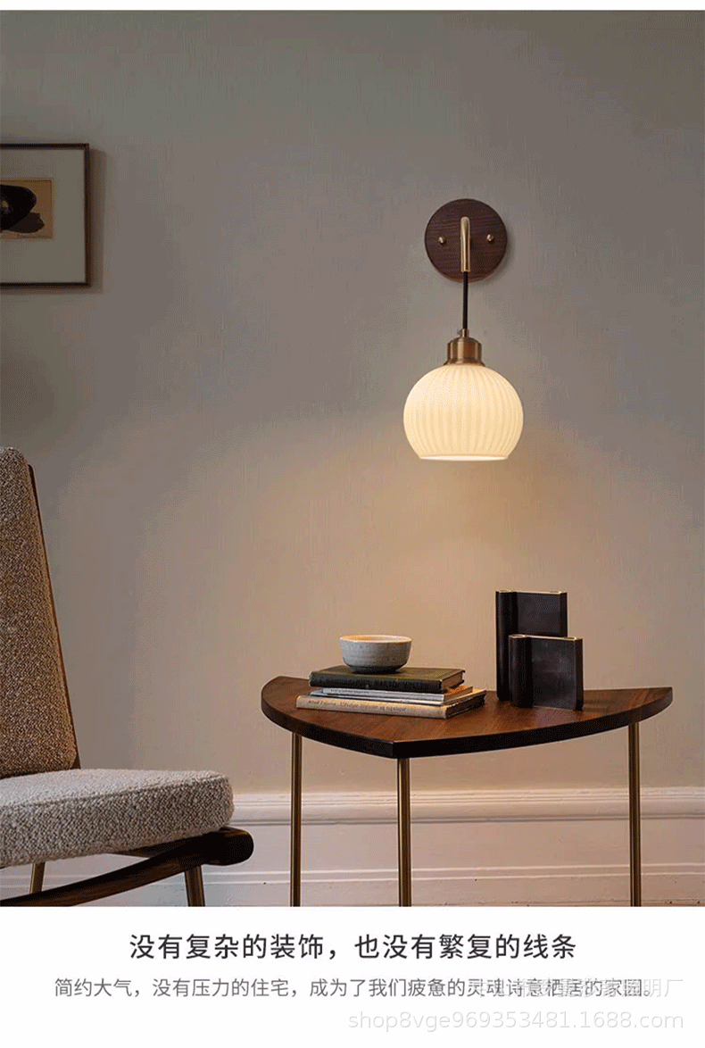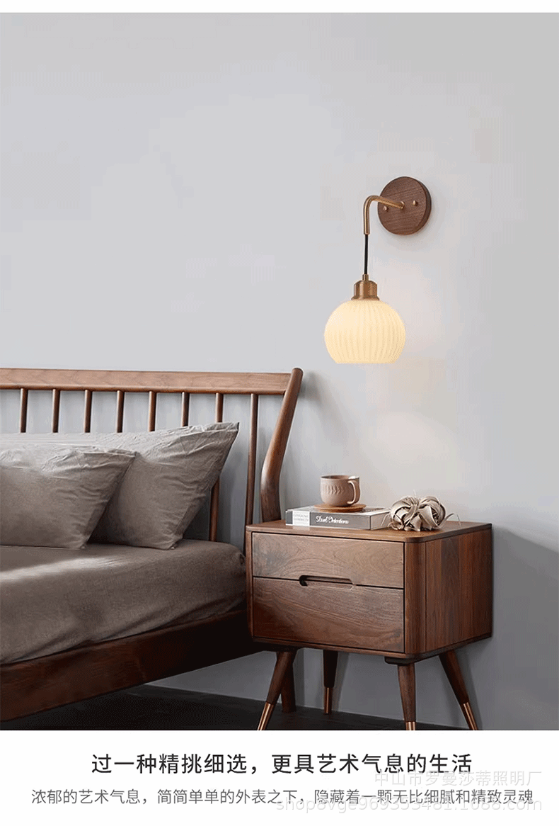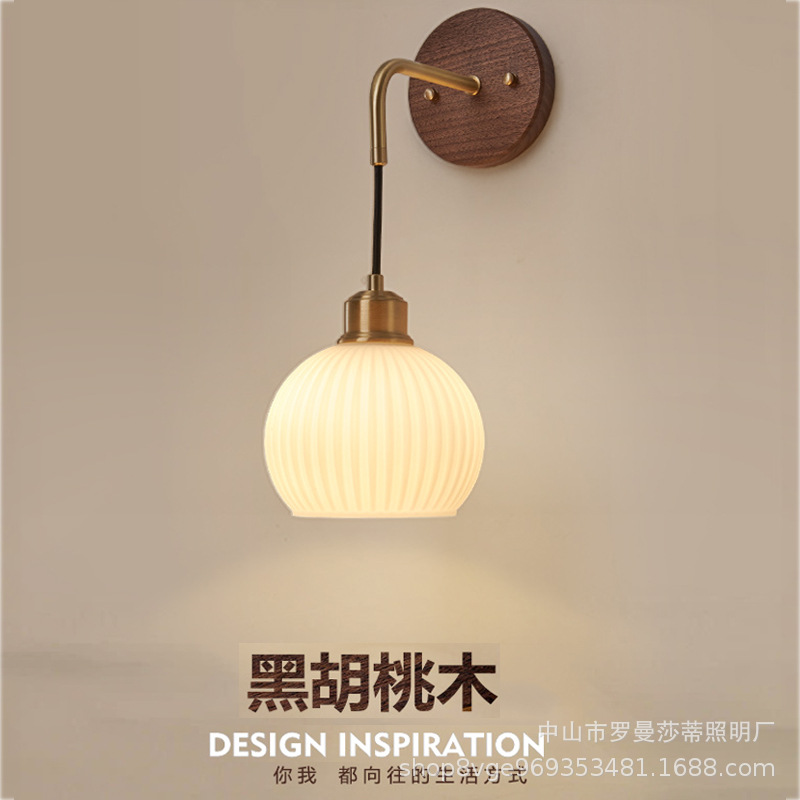 침실 벽 램프 현대 중국 스타일 빈티지 거실 배경 벽 호두 램프 일본 스타일 침묵하는 스타일 침대 옆 교수형 램프스토어 가기