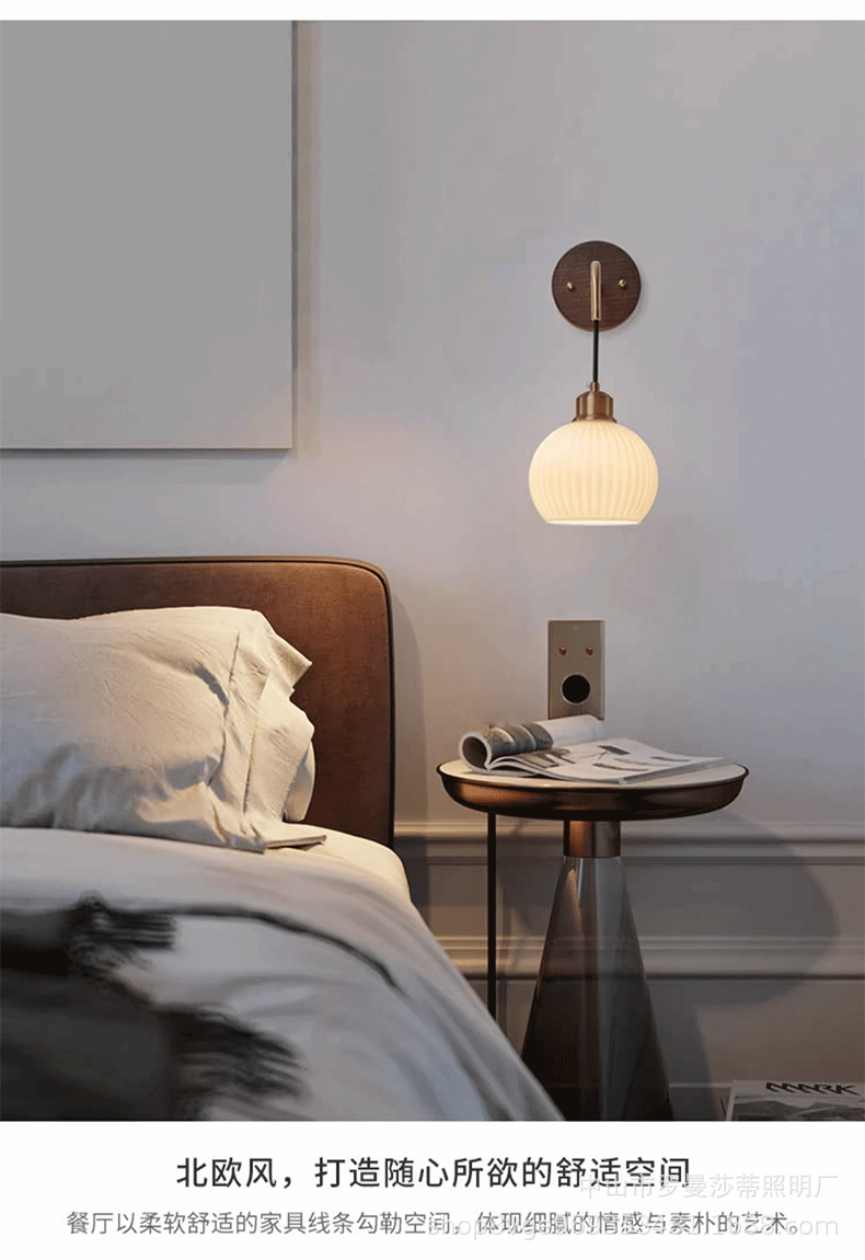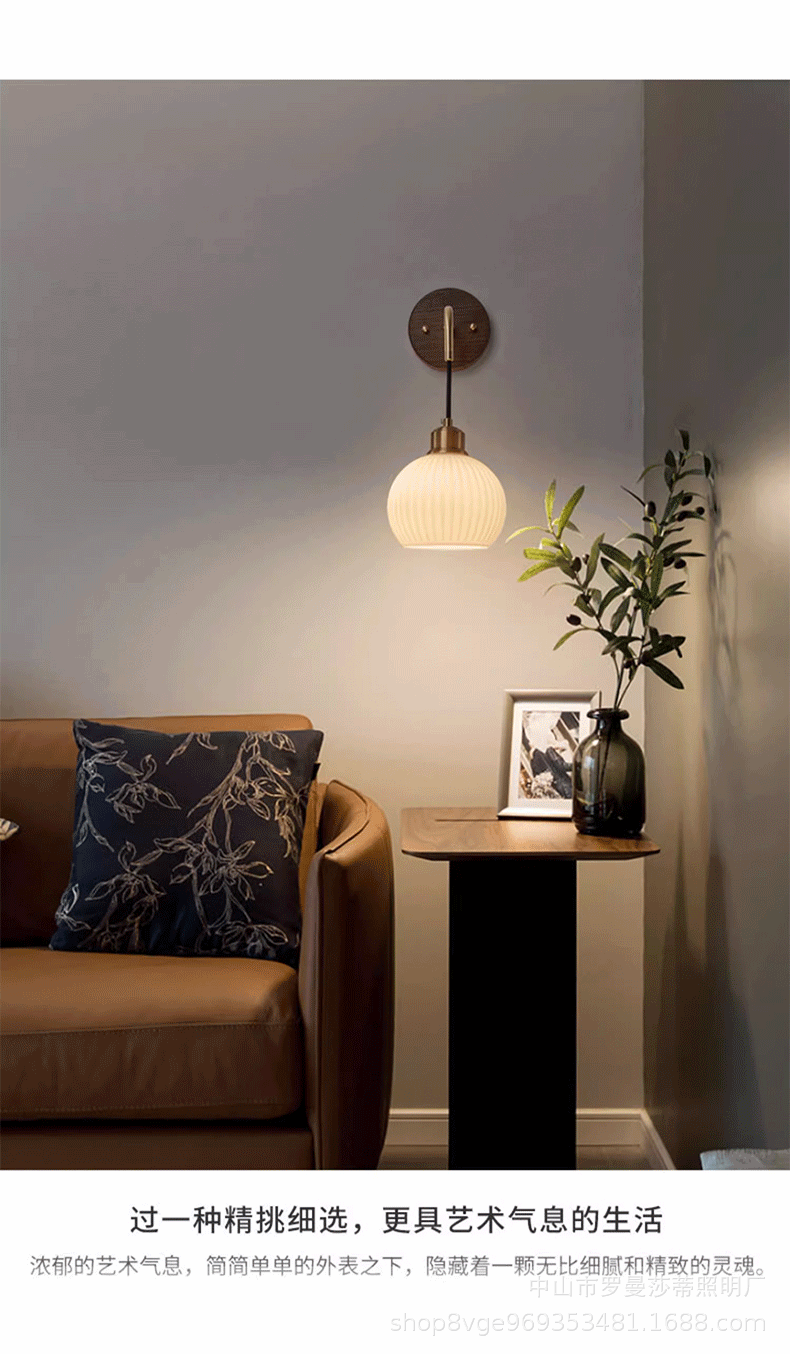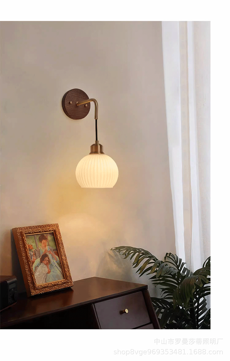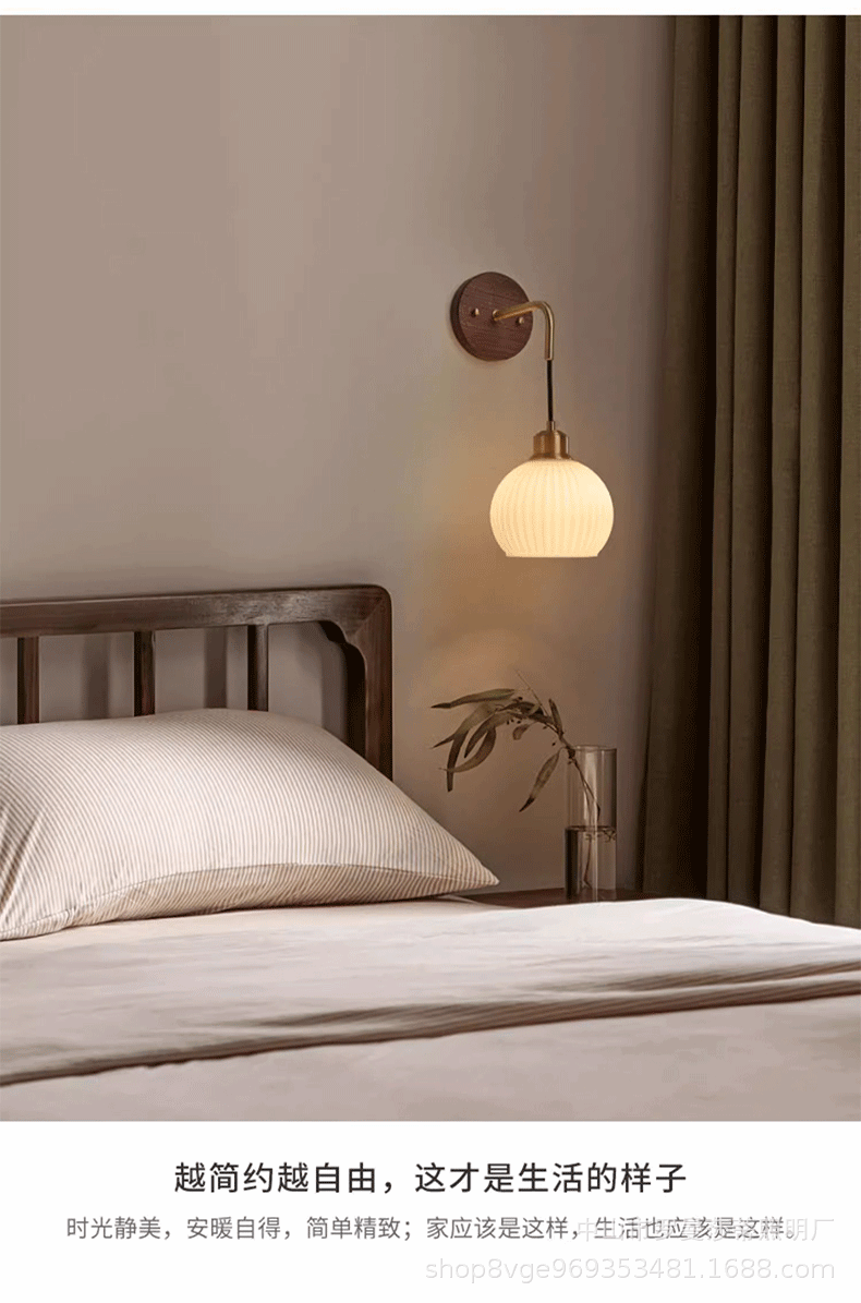 침실 벽 램프 현대 중국 스타일 빈티지 거실 배경 벽 호두 램프 일본 스타일 침묵하는 스타일 침대 옆 교수형 램프스토어 가기