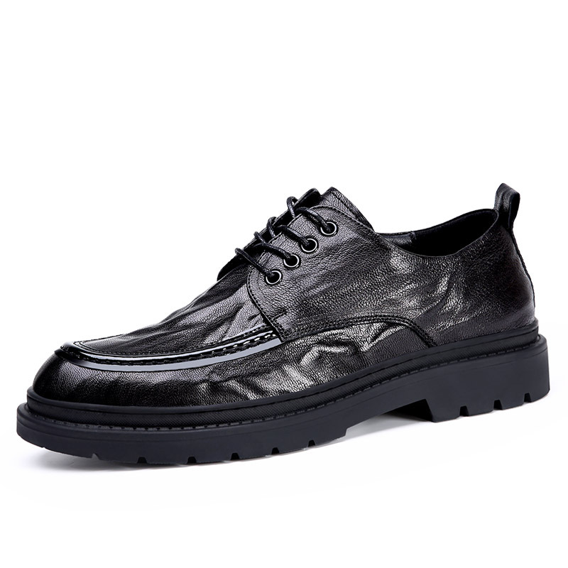 2024 새로운 가죽 통기성 남성 신발 라운드 헤드 비즈니스 캐주얼 신발 청소년 조커 두꺼운 밑창 남성 가죽 신발 제조 업체 도매