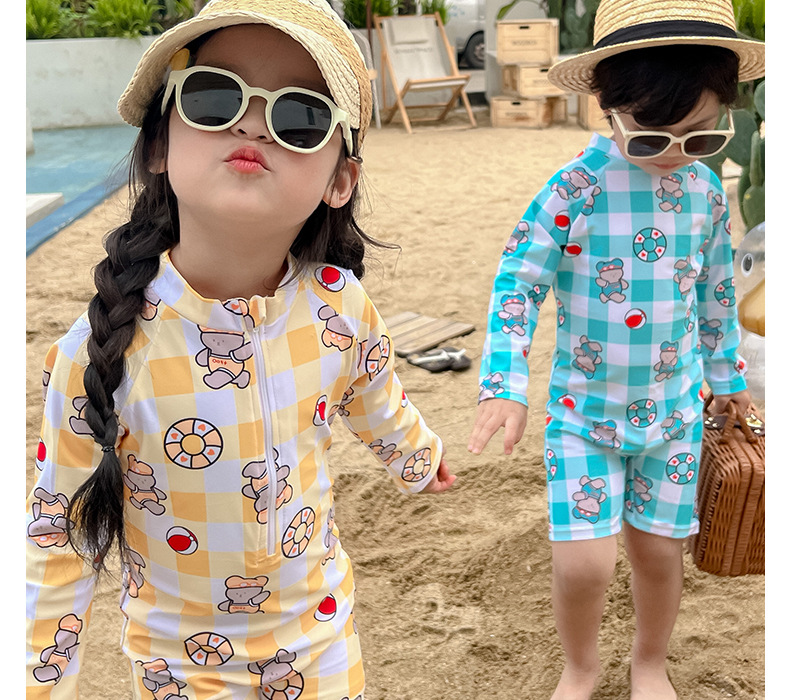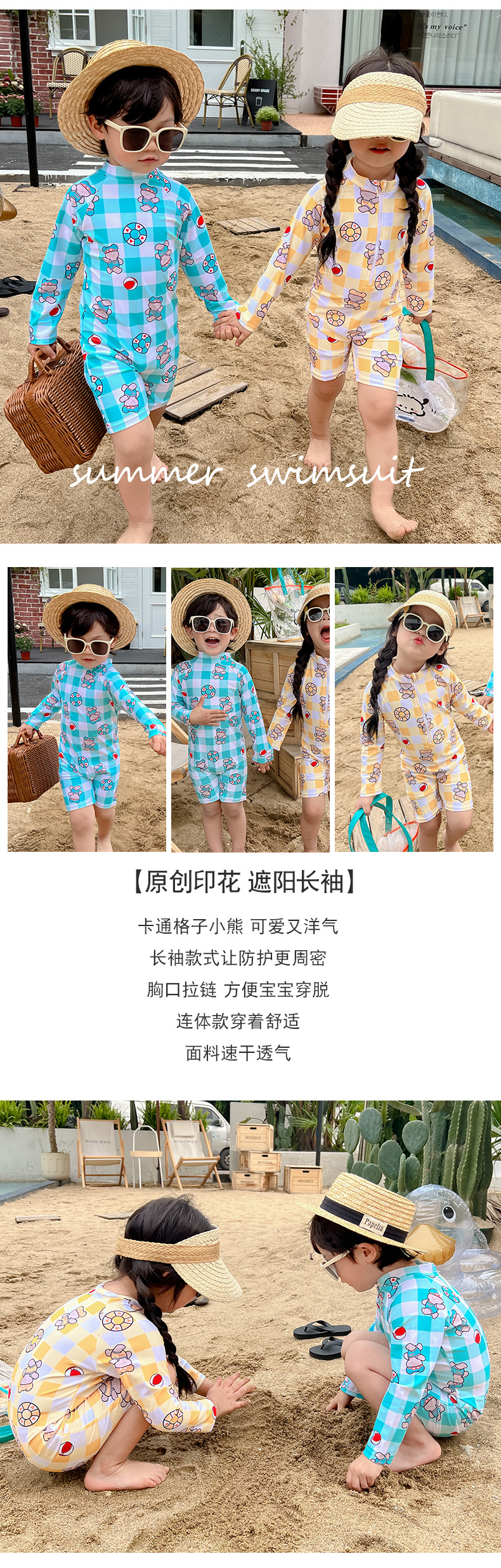 Ins 어린이 수영복 소년의 긴 소매 수영복 만화 귀여운 소녀 아기 선스크린 수영복