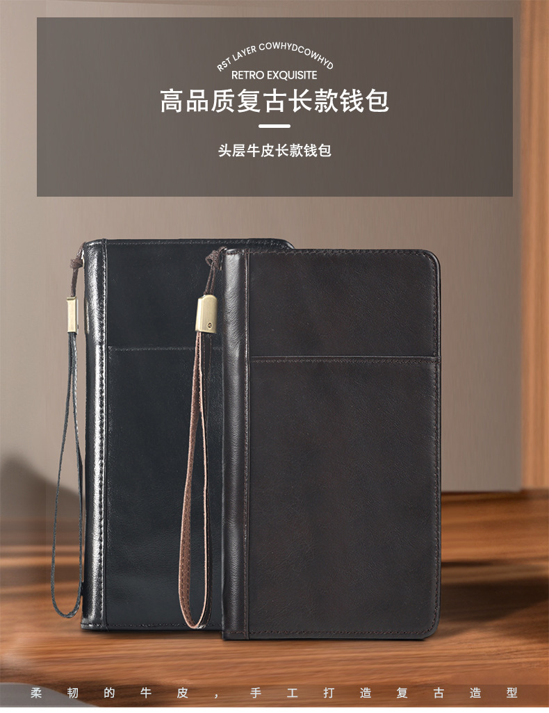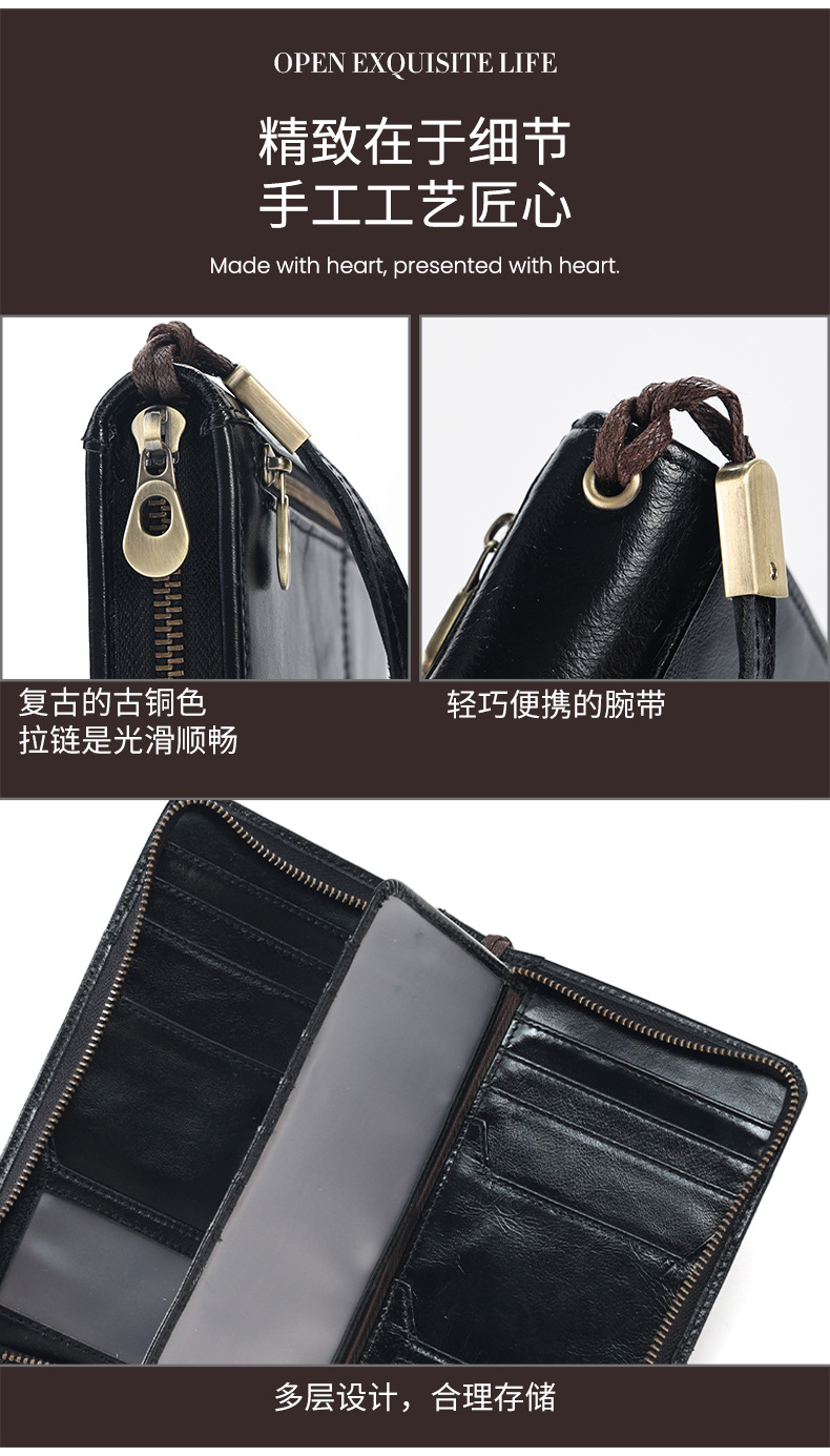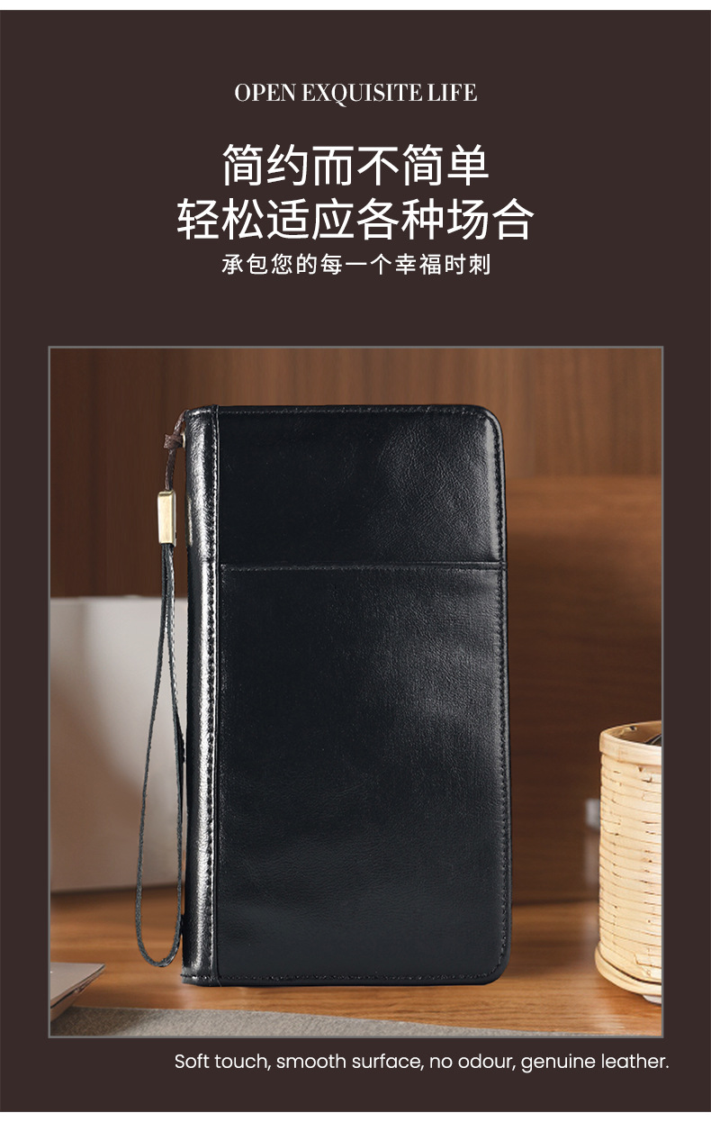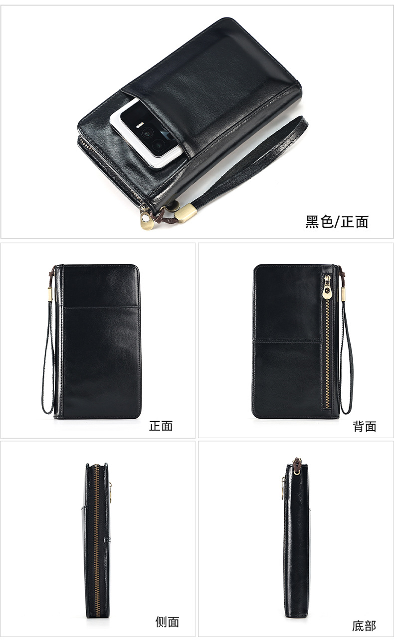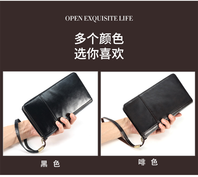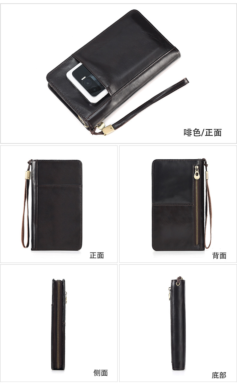 새로운 스타일의 천연 가죽 장지갑, 고급 비즈니스 지퍼 남성용 클러치백, 다기능 심플 가방, 동전 지갑스토어 가기
