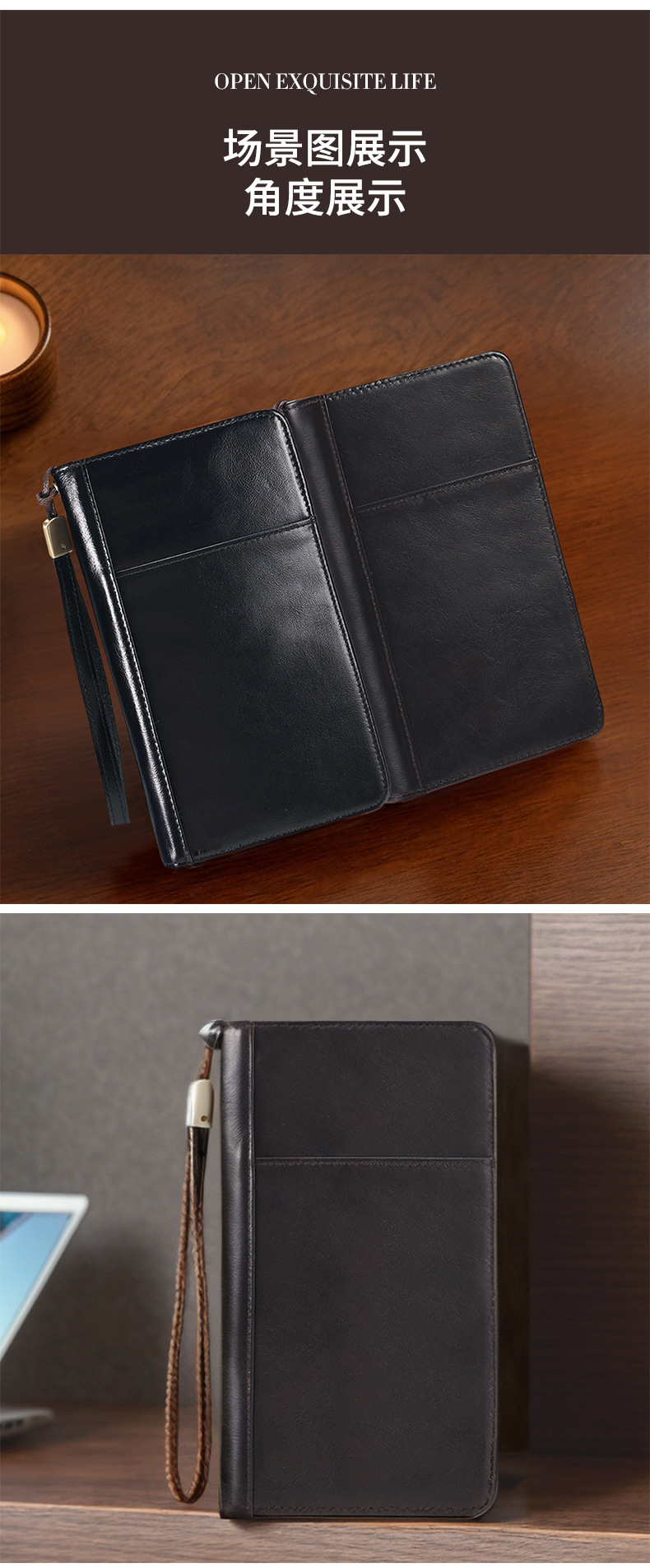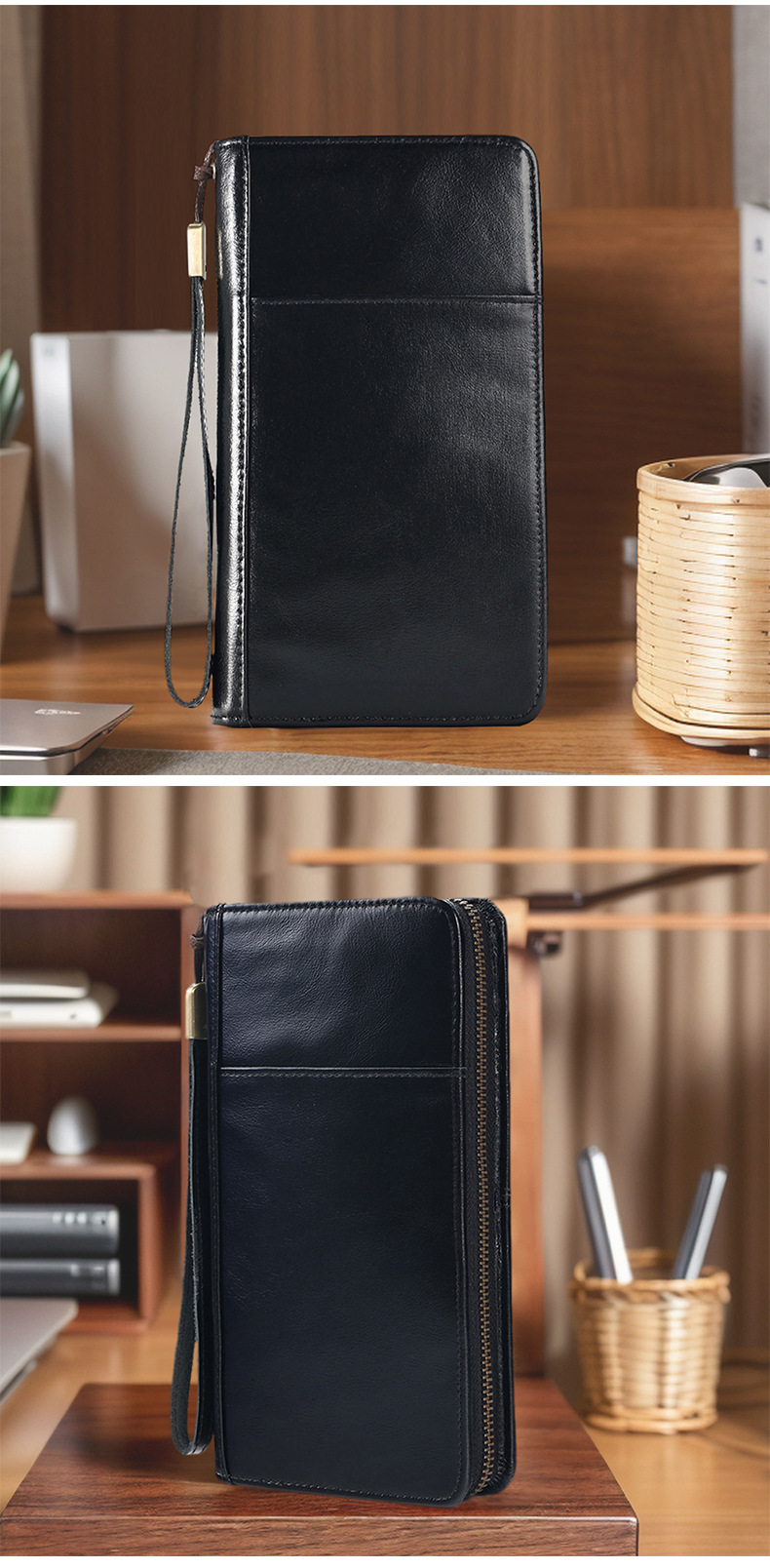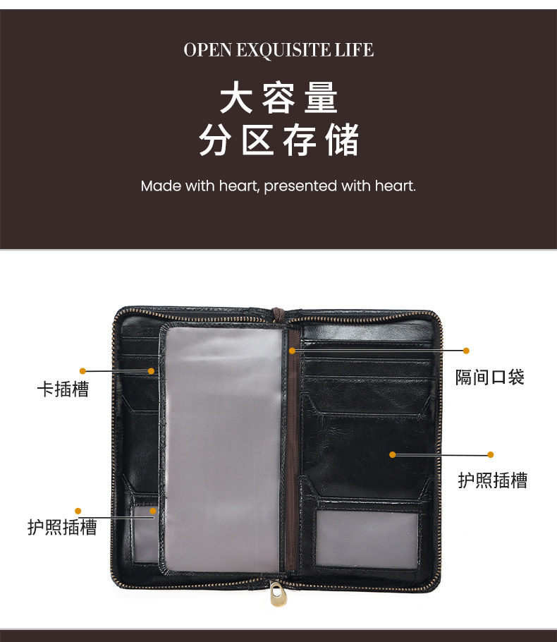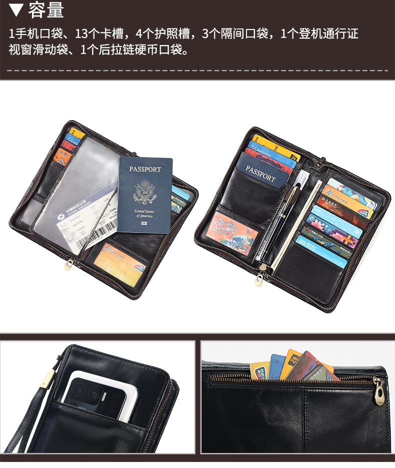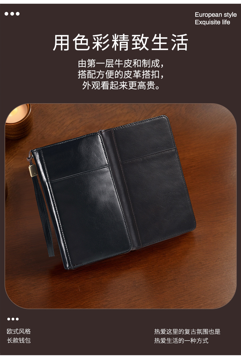 새로운 스타일의 천연 가죽 장지갑, 고급 비즈니스 지퍼 남성용 클러치백, 다기능 심플 가방, 동전 지갑스토어 가기