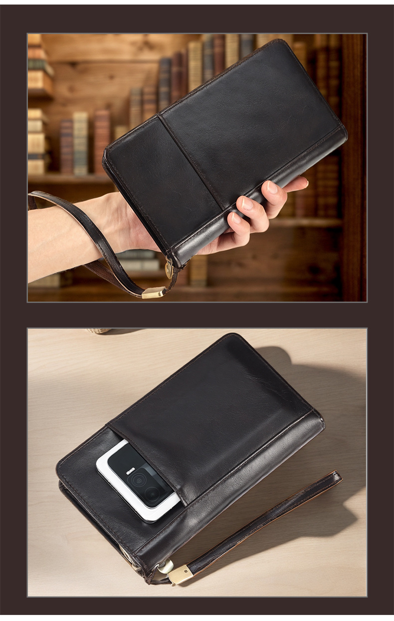 새로운 스타일의 천연 가죽 장지갑, 고급 비즈니스 지퍼 남성용 클러치백, 다기능 심플 가방, 동전 지갑