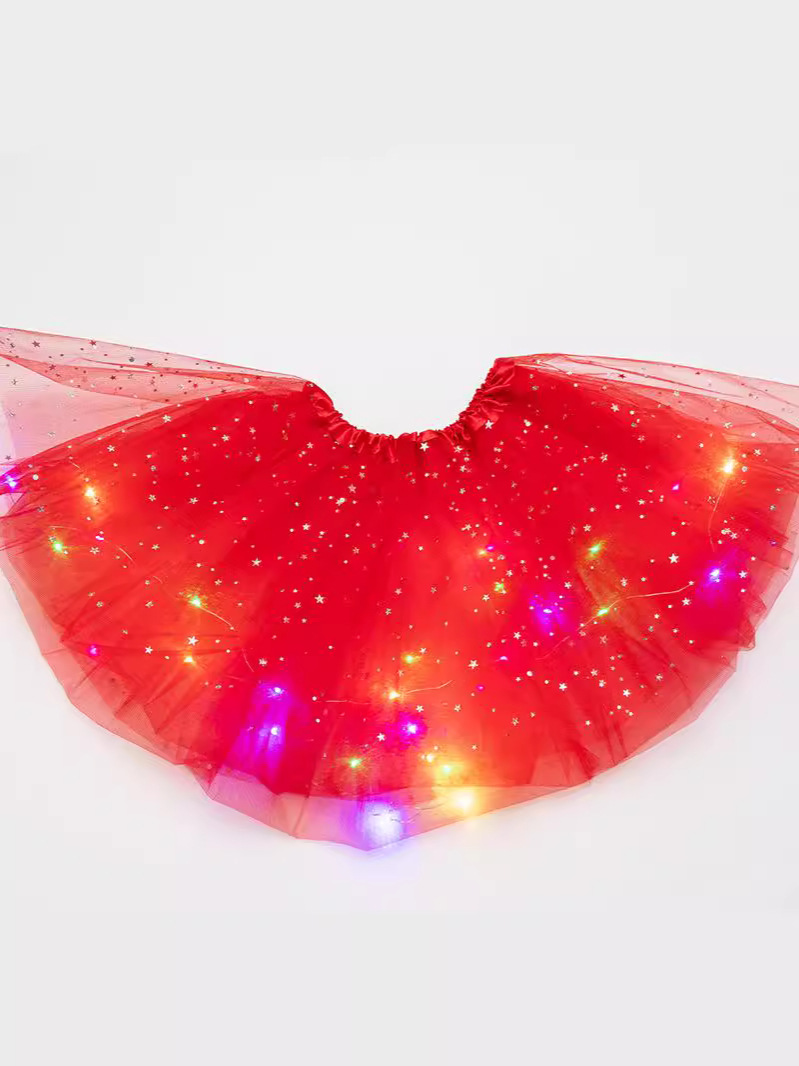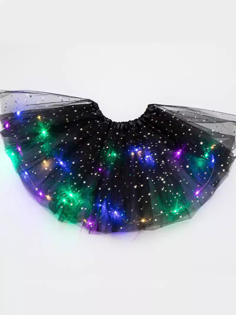 ins 아동용 반짝이 LED 튜튜 스커트 발광 하프 길이 메쉬 스커트 LED 조명 퍼프 스커트 큰 스커트 밑단