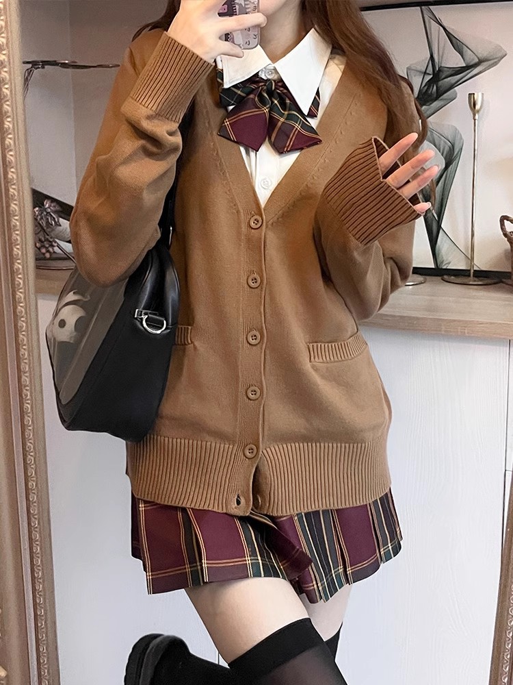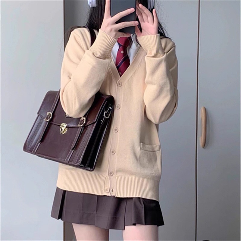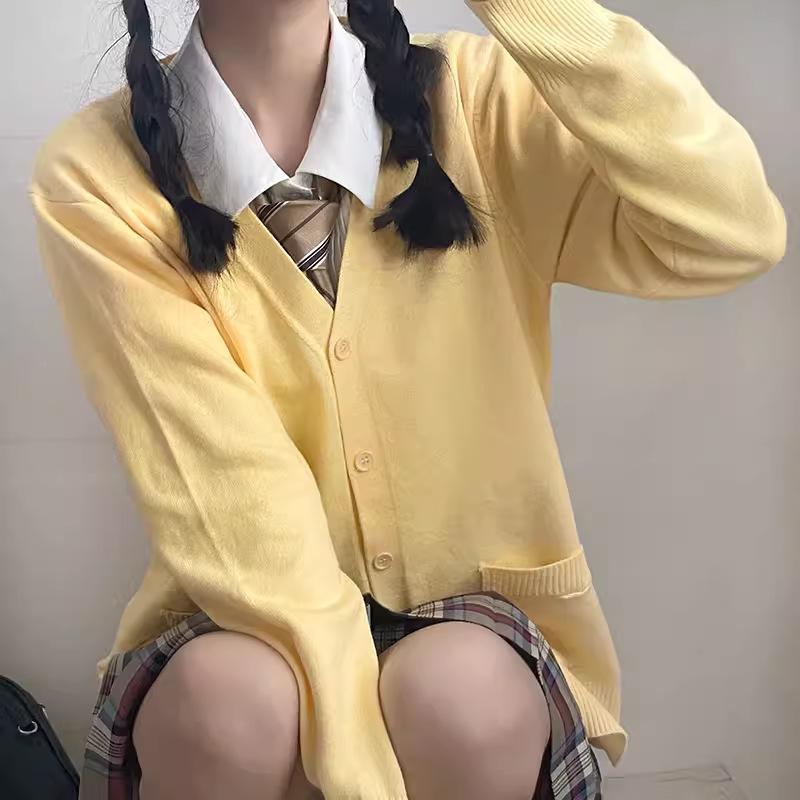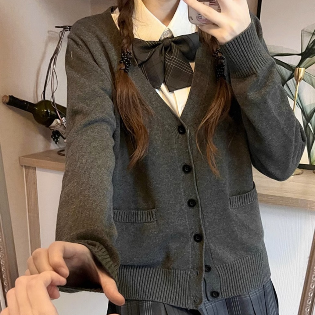 일본 대학 스타일 달콤한 스웨터 여성 자켓 2025 초가을 새로운 느슨한 v 넥 솔리드 컬러 포켓 니트 카디건