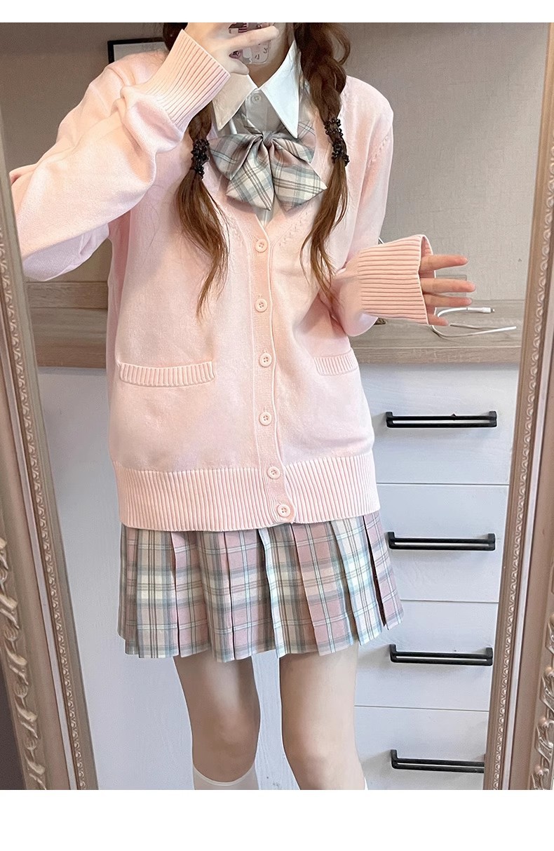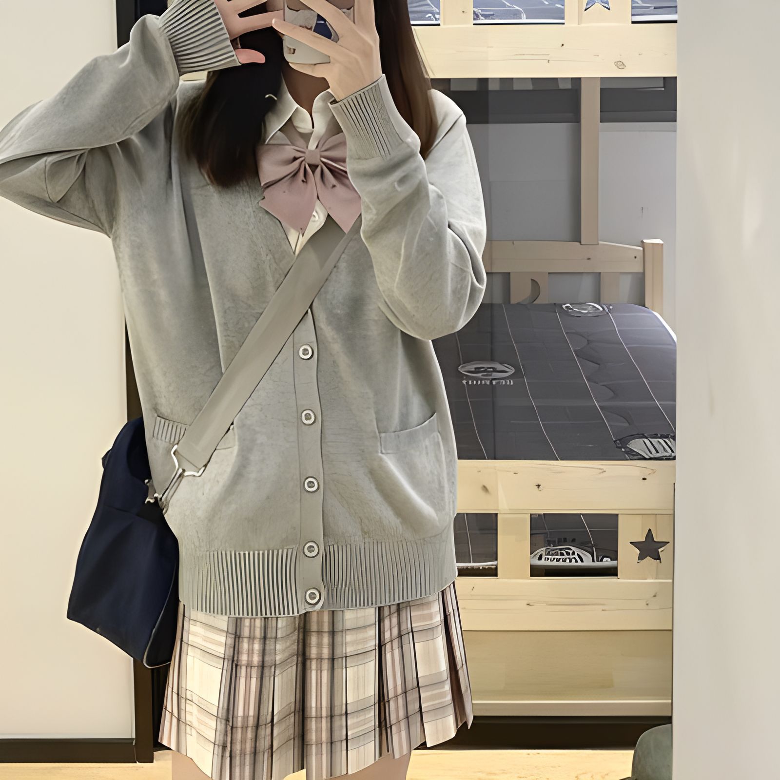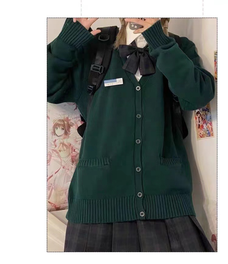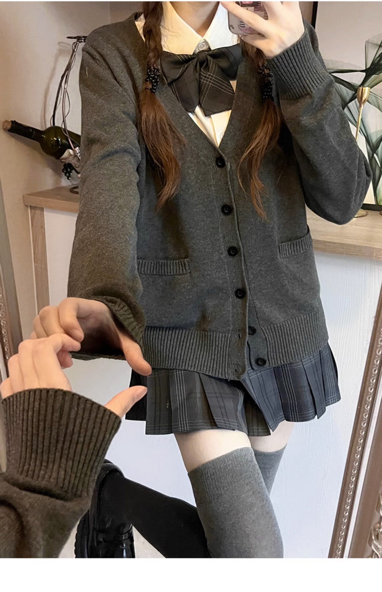 일본 대학 스타일 달콤한 스웨터 여성 자켓 2025 초가을 새로운 느슨한 v 넥 솔리드 컬러 포켓 니트 카디건