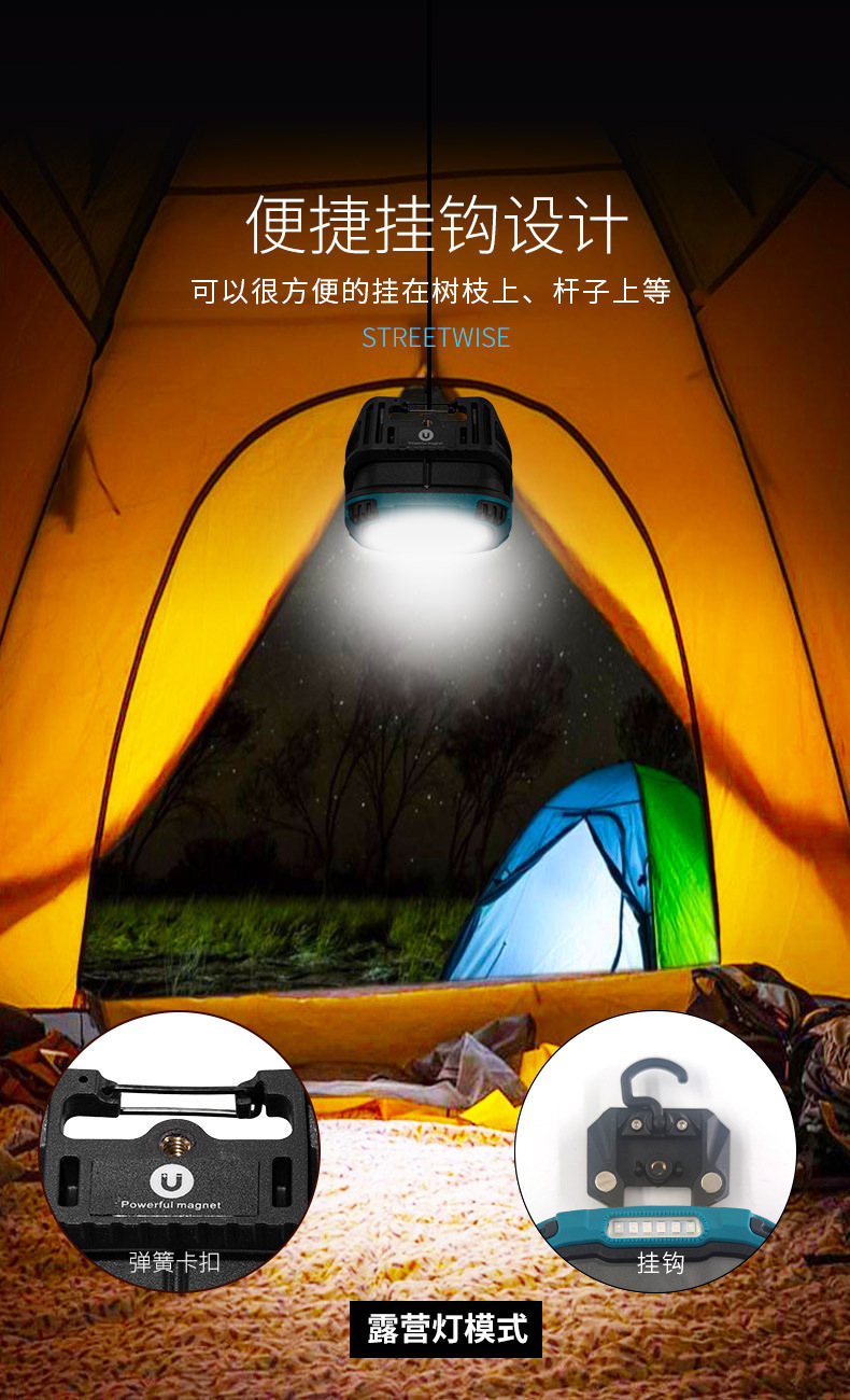 24 새로운 다기능 작업 램프 휴대용 휴대용 LED 강한 빛 긴 내구성 야외 비상 램프 강한 자기 벨트 후크