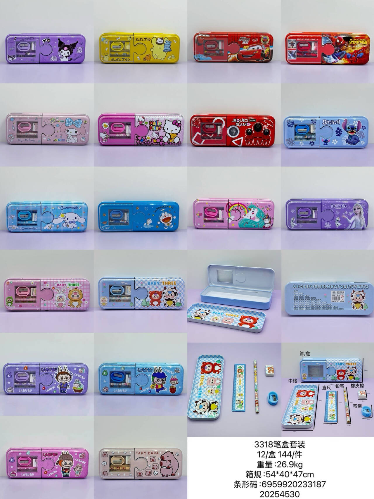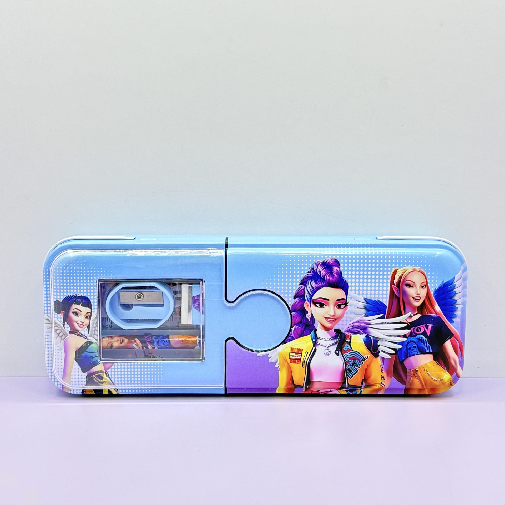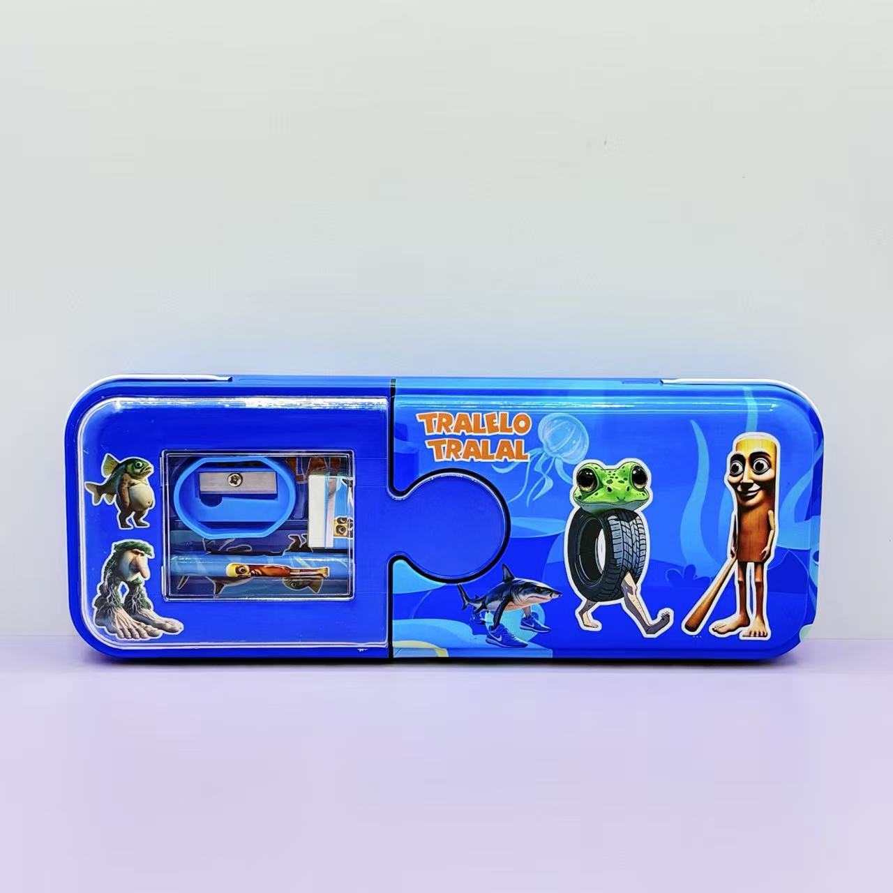초등학생을위한 새로운 만화 3318 어린이 선물 더블 레이어 오픈 윈도우 문구 철 펜 상자 창조적 인 상 연필 상자