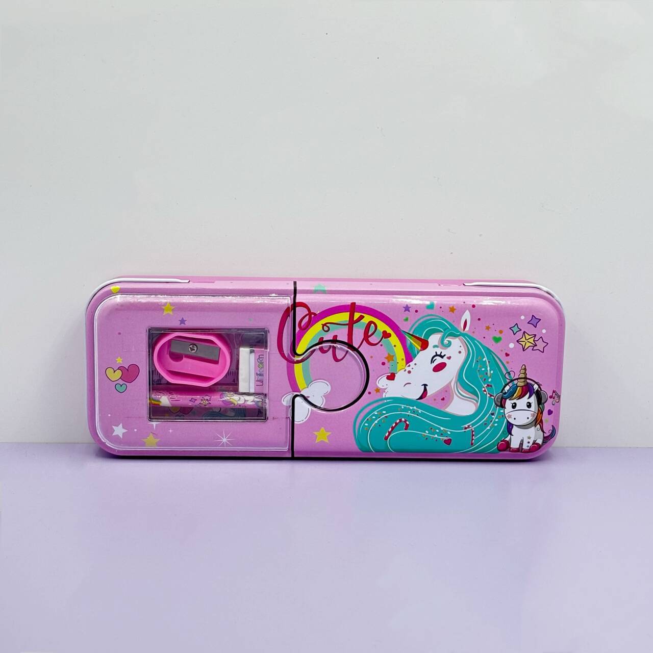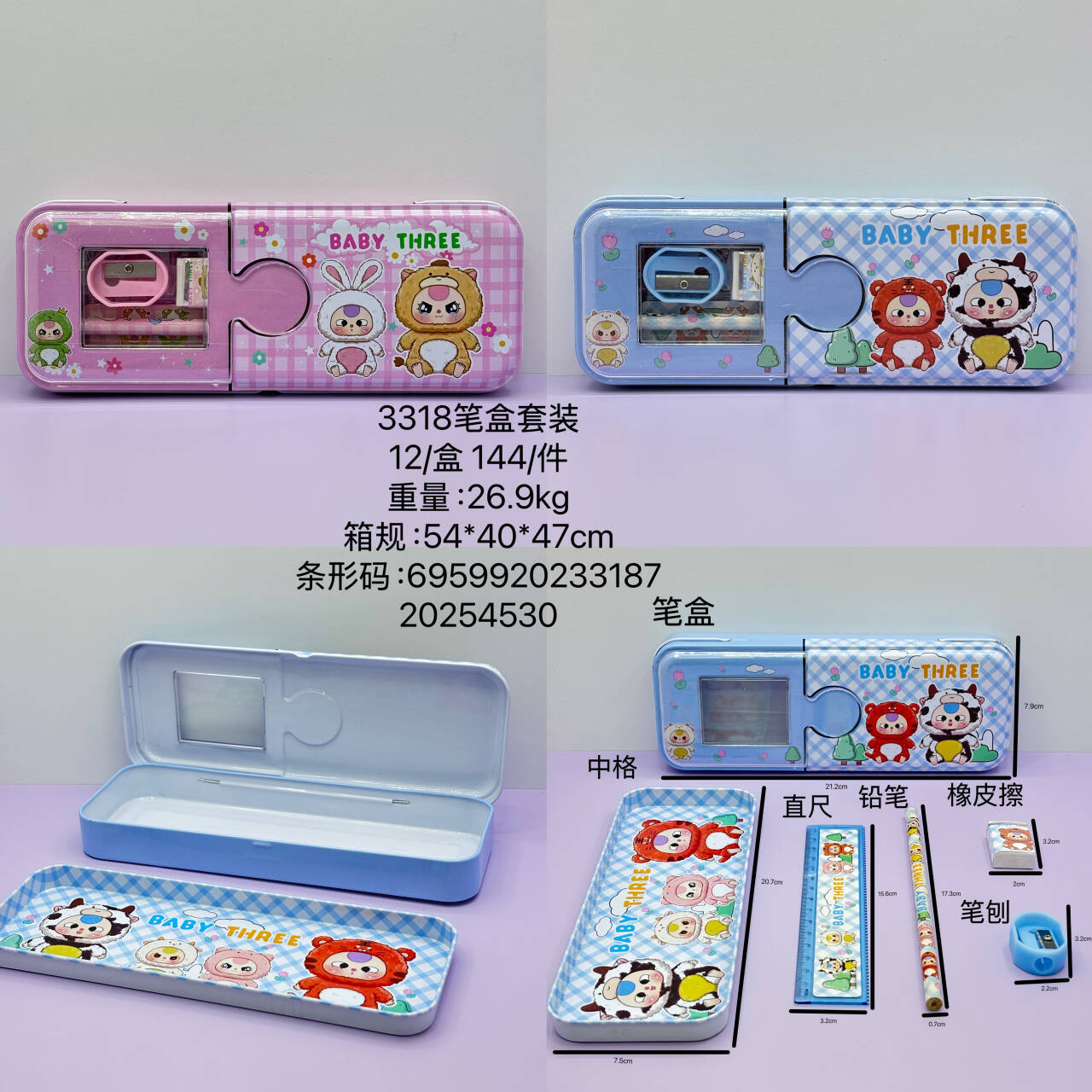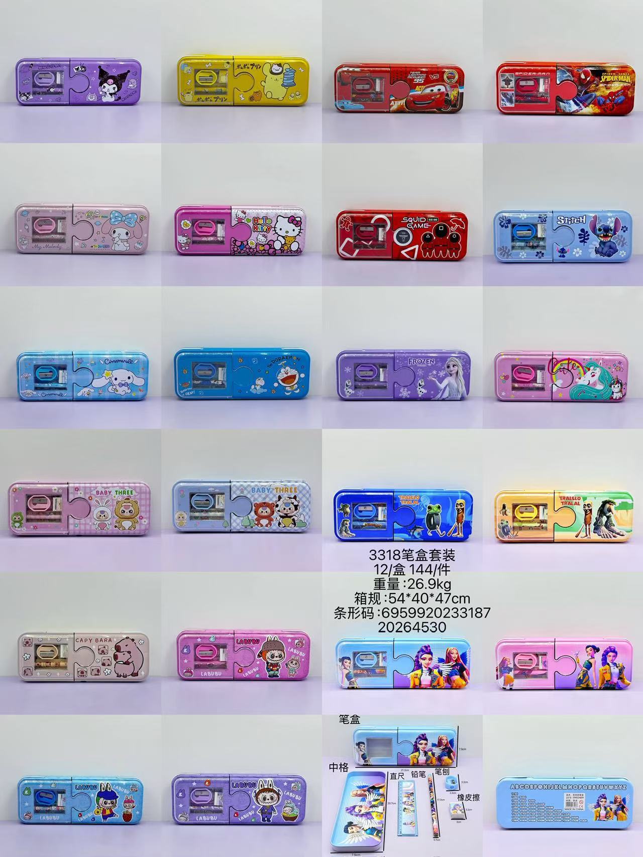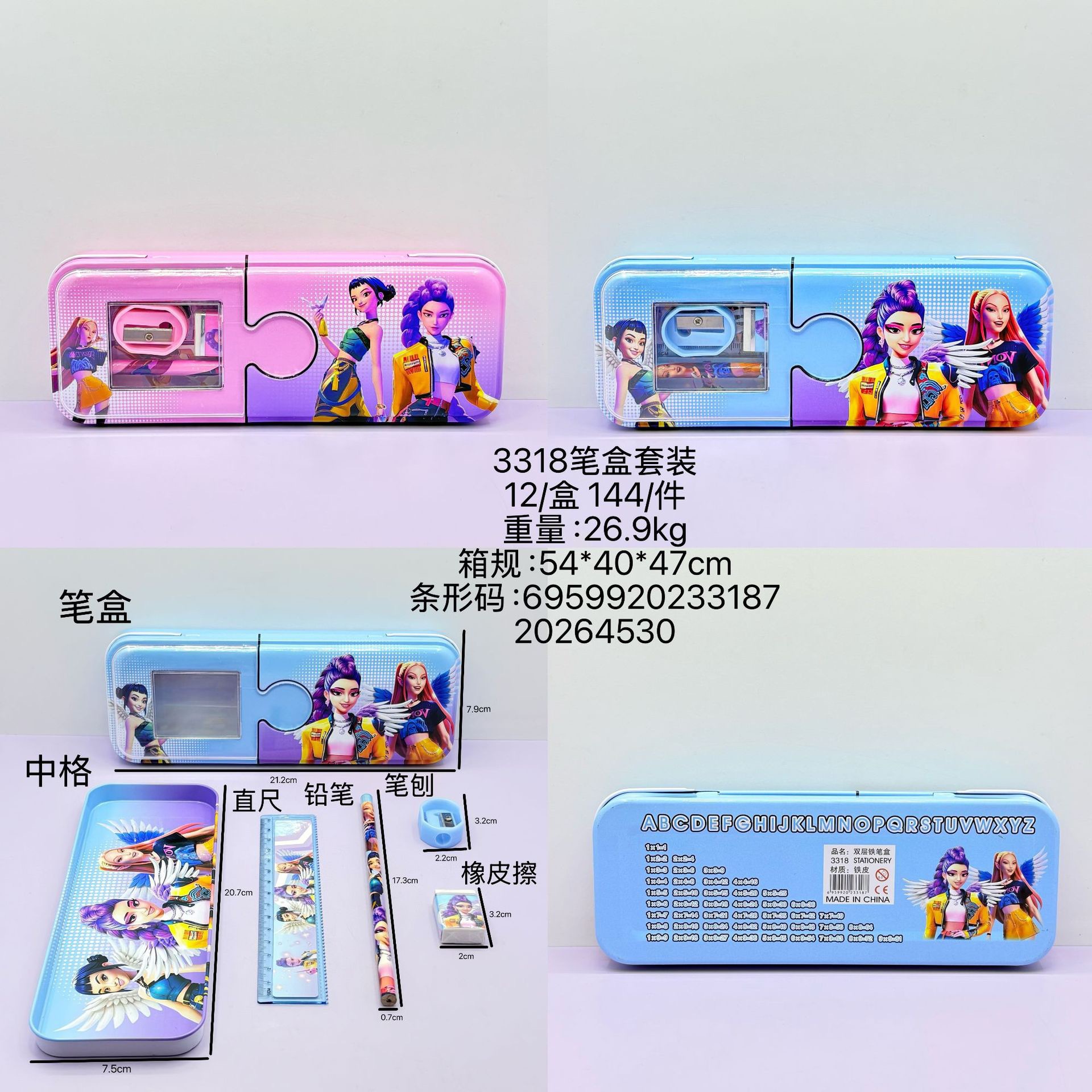 초등학생을위한 새로운 만화 3318 어린이 선물 더블 레이어 오픈 윈도우 문구 철 펜 상자 창조적 인 상 연필 상자