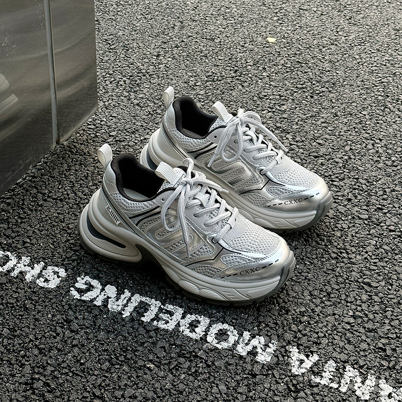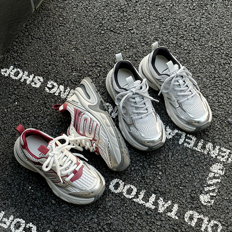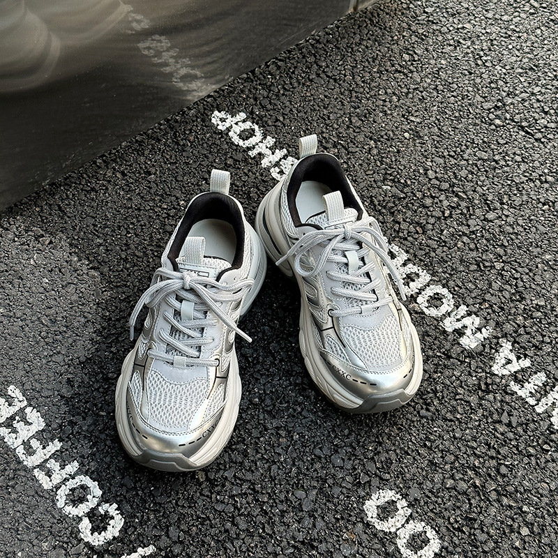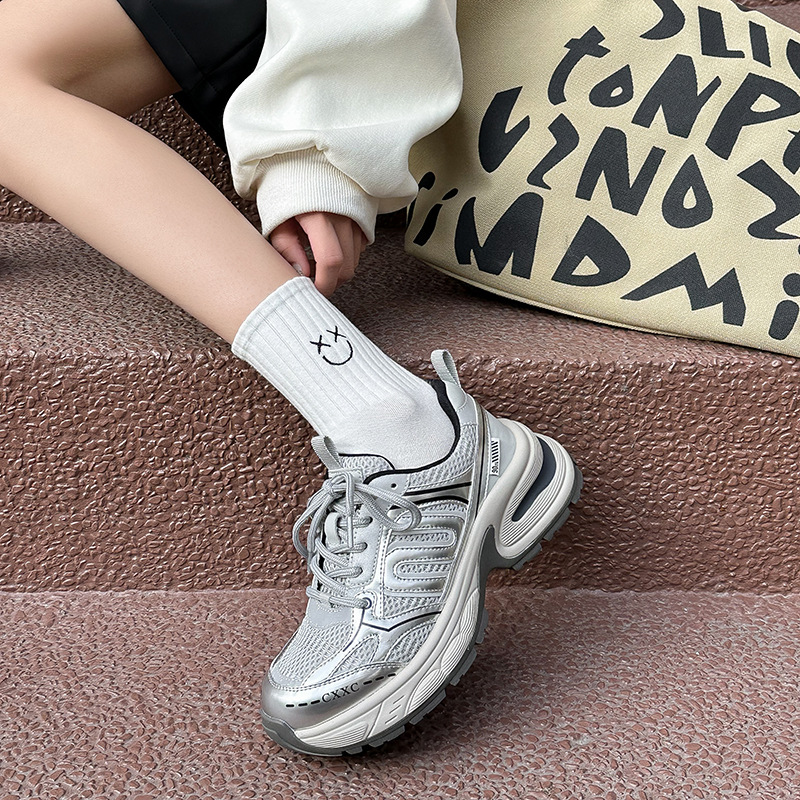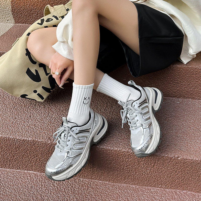 실버 토레 신발 여성의 2024 여름 새로운 두꺼운 바닥 메쉬 캐주얼 운동화 여성 야외 조깅 신발