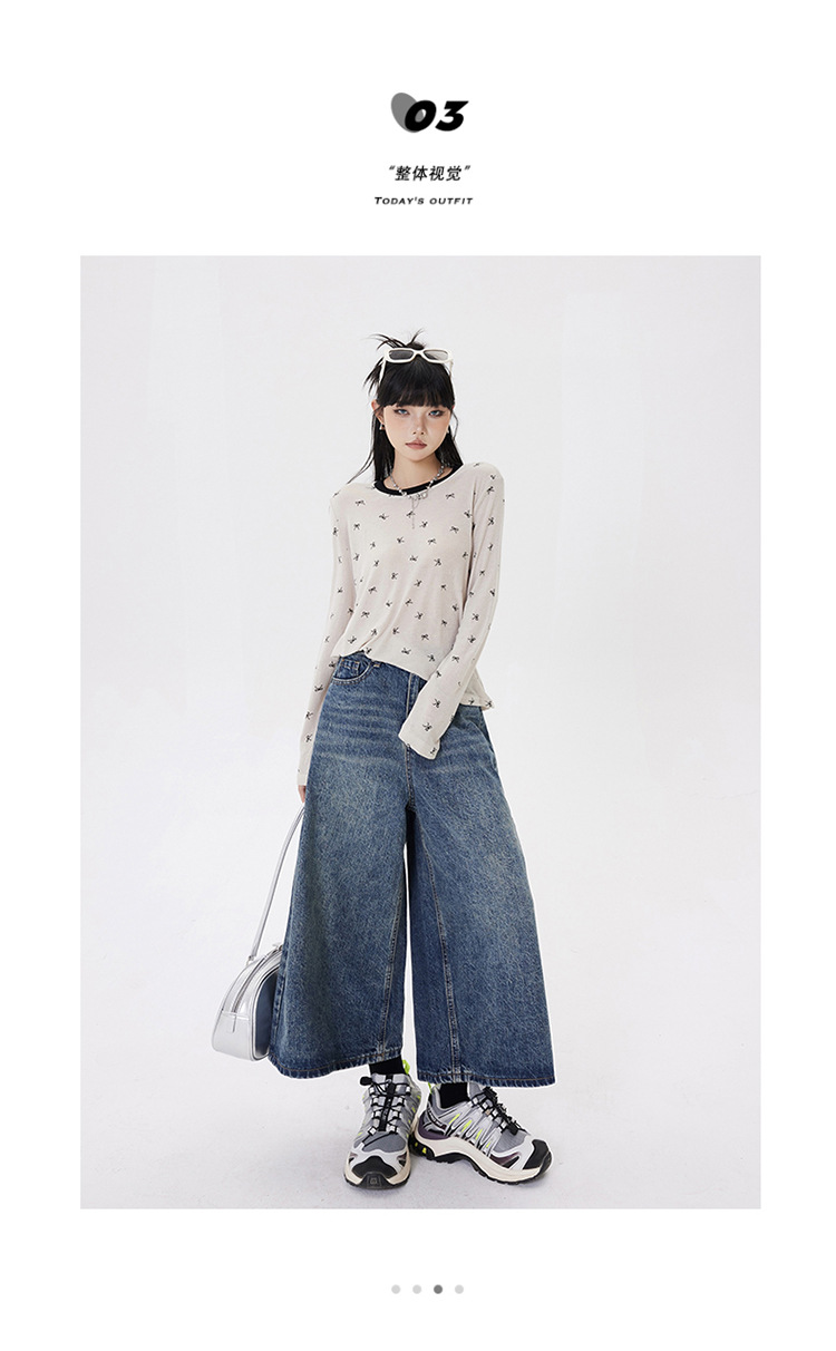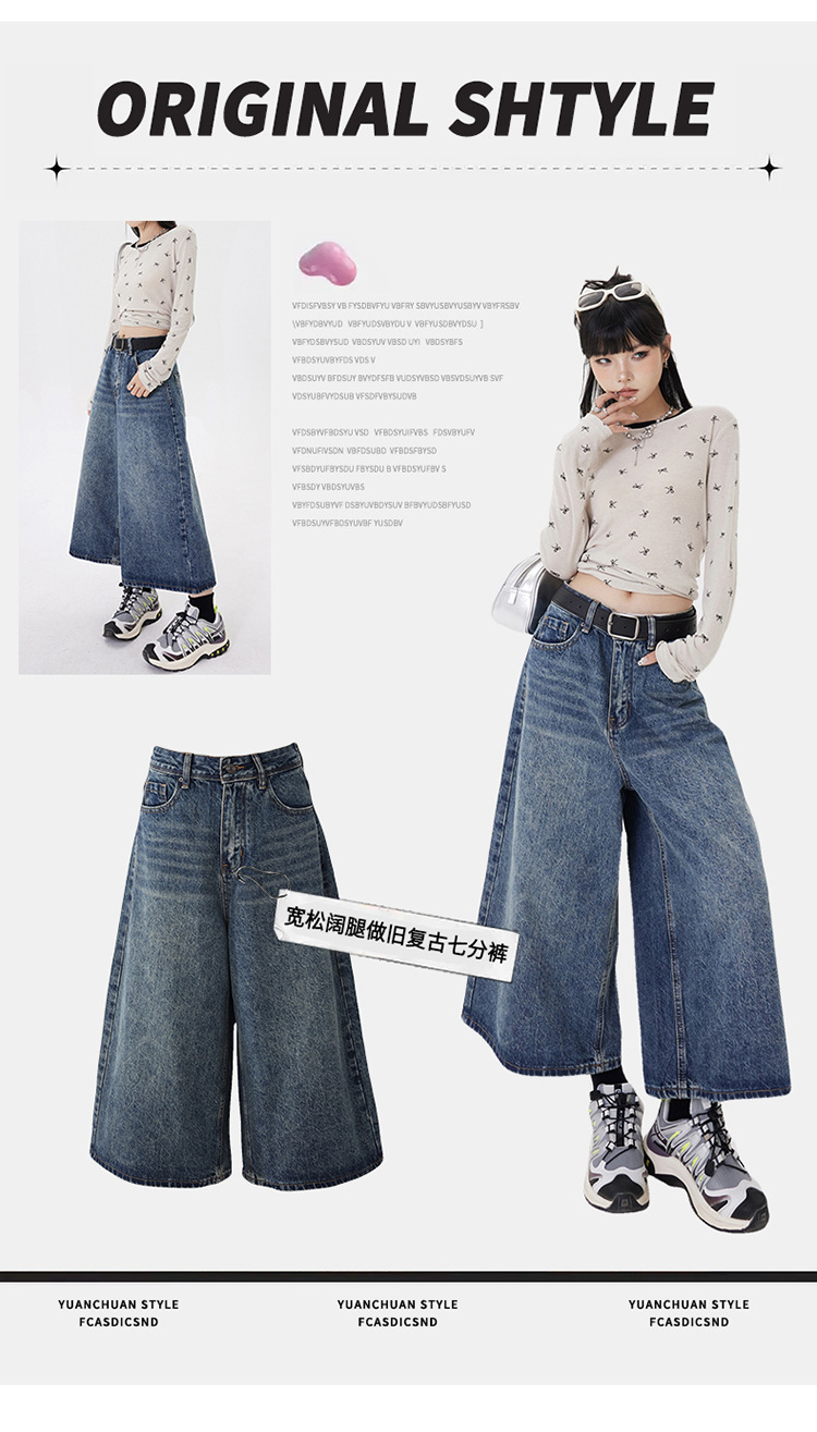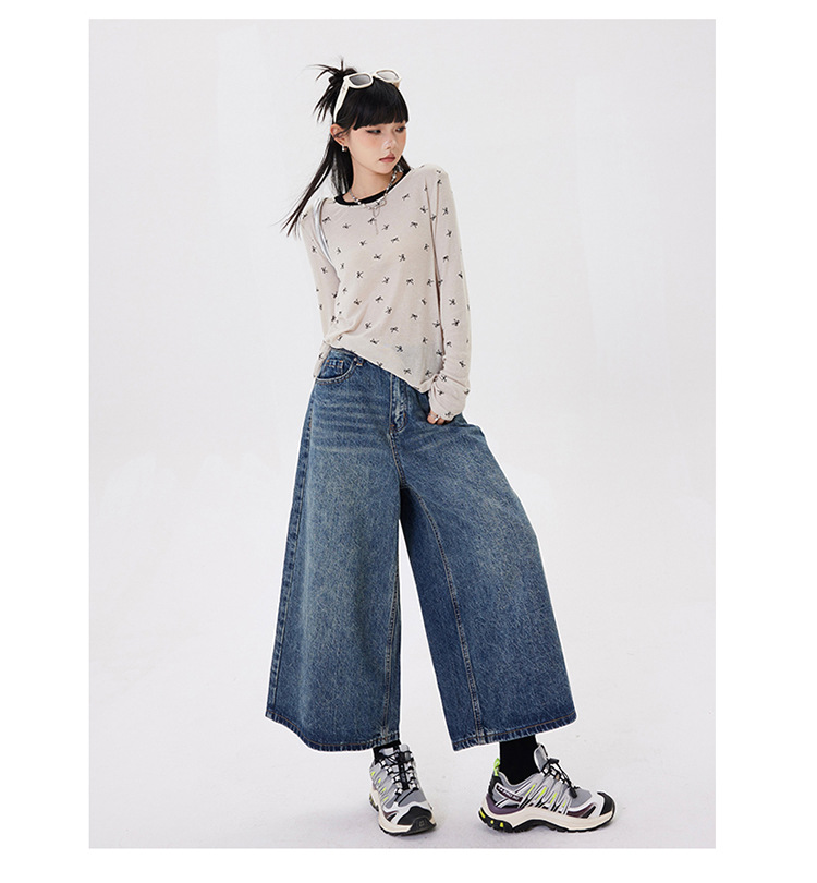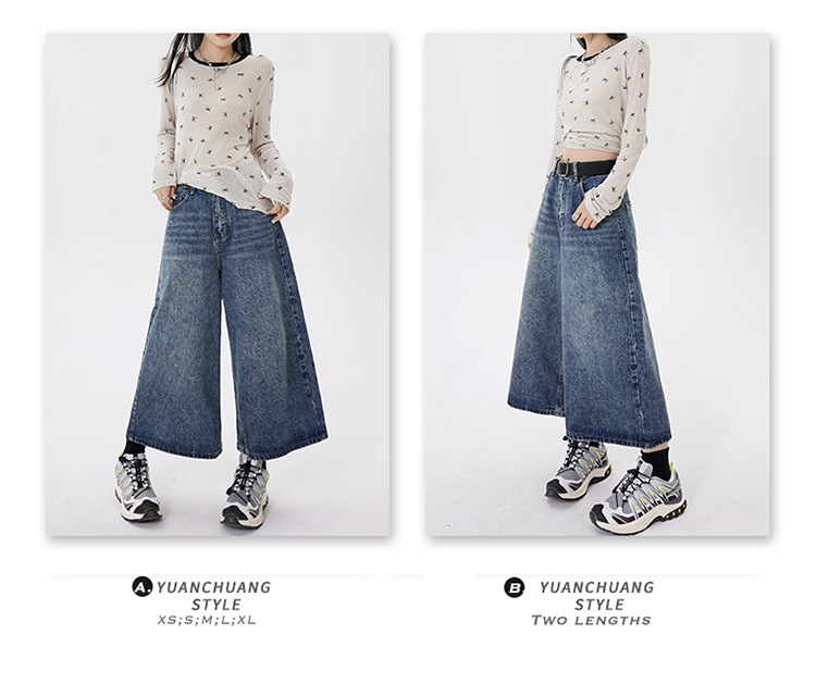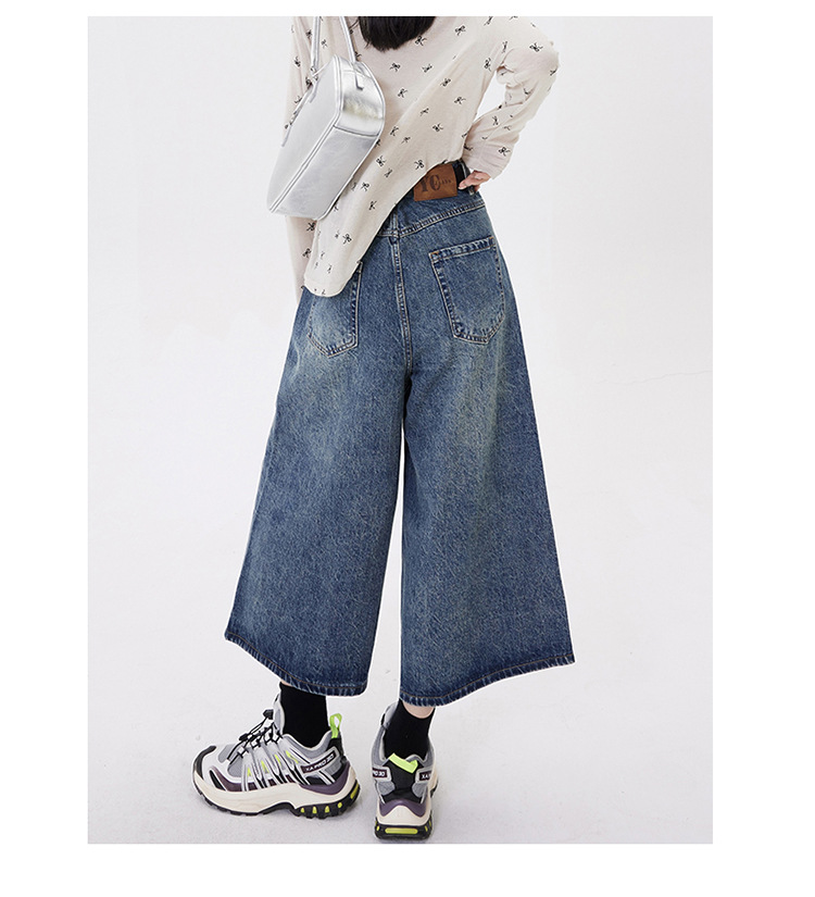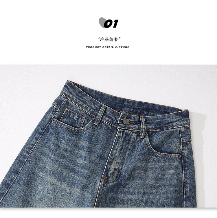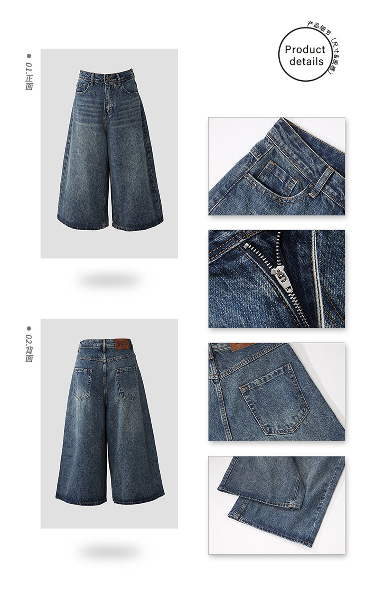 [진인] 미국식 고민 복고풍 느슨한 와이드 레그 팬츠 하이웨이스트 올매치 스트레이트 크롭 팬츠 여성 패션스토어 가기