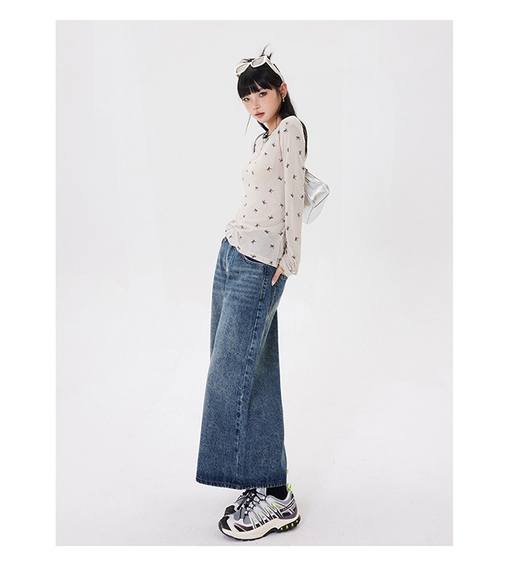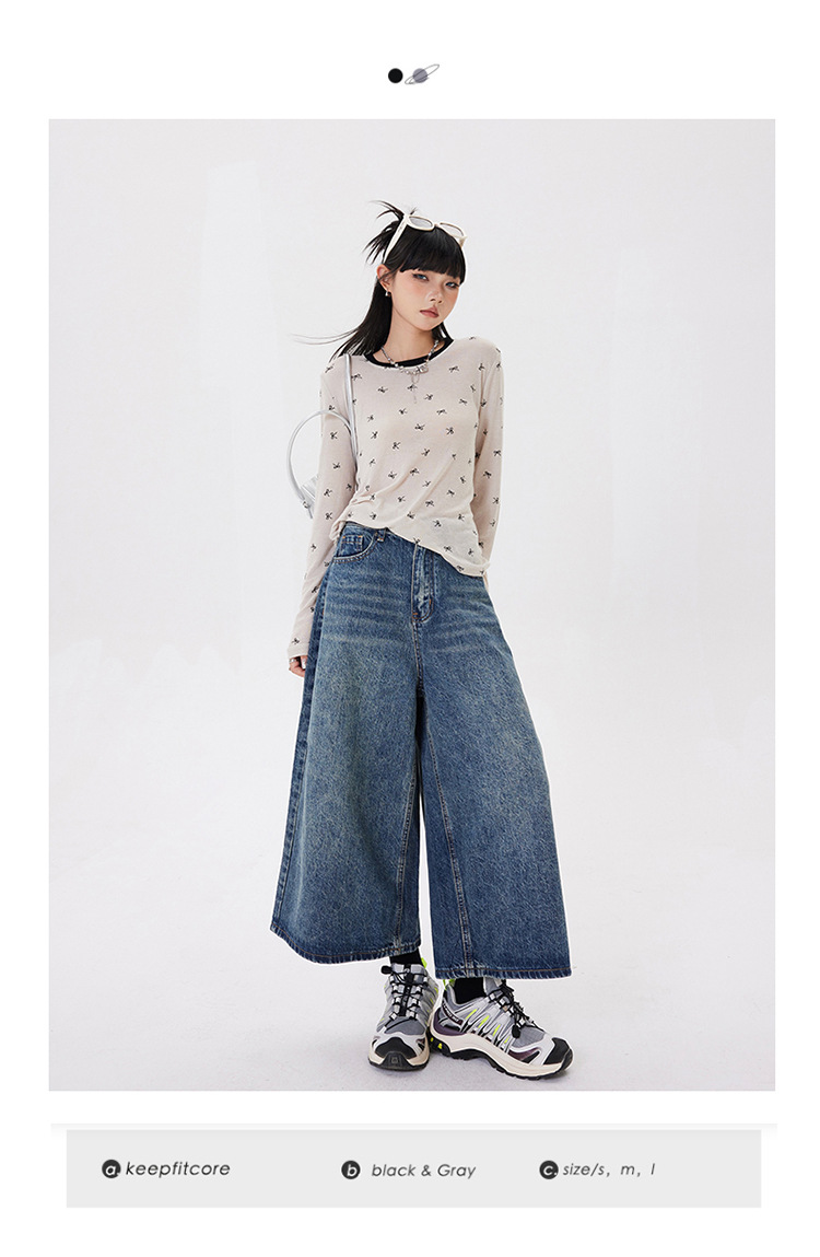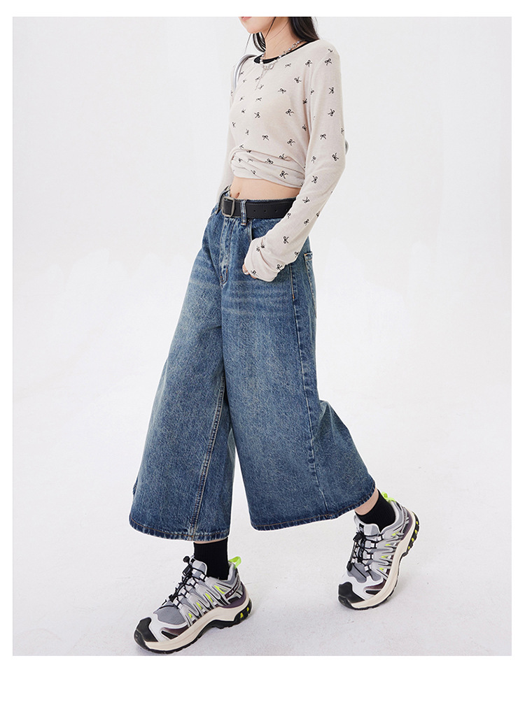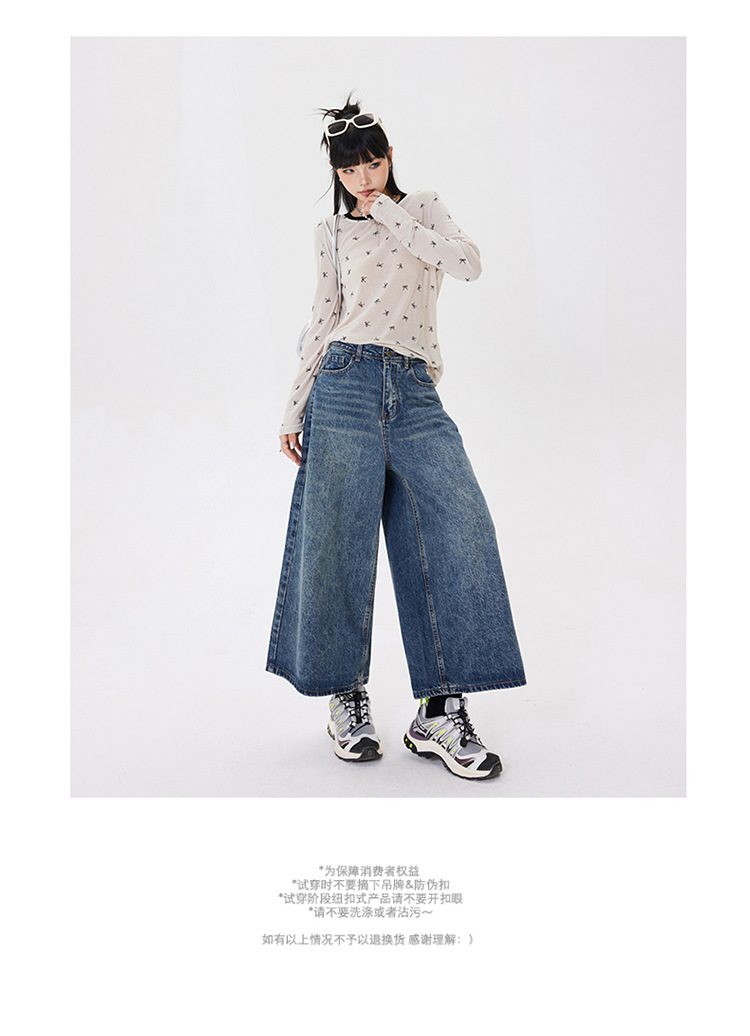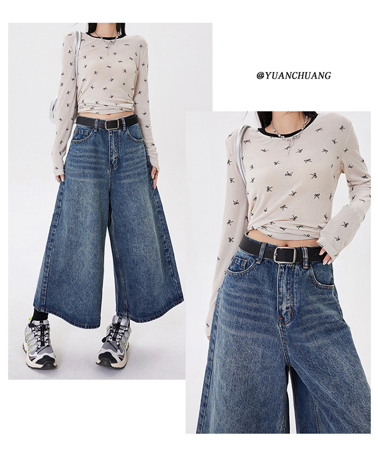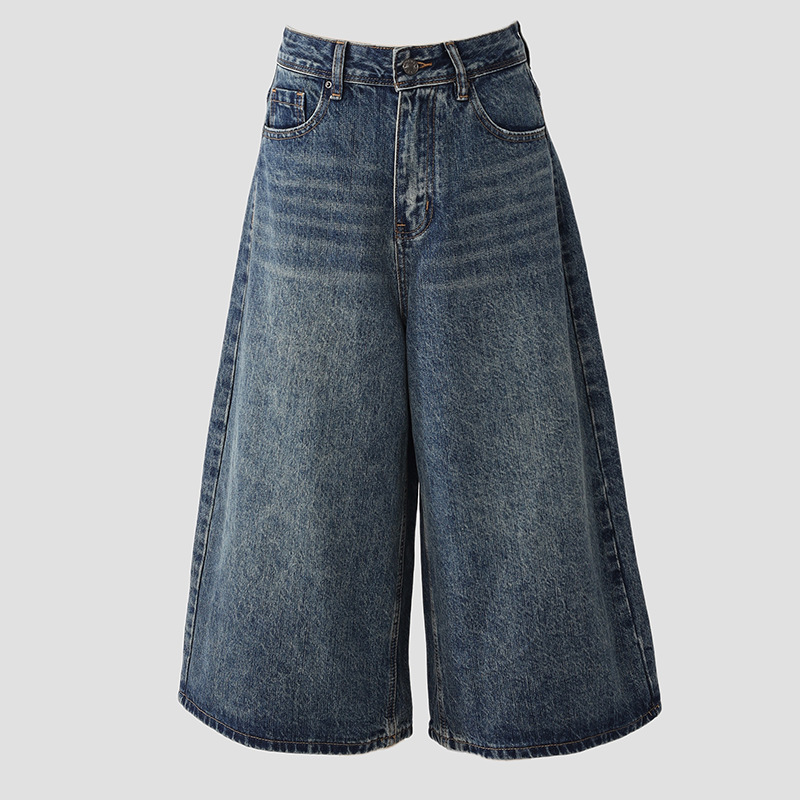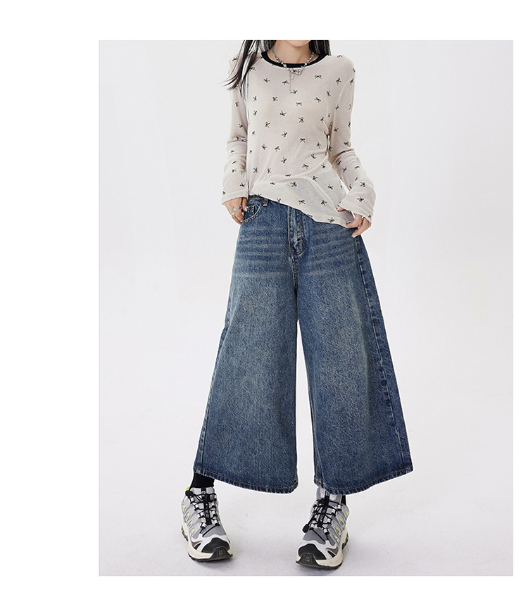 [진인] 미국식 고민 복고풍 느슨한 와이드 레그 팬츠 하이웨이스트 올매치 스트레이트 크롭 팬츠 여성 패션스토어 가기