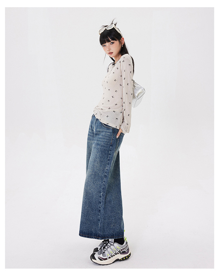 [진인] 미국식 고민 복고풍 느슨한 와이드 레그 팬츠 하이웨이스트 올매치 스트레이트 크롭 팬츠 여성 패션