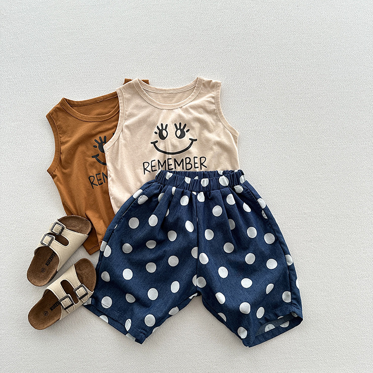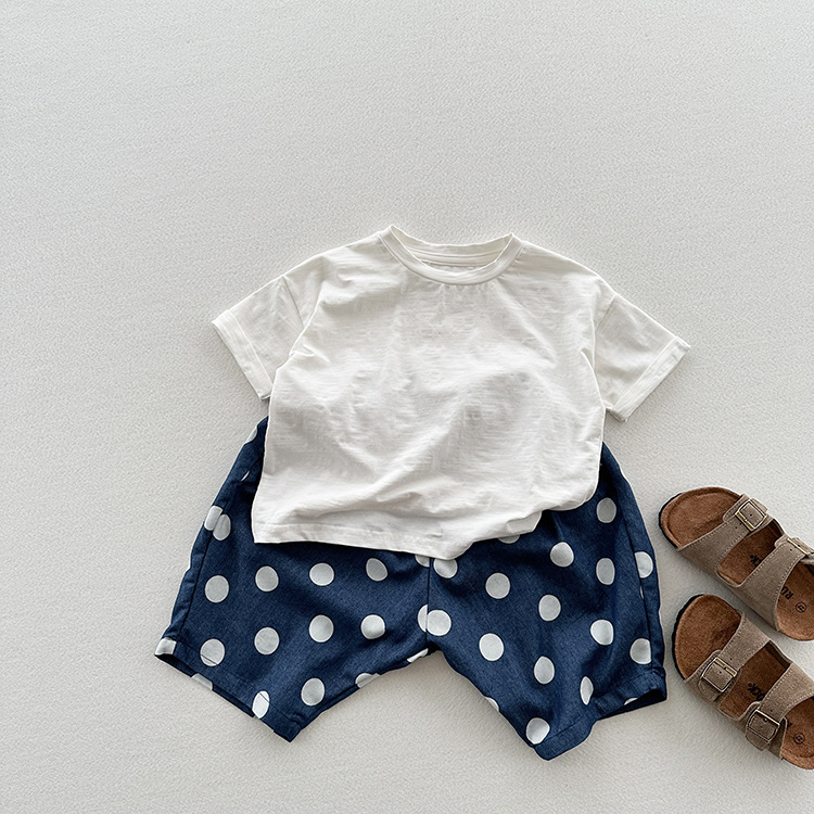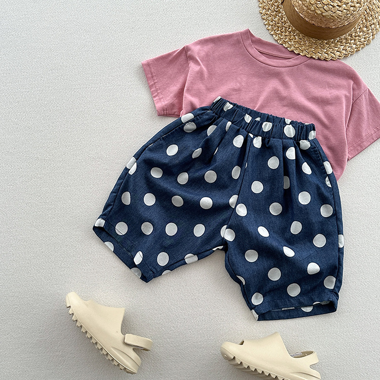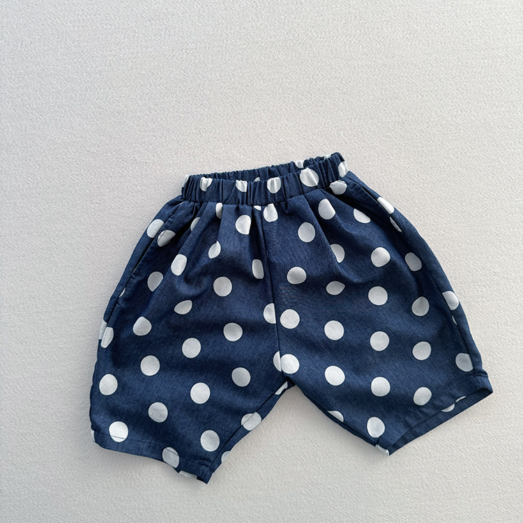 유니섹스 베이비 텐셀 데님 웨이브 닷 팬츠를위한 여름 새 어린이 한국식 올매치 느슨한 경량 캐주얼 중간 길이 바지스토어 가기