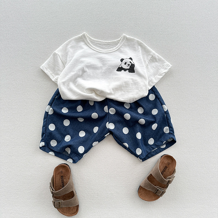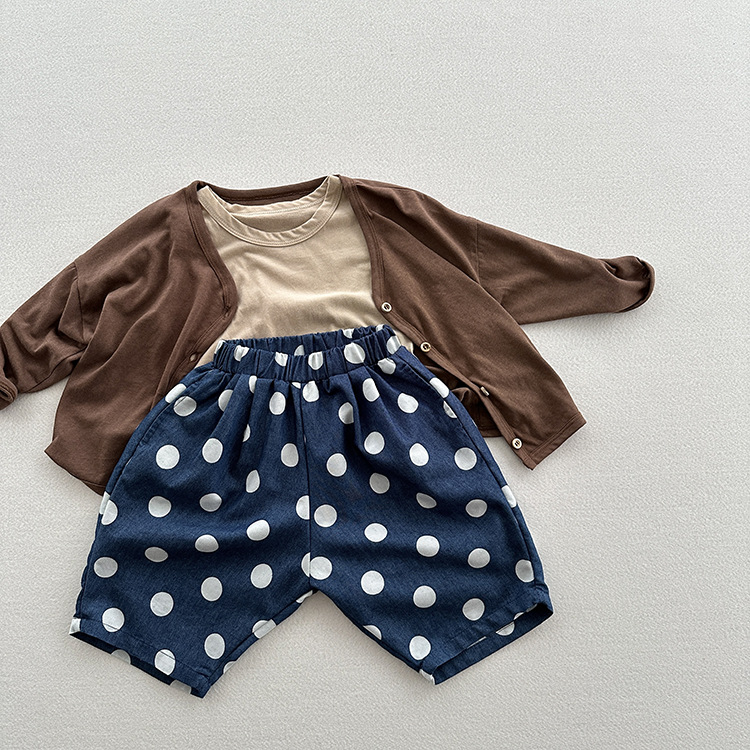 유니섹스 베이비 텐셀 데님 웨이브 닷 팬츠를위한 여름 새 어린이 한국식 올매치 느슨한 경량 캐주얼 중간 길이 바지