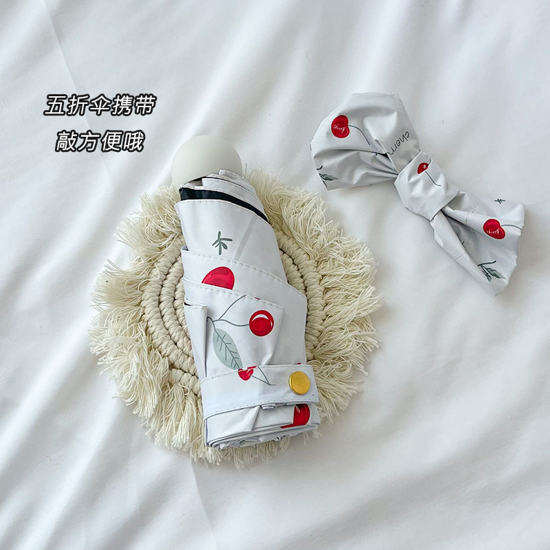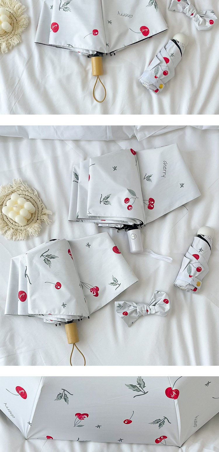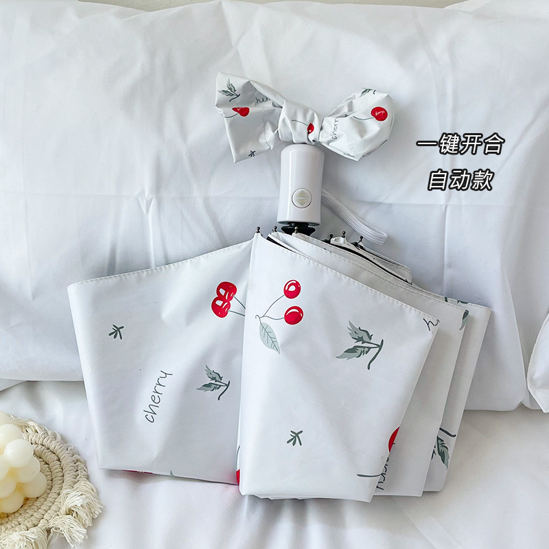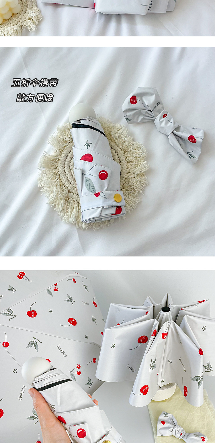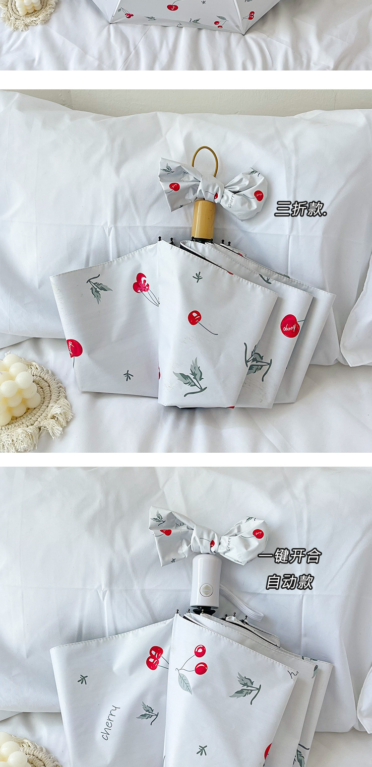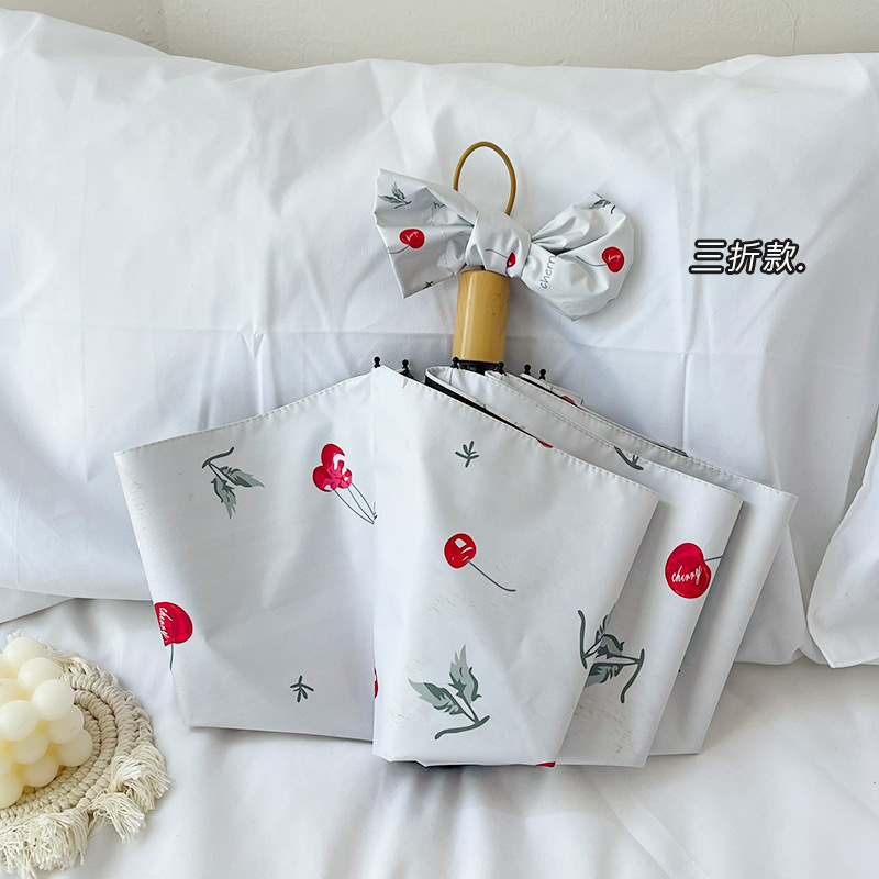 벚꽃 이야기 작은 휴대용 접히는 우산 맑고 비 이중 사용 검은 고무 선 스크린 UV 보호 핀 국경 도매스토어 가기
