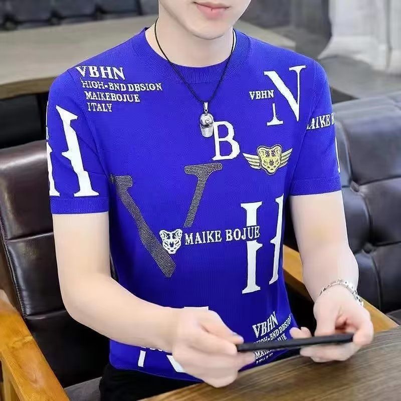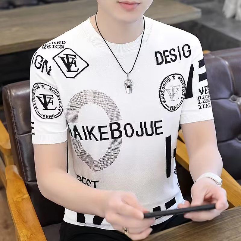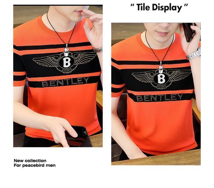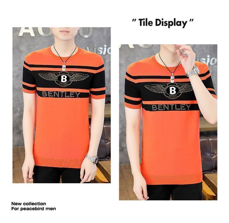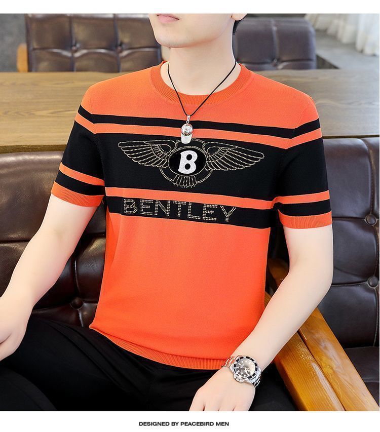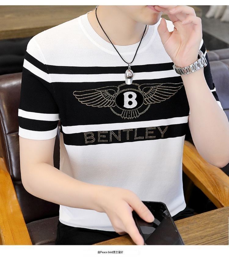 아이스 실크 반팔 티셔츠 남자 여름 라운드 넥 캐주얼 올매치 베이스 셔츠 잘 생긴 줄무늬 티셔츠 남자 탑 대비