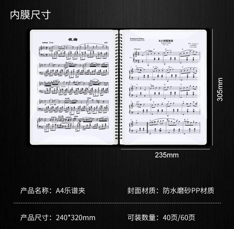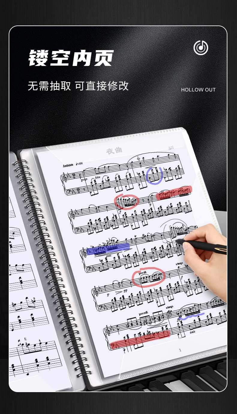 코일 악보 클립 A4 악보 클립 루스리프 폴더 무반사 수정 가능 투명 삽입 기타 피아노 악보 클립