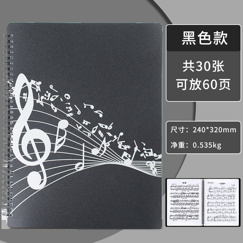 • 코일 A4-30 60 페이지 검은 음악 클립-직선 변경